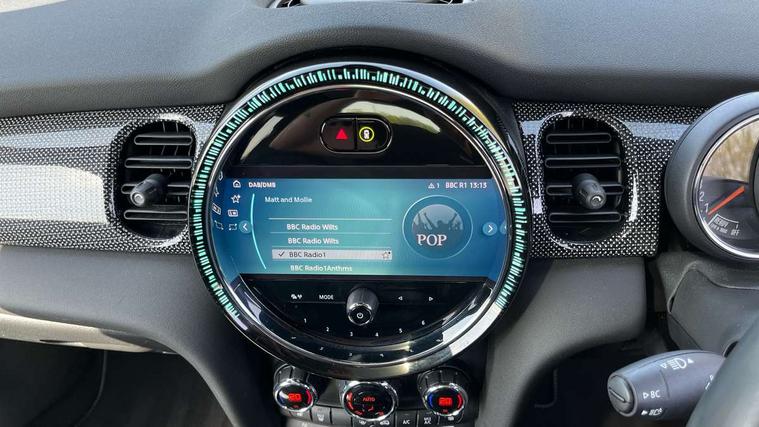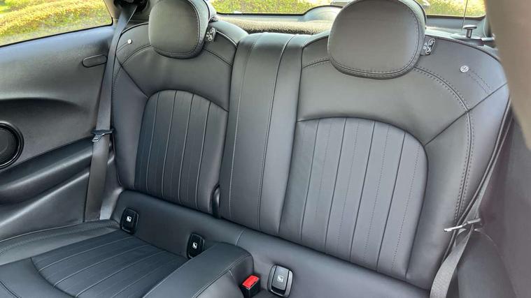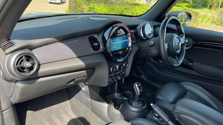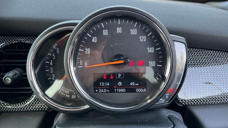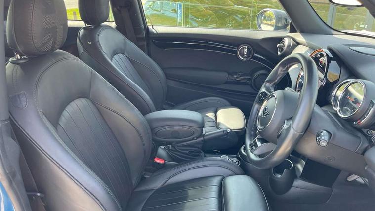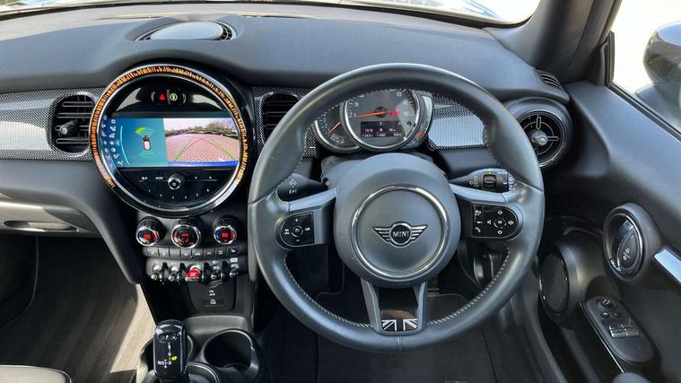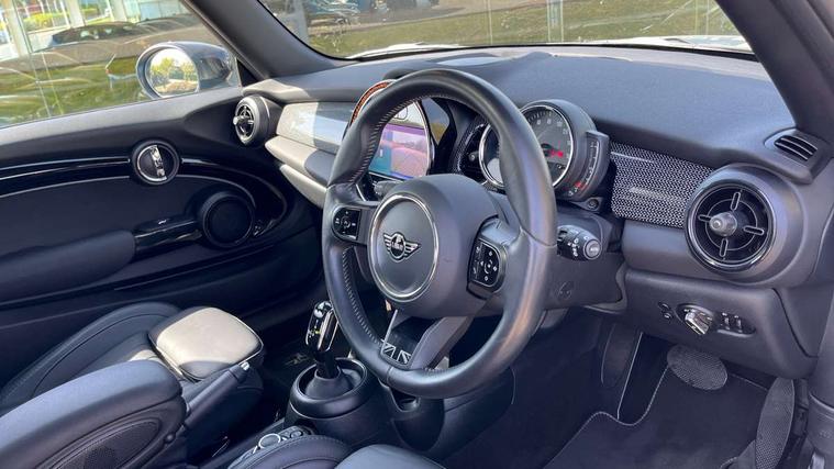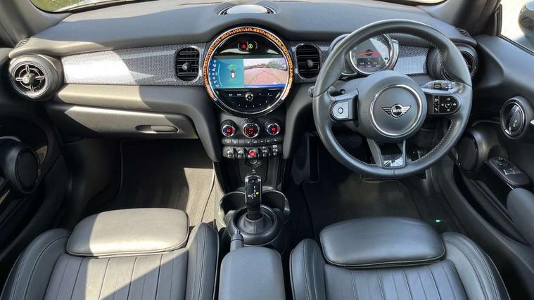 Apple CarPlay, Automatic start/stop function with brake energy recuperation, Compatible mobile phone bluetooth with audio streaming, Cruise control with brake assist, Electro-mechanical speed dependant steering assistance, Flexible car sharing preparation, Instrument cluster, MINI Driving Modes - centre toggle switch to control driving setting (sport, mid and green), Mini E-call, MINI TeleServices, On board computer, Rear park distance control, Service interval indicator, Double Vanos system, Fully variable valve control, High precision injection, Performance Control, Steptronic transmission with double clutch, 8.8" touchscreen with LED ring, FM tuner and DAB digital radio, 3rd brake light, Automatic headlight activation switch, Body colour fuel filler cap, Chrome line exterior - radiator grille bars, tailgate handle, lower front grille grating and rear central fog-light, Dynamic brake lights, Electric front windows, Heated rear window, Heated windscreen washer jets, LED headlight with closed ring and daytime driving lights, Metal door sill strips with MINI imprint, Model logo Cooper on right of tailgate, Rain sensor window wipers, Rear fog lights, Rear LED lights with union jack design, Rear window wiper, Side scuttle panel with integrated indicator, Sun/heat protection glass, White indicator lenses, 12V Accessory socket in centre console, 2 seat bench in 2nd row, 4 lashing eyes in luggage compartment, 60/40 split folding rear seat, Carbon black colour line - Knee roll and door armrest, Chrome interior highlights, Chrome line interior - air vents, gear lever base, door handles and speakers in doors, Cupholders, Front and rear head restraints, Front and rear isofix with front passenger airbag deactivation, Front floor mats in velour, Glove compartment, Height and length steering column adjustment, Interior lighting with 12 different colours across the dashboard, underneath door bezel with illuminated laser-engraved design on central display, Leatherette gearshift lever and handbrake gaiters, LED reading lights, vanity mirror lights, front foot well light and spotlight on front seats, Manual air conditioning, Mechanical seat adjustment - forward/back & backrest for front seats and driver seat height adjust, MINI yours badge on exterior pillar, Multifunction steering wheel, Passenger seat height adjuster, Satellite grey headlining including grab handles and clothes hooks, Single front passenger seat, Storage compartments in doors, Sunvisors with vanity mirrors, Tool kit, Walknappa leather steering wheel with grey seam and MINI Yours badge on Piano Black lower steering wheel spoke, 3 point seatbelts on all four seats, 6 Airbags - front, side, head and seat belt tensioners, Anti-lock braking system (ABS), DSC - Dynamic Stability Control, Front and rear disc brakes, Single tone fanfare horn, Tyre pressure monitoring system, Alarm system with tilt sensor, monitoring doors, bonnet interior and tailgate, Electronic vehicle immobiliser, Start/stop toggle with keyless go,