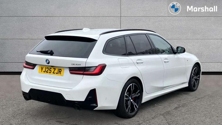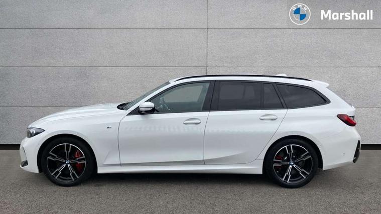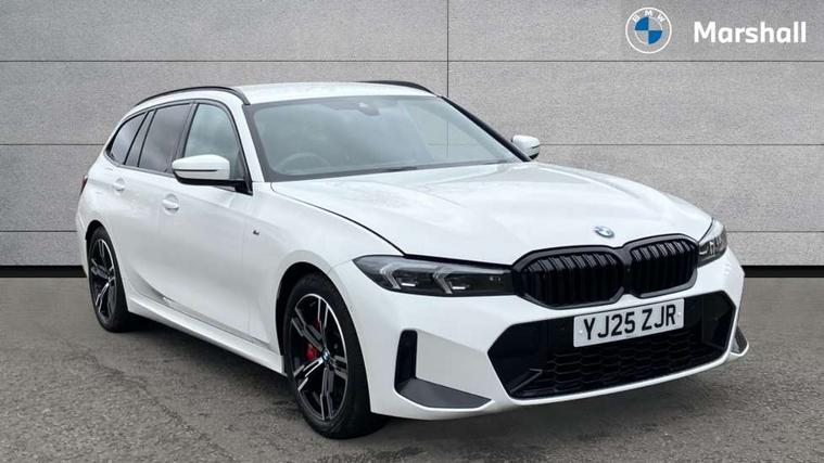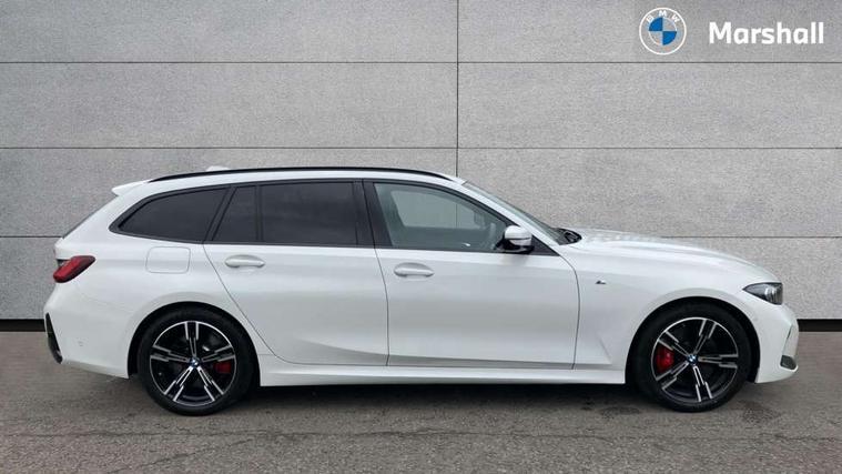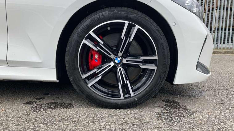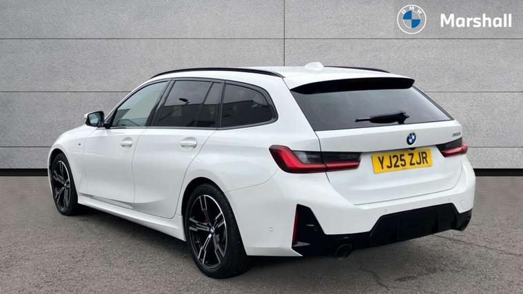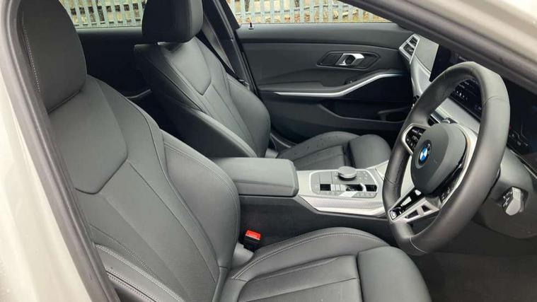 Active guard plus, Attentiveness assist, Automatic Start/stop button, Bluetooth Wi-Fi interface, BMW iDrive, BMW Teleservices, ConnectedDrive Services - last state call, Electric bootlid, Live cockpit plus with Navigation + 12.3" instrument display + 14.9" display, Intelligent voice assist, 2 USB, 4G LTE connect, Oil sensor for level and grade, Personal e-SIM, Shifting point display, Variable sport steering, Double joint spring strut front axle, Electronic differential lock control (EDLC), Fuel tank breather system, Steptronic Sport automatic transmission with steering wheel mounted gearshift paddles launch control and xtreme drive lever control, DAB tuner, 3rd brake light, Auto dimming rear view mirror, Automatic headlight beam throw control with load dependent regulating reaction, dynamic compensation of braking dive and acceleration squat, Bi-LED Low and high beam headlights, BMW emblem, engine compartment lid and tailgate, Body colour roof fin, Door sill strips, Electric windows - front and rear, with open/close fingertip control, anti-trap facility and comfort closing, Fading support, Folding wing mirror with auto dimming, Follow me home headlight function, Front and rear bumper system with replaceable deformation elements, Front apron plastic in body colour, Fuel filler flap - right rear in body colour, Heat protection glazing on front windows and windscreen, Heated washer jets, High gloss chrome kidney frame with high gloss black kidney struts, High gloss shadow line roof rails, LED daytime running lights, LED rear lights, LED turn indicator, Licence plate panel integrated into front bumper and tailgate, M high gloss shadow line exterior trim, Matt black B-pillar finsher, Matt black window recess cover, Model designation on right side of tailgate, One piece front bumper cover including towing eye cover in body colour, Rain sensor with automatic headlight activation, Rear side wing doors, Rear wiper, Reversing lights, Side frame decorative moulding black matt, Trailer stabilisation logic, Visible exhaust tailpipe finisher, Welcome lights in interior and door handle area, 12V power socket in front storage compartment, 2 front cupholder in centre console with clamping elements and matt black inlay, 3 seat bench in 2nd row, 3 spoke M Sport multifunction flat bottom leather steering wheel, 3 zone automatic air conditioning, 40:20:40 split folding rear seat with loading system, Anthracite headlining, Armrest integrated in front and rear door trim + front centre console armrest, BMW ID, Cruise control operation in steering wheel, Driving experience mode switch, Folding rear centre armrest with 2 cupholders, Front and rear headrests, Front and rear velour floor mats, Front reading light, Heated front seats, Height adjustable mechanically and infinitely variable steering column, Illuminated armrest storage compartment, Illuminated glove compartment, Illuminated luggage compartment, Lashing eyelets in luggage compartment, Single front passenger seat, Sunvisors with illuminated vanity mirrors and ticket pocket, Toolkit located in luggage compartment, Connected pack professional - 3 Series Saloon/Touring, Interior and exterior mirror pack - 3 Series Touring/Saloon, M sport exterior styling pack - 3 Series Saloon/Touring, Parking assistant pack - 3 Series, 3x3 point rear seatbelts, BMW emergency call, Child locks on rear doors, Crash sensor activating of airbags, Unlocking doors, hazard warning lights, interior light, safety battery terminal, Drive-off assistant, Driver and front passenger with seat occupancy detection for driver's and passenger side, Driver and passenger side airbags, body protection at side and airbags deploy from seat backrests, Dry braking, Dynamic brake control, Dynamic stability control + (DSC+) - Anti-lock Braking System (ABS) with brake assist and cornering brake control + Automatic Stability Control (ASC), Dynamic Traction Control - DTC, Electric parking brake including automatic hold function and automatic release of the parking brake when driving off, Front airbag deactivation, Front airbags for driver and front passenger, Head airbags in 1st and 2nd row, head protection at side, curtain airbags open from headliner above 1st and 2nd row, Plastic fuel tank, Side impact protection, Tyre pressure sensors, Ventilated front and rear disc brakes, Warning triangle and first aid kit, Alarm system, Centre lock switch, Closing system with central locking, Electronic vehicle immobiliser, Locking wheel bolts, Tyre repair kit,