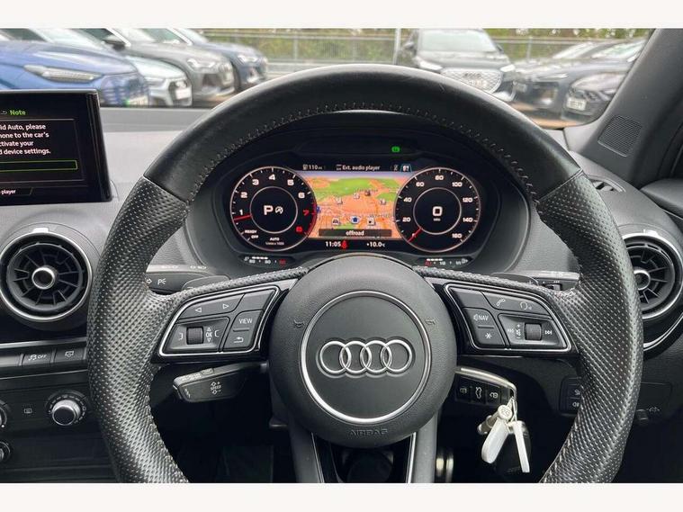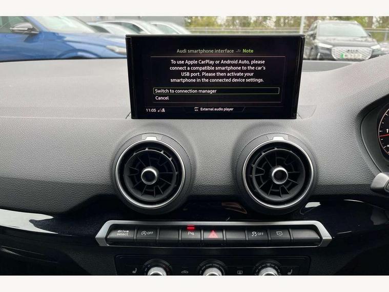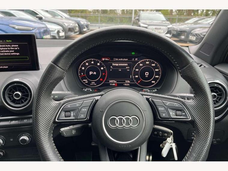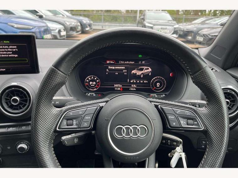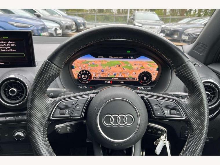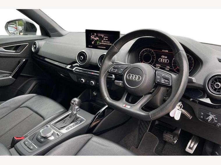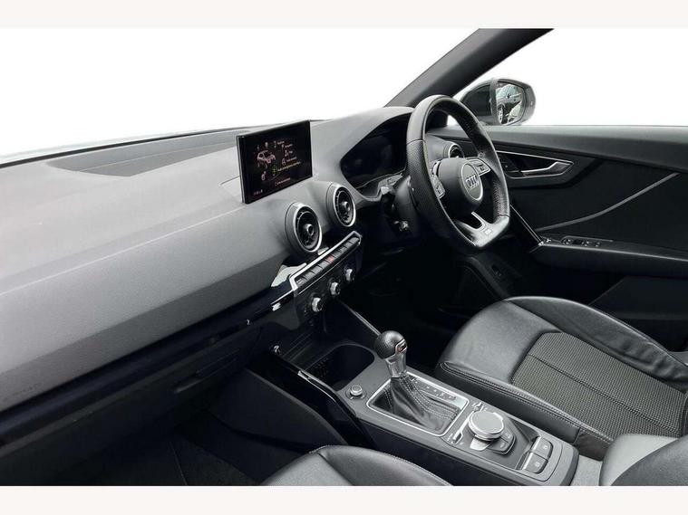 Audi drive select, Audi smartphone interface, Automatic start/stop system with recuperation, Bluetooth interface includes bluetooth audio streaming, Cruise control, MMI - Multi Media Interface control system, MMI SD card integrated nav with 3D map display, dynamic route guidance with TMC, MMI search, natural voice recognition and myAudi special destinations, Power operated tailgate, Progressive steering, Service interval indicator, Dynamic suspension, 2 x SDXC card reader, Audi music interface - apple iPod, apple iPhone, USB storage media, compatible MP3 players, 2 x USB charging points and 1 x Aux-in, CD Drive, DAB digital radio and AM/FM radio, MMI radio plus with 7" colour MMI screen and MMI controller, Black window trims, Bumper in full body colour paint finish, Chrome exhaust tailpipe, Electrically adjustable and heated door mirrors with integrated LED side indicators, Front and rear electric windows, Front underbody guard and rear diffuser trim in selenite silver, Front windscreen with grey tinted sunband, Headlight washers, Interior mirror, LED headlights with LED rear lights + dynamic rear indicators, LED indicator lights, Manual folding door mirrors, Privacy glass - dark tinted rear and rear side windows from B-pillar backwards, Rain and light sensors, Rear wiper, S Line body styling - front and rear bumpers, side skirts, radiator grille, rear diffuser insert and front air intakes, 3 spoke flat bottomed high multi-function leather sport steering wheel with gearshift paddles, 60/40 split folding rear seat bench, Black cloth headlining, Floor mats with contrast stitching, Front centre armrest, Front headrests, Front sport seats with S embossed logo, Height/reach adjust steering wheel, Illuminated door sill trims with S logo, ISOFIX child seat mounting for front passenger with airbag deactivation and outer rear seat including top tether attachment point for outer rear seats, Manual seat adjustment including seat height adjustment for front seats, Stainless steel pedals, Storage compartments - Glovebox, cupholder compartment in centre console, storage compartment in rear centre console, front and rear door pockets, Three rear headrests, Black styling pack - Q2, LED interior lighting pack - Q2, Non smoking pack - Q2, 3x3 point rear seatbelts, 6 airbags - Front, curtain and front side airbags, Electromechanical parking brake, Electronic stabilisation control including ABS, ASR and EDL, Extended and proactive pedestrian protection, Hill hold assist, Multi collision brake assist, Pre-sense front with pedestrian recognition, Seatbelt monitoring, Tyre pressure warning light, Warning triangle and first aid kit, Anti theft alarm, Anti theft wheel bolts, Central locking system with remote control key, Electronically operated child locks, Aluminium interior element, Black inlays - decorative trims in black for centre console and front and rear door pull handles,