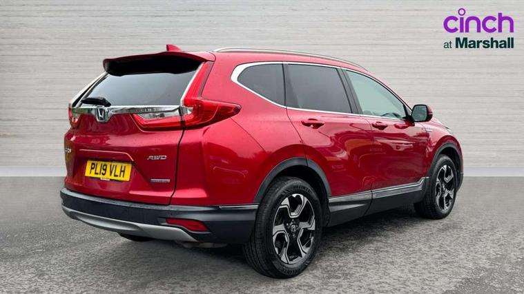 Adaptive cruise control, Agile handling assist, BLIS (Blind Spot Information System) with dual power heated blind spot mirrors, Bluetooth hands free telephone connection, Economy mode, Electric power steering, Emergency stop signalling system, Forward collision warning, Front and rear parking sensors, Hands free tailgate, Head up Display, Honda CONNECT with GARMIN Navigation + 7" touchscreen, DAB radio, Apple CarPlay, Android Auto, Aha app integration and internet browsing, Intelligent multi info display, Lane departure warning system, Lane keep assist system, Low speed following, Rear view camera, Road departure mitigation, Speed limiter, Traffic sign recognition, Vehicle stability assist, 2 USB sockets in rear, 2x USB sockets in front, 8 Speakers, DAB Digital radio, Steering wheel mounted controls, Subwoofer, Aspheric door mirrors, Auto dimming rear view mirror, Automatic headlights with dusk sensor, Body colour bumpers, Body colour door handles, Cornering light, Door mirrors tilt when reversing, Electric front windows/one touch facility, Electric rear windows + one touch facility, Electrically adjustable and heated door mirrors, Electrically retractable door mirrors, Front windscreen de-icer, High beam assist, LED daytime running lights, LED front fog lights, LED Headlights, LED rear lights, Panoramic opening glass sunroof, Rain sensor, Rear privacy glass, Rear wiper, Roof rails, Shark fin roof aerial, Welcome home function, 60/40 split folding rear seat, 8 way electrically adjustable drivers seat + mirror memory, Accessory sockets, Ambient interior lighting, Ambient light in roof, AWD emblem rear, Cargo hooks, Courtesy lights, Driver's electric adjustable lumbar support, Driver/passenger front seatback pockets, Driver/passenger sunvisors with illuminated vanity mirrors, Dual zone automatic climate control, Electric lumbar adjustment on passenger's seat, Footwell ambient lighting, Front centre armrest, Front map lights, Front passenger seat height adjust, Heated front seats, Heated rear seats, Heated steering wheel, Hybrid emblem, Illuminated glovebox, Instrument panel with garnish wood film, Isofix child seat preparation, Leather steering wheel, Leather upholstery, Paddle shift controls, Rear air vents, Rear centre armrest, Rear headrests, Rear reading lights, Silver interior door handles, Sunglasses holder with mirror, Tilt/telescopic adjustable steering wheel, Tonneau cover, Trunk light, 5 x 3 point seatbelts, ABS/EBD, Anti-whiplash front headrests, Brake assist function, Collision mitigation braking system, Deflation detection system, Driver airbag, Electronic parking brake with auto hold, Front and rear curtain airbags, Front side airbags, Hill start assist, Passenger airbag deactivate switch, Honda super locks, Immobiliser, Remote keyless entry, Security alarm, Ultrasonic sensor and tilt sensor, Tyre repair kit,