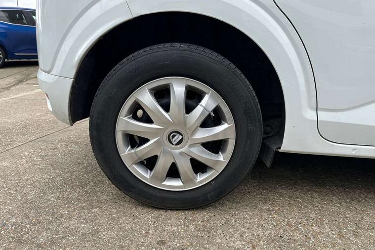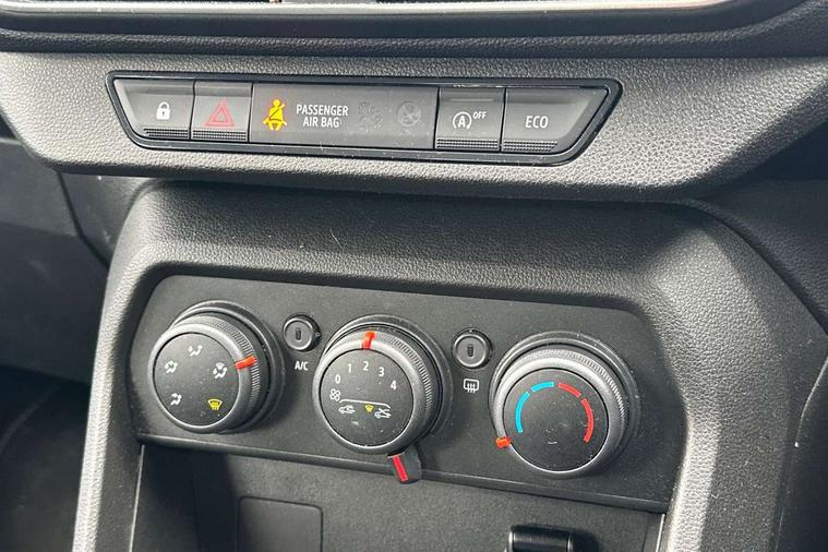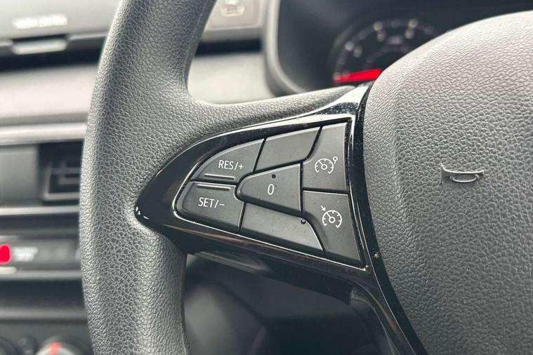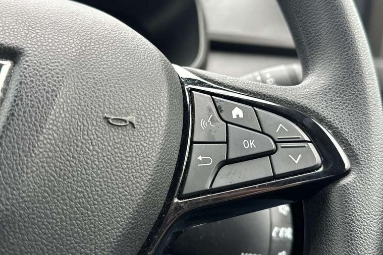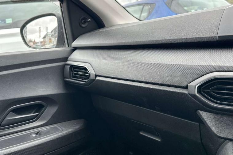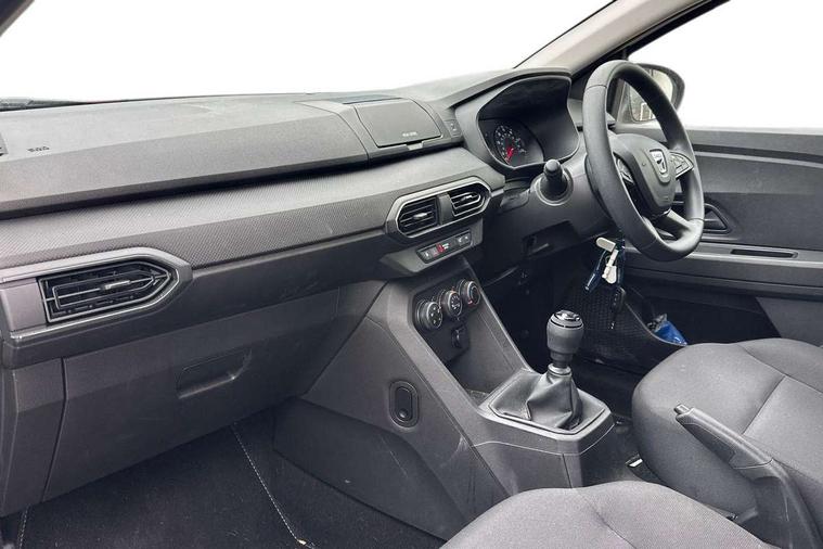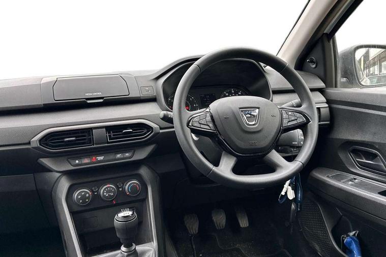 3.5" TFT instrument panel with on-board computer, Cruise control with speed limiter, eCall emergency call system, Eco mode, Electric power assisted steering, Rev counter, Stop/start system, Media Control - DAB Radio with display on instrument panel, Bluetooth, 2 Speakers, Pre-wiring for radio and speakers, USB connection for data transfer and charging, USB socket, 3 speed windscreen wipers, Auto lighting, Black door handles, Black door mirrors, Black radiator grille, Body coloured bumpers, Front electric windows, Heated rear window, High level third brake light, LED automatic daytime running lights, LED Y shape Dacia signature lighting, Manually adjustable door mirrors, Rain sensor, Rear manual windows, Rear side wing doors, Rear wash/wipe, Tinted windows, 1/3 to 2/3 split folding rear seats, 12 volt front socket, 3 height adjustable rear headrests, 3 seat rear bench, Black interior door handles, Fabric upholstery, Fixed smartphone holder on dashboard, Front armrest, Gear shift indicator, Height adjustable driver seat, Height adjustable front headrests, Height/depth adjustable steering wheel, Isofix points for child seats in both outer rear seats, Manual air conditioning, Satin chrome air vents, Single front passenger seat, Steering wheel controls, 3x3 point rear seatbelts, ABS and Emergency brake assist, Automatic emergency braking system, Child locks on rear doors, Door open warning, Driver airbag, ESC (Electronic Stability Control), ESP (Electronic Stability Program) + Hill Start Assist, Front curtain airbags, Front seatbelt pretensioners, Front side airbags, Height adjustable front seatbelts, Passenger airbag, Seatbelt reminder for driver and front passenger, Tyre pressure monitor, Automatic central locking, Immobiliser, Remote central locking, 15" Steel wheels with full wheel cap, Tyre inflation kit,