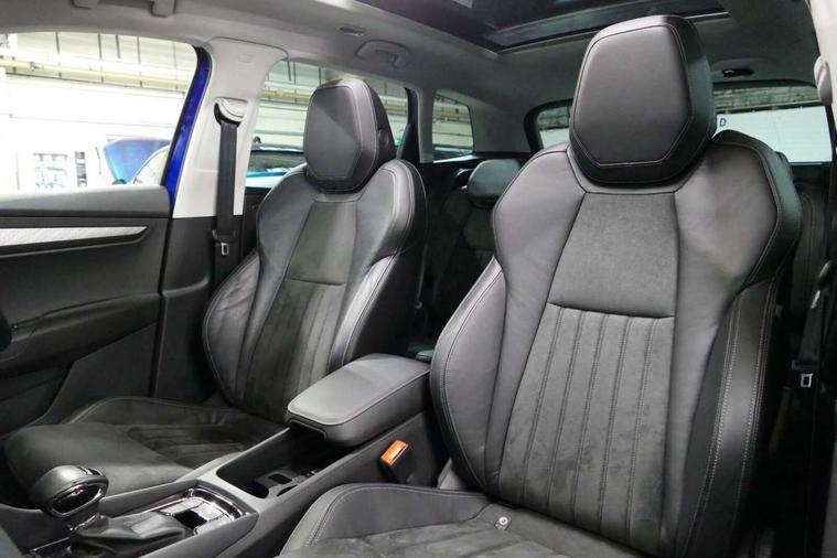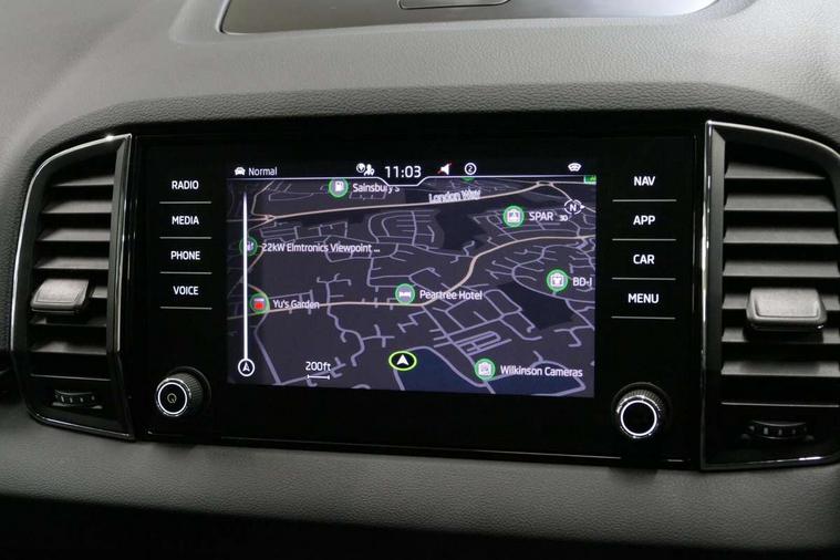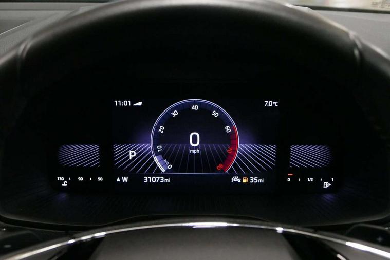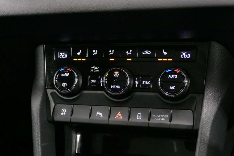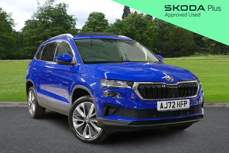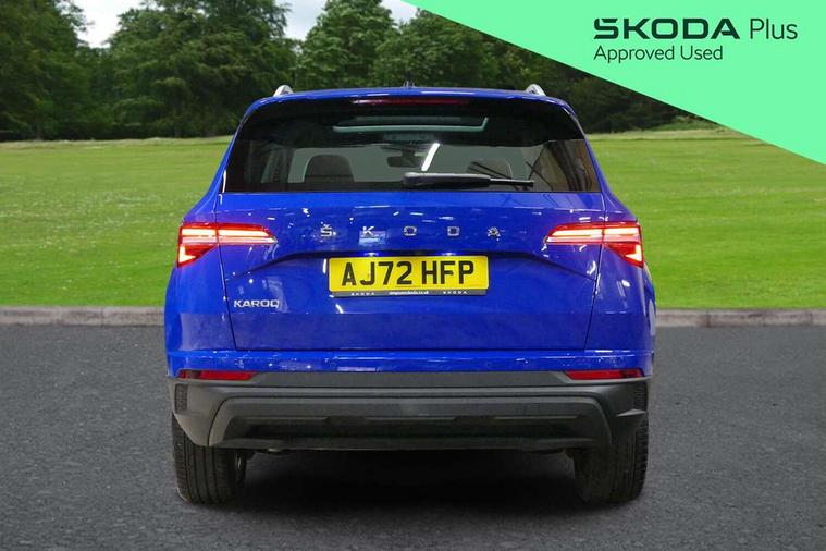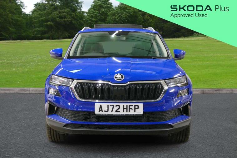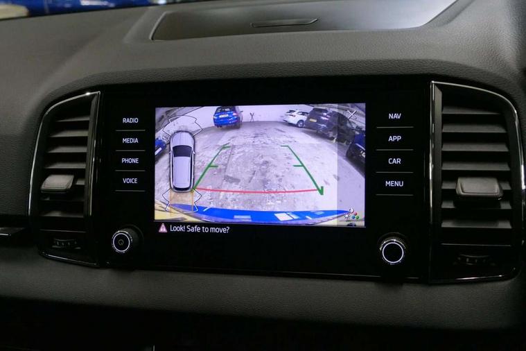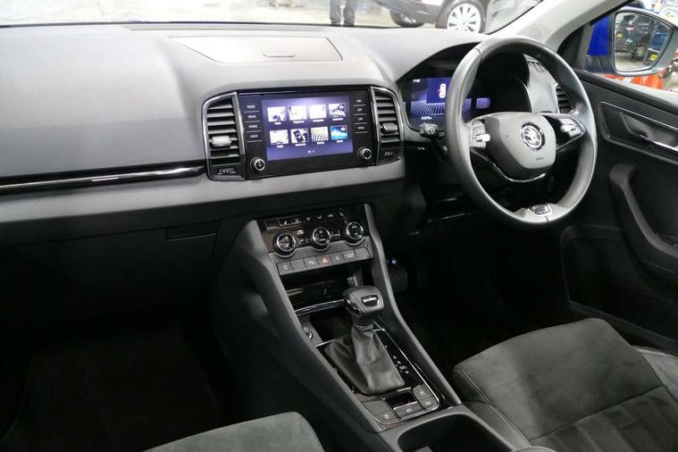 8" Digital display, Care connect, Driver fatigue sensor, Emergency services call system, Outside temperature gauge, Service interval indicator, SmartLink wireless for Apple and wired for Android, Start/stop system with regenerative braking, USB C Port x 2 in front centre console, 8 Speakers, DAB radio with Bluetooth, USB connection, Acoustic glass, Aero front windscreen wipers with intermittent function, Auto dimming rear view mirror with light and rain sensors, Black electric window control buttons, Body colour door mirrors and handles, Dynamic headlight range control with cornering light function, Electric front and rear windows with child proof lock, Heated rear windscreen, LED daytime running lights, LED rear lights with high functionality welcome effect and dynamic indicators, Light assistant (coming/leaving home/tunnel light), Plastic scuff plates, Privacy glass, Rear side wing doors, Rear spoiler, Rear window wiper with washer system and intermittent control, Safety reflectors on front doors, 1.5 litre bottle holders in driver and front passenger door panels, 12V socket in boot, 12v socket in front centre armrest with storage compartment and rear air vents, 2 Folding hooks and nets in boot, 2 spoke leather heated multifunction steering wheel with DSG paddles, 2 x Tablet holder, 3 rear height adjustable headrests, 3 seat bench in 2nd row, 4 foldable roof handles with rear coat hooks, Black floor carpet, Chrome inner door handles, Decorative door sills with KAROQ badging, Double sided boot floor, Foldable hooks in the boot, Front head restraints, Height adjustable front three point seats belts with tensioners, Height/reach adjust steering wheel, Ice scraper, Illuminated glovebox, Illuminated luggage compartment, Isofix child seat preparation for front passenger seat, Isofix child seat preparation outer rear, Manual lumbar support for front seats, Pen holder, Pollen filter, Rear boot cover, Rear reading lights, Rubbish bin door, Safety vest holder, Single front passenger seat, Storage box in upper central dashboard closed, Sunvisors with illuminated vanity mirrors, Textile floor mats, Ticket holder, VarioFlex seats with standard rear seat release, Chrome roof rails + chrome pack - Karoq, Parking pack - Karoq, Automatic door unlocking in case of crash, Automatic fuel cut off in case of crash, Child locks on rear doors, Driver airbag, Electronic parking brake with auto hold function, Emergency rear braking signal, ESC including ABS, MSR, ASR, EDS, HBA, DSR, RBS, MKB and traction control, Front side airbags, Hill hold control, Knee airbags, Passenger airbag with switch-off function, Pedestrian monitor, Seatbelt reminder signalisation and pretensioner for all seats, Three point seatbelts rear, Two tone horn, Tyre pressure display, Tyre pressure monitor, Alarm with interior monitoring, back up horn and tilt sensor with safe function, Electronic engine immobiliser, Keyless entry and start/stop, Remote central locking with 2 remote folding keys, Chrome framed air vents, Anti-theft wheel bolts protection, Storage on wheel cover, Tool kit,