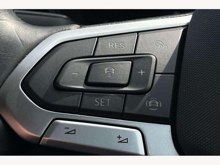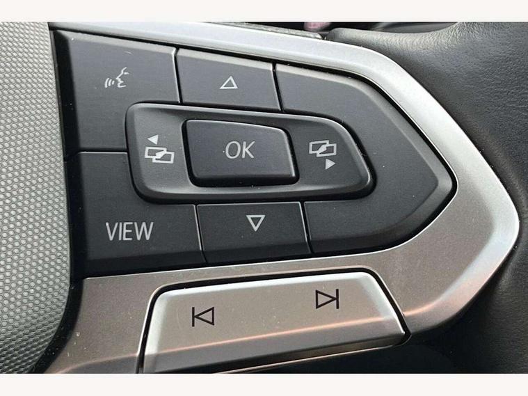 'Lights On' Reminder warning buzzer, Adaptive cruise control including front assist, forward collision warning, autonomous emergency braking, speed limiter, Blind spot monitoring, Bluetooth telephone and audio connection for compatible devices, Car information display, Digital cockpit, Driver alert system, eCall emergency call system, Lane assist, Low washer fluid warning light, Multifunction computer with visual gear change recommendation for fuel consumption, Operating permit alteration, Power assisted speed sensitive steering, Speedo, rev counter, electronic odometer, trip, service interval display, exterior temperature and fuel gauge, Stop/start system, Tailgate, Warning sound and light for doors and tailgate open, Warning sound and light for front seatbelts unfastened, We Connect Go Dongle, Wireless Car net app connect with Apple CarPlay, combined functionality of Apple CarPlay/Android Auto and MirrorLink, Battery regeneration during braking, Misfuel prevention device, 2x USB connection with USB charging sockets and in rear centre console, DAB Digital radio receiver, Diversity antenna for FM reception, Multi device interface (MDI) with USB connection, Music playback - MP3, WMA and AAC files, Premium USB cable for Apple or Android smartphone compatibility, Simultaneous pairing of 2 compatible mobile devices, Title and cover art display, Automatic hazard lights activation under emergency braking, Black door mirrors, Black roof rails, Body colour door handles, Body coloured bumpers, Dusk sensor + automatic driving lights, Electrically foldable, adjustable and heated door mirrors with reverse activated kerb view adjustment on passenger's side, Front and rear electric windows, Front fog lights with static cornering function, Galvanised body, Heated rear window, LED third brake light, Lower door sills and door pillars in black, Radiator grille with high gloss surface and chrome strip, Rear fog light on one side, reversing light on both sides, Rear lights incorporating LED technology, Rear side wing doors, Rear tinted glass 65% approx light absorbing from B pillar backwards, Rear window aerial, Rear windscreen washer and wiper with interval delay, Reflectors in all doors, Tailgate with integrated roof spoiler, Windscreen wipers/ intermittent wipe + 4 position delay, 12V Accessory socket in centre console, 3 rear head restraints and 3 rear three point seat belts with ECE label, 3 seat bench in 2nd row, 60/40 split folding rear seat backrest, Comfort front sport seats, Diag cloth upholstery, Drawer under drivers seat, Driver and front passenger sunvisor with vanity mirror, Driver's sunvisor with ticket holder, Dust and pollen filter, Front + rear carpet mats, Front and rear reading lights X 2, Front centre armrest with storage compartment, Front seat back storage pockets, Front seats with adjustable lumbar support, Glovebox, Heating and fresh air system with 4 stage blower, Height/reach adjust steering wheel, Instrument lighting white adjustable panel illumination, Interior light with delay, Isofix child seat preparation for 2 rear child seats, Luggage compartment cover, Luggage compartment lighting, Manual air conditioning, Moveable and foldable Rear bench seat, Single front passenger seat, Storage compartment in drivers and front passengers door, Three spoke multi-function leather trimmed steering wheel and gearknob, 3-point seat belts in front with electric tensioner + height adjustment, Anti-lock Braking System (ABS) with Hydraulic Brake Assist (HBA), Automatic post collision braking system, Driver and front passenger safety-optimised head restraints, Drivers and Front Passengers airbags with front passengers airbag deactivation switch, ESC with EDL, ASR, EDTC and trailer stabilisation function, Front and rear curtain airbags, Front seat side impact airbags, Hill start assist, Pre crash preventive occupant protection, Proactive passenger protection system in combination with front assist, Rear door child safety locks, Rigid safety cell with front and rear crumple zones, Single torn horn, Tyre pressure loss indicator, Volkswagen roadside assistance, Alarm with interior protection and deactivation via infotainment system, Child security locks in rear doors, Electronic engine immobiliser, Remote tailgate unlocking using key fob, Decorative inserts transition high gloss black/platnium grey, 17" Manila black diamond turned surface alloy wheels + anti theft wheel bolts, Breakdown kit,