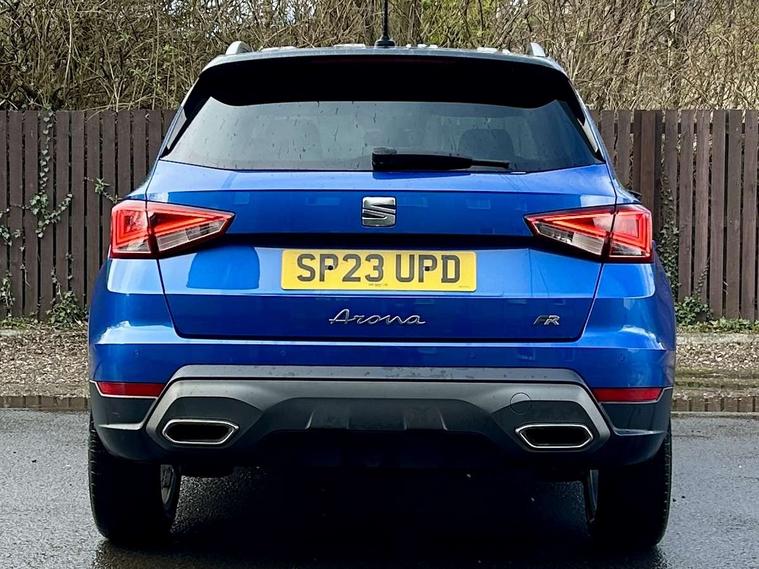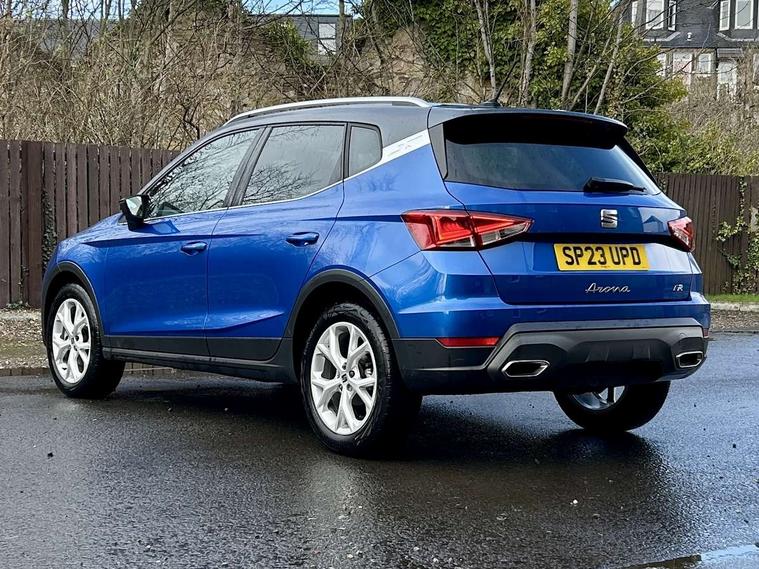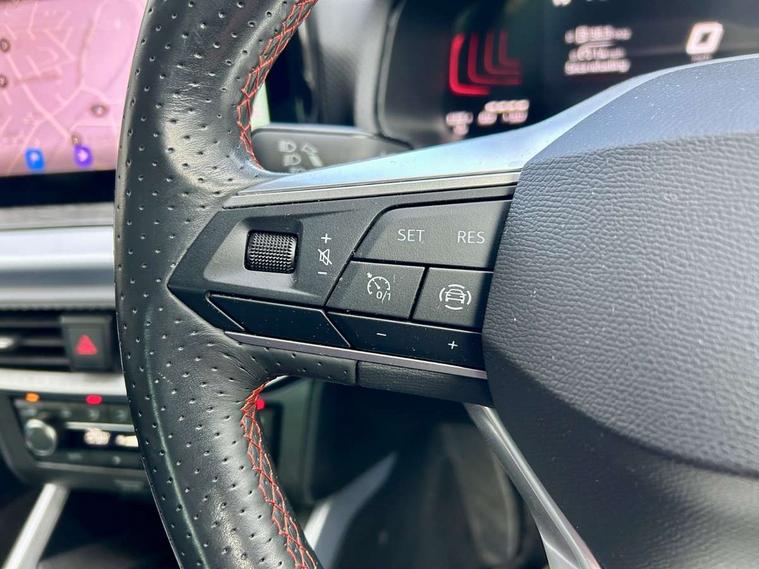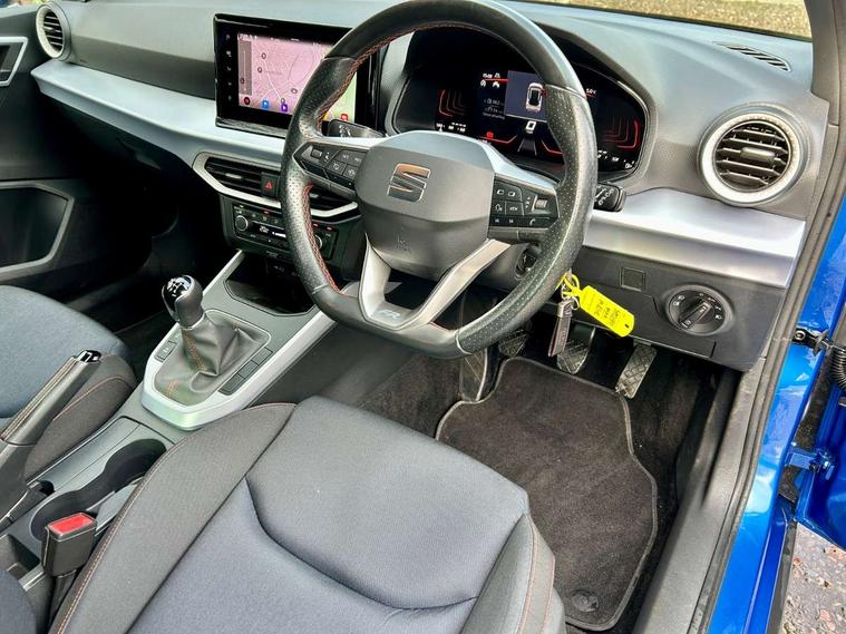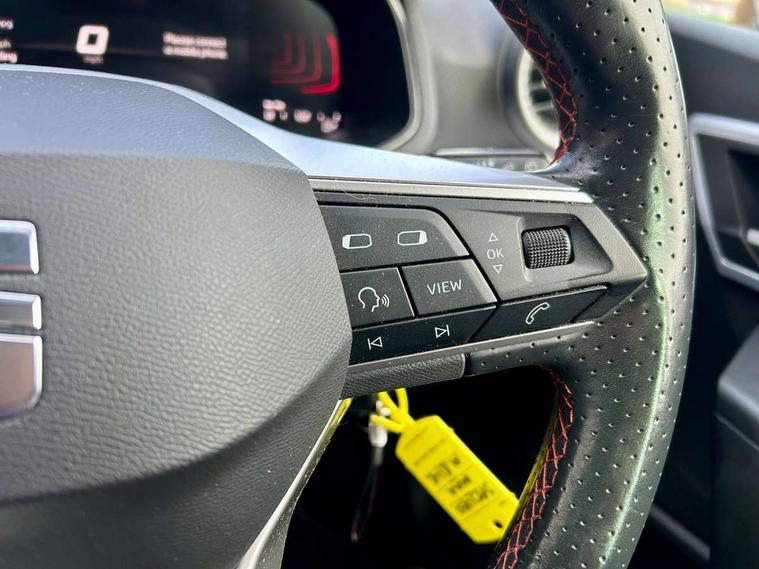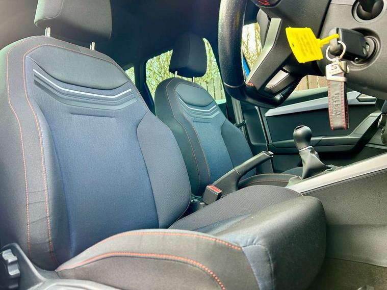 'Lights On' Reminder warning buzzer, 8" Digital cockpit, Digital clock, E-call, Electric speed sensitive power steering, Full Link Smartphone Integration with Mirror Link, Apple Car Play, Google Android Auto with USB Type C cable for Apple and Android compatibility, Lane keeping system, Low fuel warning light, Outside temperature display, Rear parking sensor, RPM counter, Seat connect with safety, service, remote and online, SEAT Drive profile - Four different models normal-sport-eco-individual, steering response, throttle response, Trip computer, Wireless phone charger, 9.2" colour touchscreen with navigation system, voice control and USB port (type c), Bluetooth interface for hands free and audio streaming, DAB digital radio and AM/FM radio, Steering wheel mounted audio controls, Anti theft roof antenna, Auto dimming interior rear view mirror, Automatic activation of hazard warning lights, Body coloured bumpers, Body coloured door handle inserts, Chrome roof rails and window surrounds, Dark tinted rear windows, Electric front/rear windows, Electrically adjustable, heated and folding door mirrors, Front fog lights with cornering function and rear fog light, FULL LED automatic headlights with dynamic headlight range control, coming and leaving home, LED daytime running lights, LED rear tail lights and licence plate lights, Protective side mouldings, Rain sensing wipers, Rear side wing doors, Rear spoiler, Rear window wash/wipe, Roof colour door mirrors, Third brake light, Twin exhaust pipe styling hidden exhaust pipe, Visible VIN plate, Windshield wiper with intermittent control and potentiometer, 2 cupholders, 3 seat bench in 2nd row, 60/40 split folding rear seat, Aircare filter, Black interior roof, Cloth upholstery, Double boot floor, Driver sunvisor with covered mirror + card holder, Dual zone climate control, Front courtesy light with 2x front and 2x rear reading lights, Front sport seats, Gear shift indicator, Height adjustable front seats, Height/reach adjustable steering column, Illuminated boot, Instrument lighting with brightness control, Interior ambient lighting, Interior light in footwell, central console and door panel, ISOFIX points in outer rear seats with top tether anchorage points, Passenger sunvisor with vanity mirror, Perforated flat bottomed leather steering wheel/gear knob/handbrake with red stitching and FR logo, Single front passenger seat, Two front and three rear height adjustable headrests, Interior chrome pack - Arona, 3 point seatbelts on all rear seats, ABS, Active front headrests, Child locks on rear doors, Driver and front passenger airbags with front passenger airbag de activation, front side and curtain airbags, Electronic stability control, Emergency Brake Assist (EBA) and front assist, Front and rear seatbelt reminder, Hill hold control, Multi-Collision braking, Tiredness recognition system, Traction control, Tyre pressure monitoring system, Alarm with back-up horn, Electronic engine immobiliser, Locking wheel bolts, Remote central locking + deadlocks, Tow away protection, Titan black dashboard, 17" Dynamic alloy wheels,