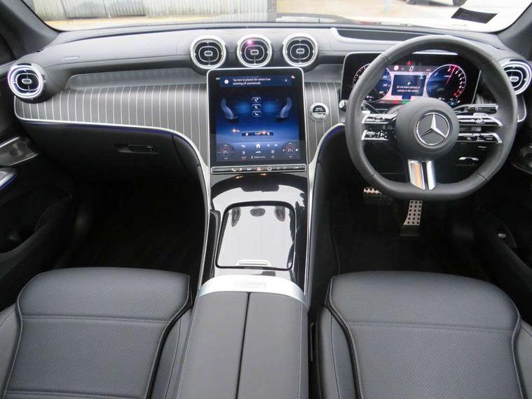 11.9" high resolution multimedia colour display, 12.3" Digital individually configurable instrument display, Acoustic presence indicator, Active lane keeping assist, Active park assist with PARKTRONIC/360 degree camera - Detects spaces/assists with steering, accelerating/braking when reversing into a parking space, Attention assist, Blind spot assist, Bluetooth interface for hands free telephone, Collision prevention assist plus, Direct steer speed sensitive steering, DYNAMIC SELECT with a choice of driving modes (ECO, Comfort, Sport and Individual, Offroad)), eCall emergency call system, Fingerprint scanner, Fluorescent jacket for driver, Hard disc navigation, Head up Display, Instrument display in miles with English lettering, MBUX augmented reality for navigation, MBUX navigation premium, MBUX voice control activated by keywords "Hey Mercedes", Mercedes me connect, Multi function trip computer, Outside temperature display, Remote and charging services plus, Remote boot release, Road sign recognition system, Service indicator (ASSYST), Smartphone integration with Apple CarPlay/Android Auto, Status display for rear seat belts in instrument cluster, Traffic sign assist, Wireless charging system for mobile devices in the front, 49 litre fuel tank, 4MATIC four wheel drive - variable all wheel drive system designed for all weather traction, 7.4 kW monophase on board charger, 9G TRONIC 9 speed automatic transmission with steering column gear selector and DIRECT SELECT steering wheel paddles, Alternating current charging system (AC charging), Charging cable for domestic socket (mode 2) - 5m, DC Charging system, Mode 3 charging cable for wallbox and public charging station with 5 m, straight, Petrol Particulate Filter (PPF), Residual engine heat utilisation, Burmester 3D surround sound system - 13 speakers and a 9 channel amplifier with total output of 590 watts, DAB digital radio tuner, MBUX extended functions, Pre installation for Mercedes Benz Link, Sound personalisation, Adaptive brake lights, Adaptive high beam assist plus, Aluminium look running boards with rubber studs, AMG bodystyling front apron, rear apron and side skirts, AMG Line exterior, Auto headlights, Black roof rails, Body colour bumpers, Body colour door mirrors, Digital light LED headlights, Electric panoramic glass sunroof, Electrically adjustable door mirrors, EQ Hybrid badging on front wings, Front and rear electric windows, Headlight washers, Heat and noise insulating acoustic glass, Heat insulating dark tinted glass, Heated rear window, High level LED brake light, Integrated LED daytime running lights, LED indicator lights, LED rear fog lights, LED tail lamp, MG diffuser look rear apron with insert in chrome, Motor way mode function and locator lighting, Radiator grille with Mercedes Benz pattern and integreated Mercedes star and louvre in dark grey matt with chrome inlay and black frame, Rain sensor windscreen wipers, Range adjustable headlights, Rear side wing doors, Rear wiper, Transparent Bonnet, Two chrome plated tailpipe trim elements, Variable front intermittent wipers, Welcome and follow-me home light functionality, Wheel arch liners in the vehicle colour, 3 seat bench in 2nd row, 40:20:40 split folding rear seats, Ambient lighting premium - Illuminated light lines on the centre console flanks, instrument panel, doors and in the air vents, additional dimming zone, AMG brushed stainless steel sports pedals with black rubber studs, AMG line interior, Artico man-made leather upholstery, Automatic child seat recognition sensor, Black fabric roof lining, Black floor mats with AMG lettering, Climatised front seats - Heated and cooled, Comfort seats, Double cup holder in centre console, Electrically height/reach adjustable steering column, Front centre armrest with stowage compartment, Front head restraints, Heated steering wheel, Illuminated and lockable glove compartment, Illuminated door sill panels with Mercedes Benz lettering, Instrument panel and beltlines in ARTICO manmade leather in nappa look, Interior ambient lighting - 64 colours, 10 colour themes with indirect illumination of the dashboard/door trims, 5 brightness levels/3 dimming zones, Multicontour front seat with massage function, Multifunctional sports steering wheel in nappa leather, galvanised gearshift paddles, audio and onboard setting controls, Partition net, Rear centre headrest, Rear head restraints, Rear top tether child seat ISOFIX attachment, Removable load compartment cover, Single front passenger seat, Sun visors, THERMATIC 2 zone automatic climate control, Boot comfort package - GLC, Easy tailgate pack - GLC, Exterior chrome package - GLC, Interior chrome package - GLC, Interior lighting pack - GLC, Keyless-Go comfort package - GLC, Memory pack - GLC, Mirror pack - GLC, Night package - GLC Urban Edition, Stowage space package - GLC, USB Plus Pack - GLC, 3 rear 3 point seatbelts, Active bonnet, Adaptive brake system with HOLD function and brake drying in the wet, Anti-lock braking system (ABS), ASR traction control, Automatic front passenger airbag deactivation, Black seat belts, Brake calipers with Mercedes-Benz lettering + perforated brake discs, Brake calipers with Mercedes-Benz lettering + perforated front brake discs, Child proof door locks, Dual-stage airbags - driver and front passenger, driver knee bag and window bags for driver, front passenger and rear passengers, Electronic parking brake, Electronic stability programme (ESP) with curve dynamic assist and cross wind assist, Front and rear seatbelt reminder, Front passenger seat occupancy sensor, Front seatbelt pretensioners, Hill start assist, Tyre pressure monitoring system, Warning triangle and first aid kit, Anti theft alarm system with immobiliser and interior protection, Automatic door locking, Guard 360 degree vehicle protection plus, Increased anti-theft protection, Interior protection/immobiliser, Remote central locking, Black open pore aluminium lines wood trim with centr