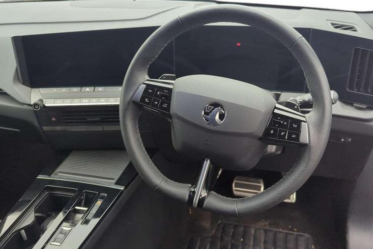 Adaptive cruise control with intelligent speed adaption, Bluetooth connectivity, Breakdown call (b-call), Digital central facia display with audio info, digital clock with automatic RDS time adjustment and Outside air temperature with ice warning function, Digital instrumentation - Speedometer, rev counter, satellite navigation display, low fuel & water temperature warning light, shift up/down indicate light, Drive mode selector (Eco, Normal, Sport), Drive Smart - Live navigation provided by TomTom and Real time traffic news, Driver drowsiness alert system, Driver information display - Total mileage, service due indicator, oil life, eCall emergency system, Extended traffic sign recognition, Front and rear parking distance sensors, Handsfree calls via steering wheel controls, In-crash braking, Intelli vision 360 degree panoramic parking camera, Lane departure warning with lane keep assist, Lights on audible warning, Multifunction trip computer - Trip mileage, vehicle range, average speed and fuel economy, instantaneous fuel economy and driving time, Natural voice recognition with satellite navigation commands, phone connectivity functions, choice of music playback and operation of electronic clima, Over the air updates and WiFi updates, PAS, Phone book access, Pure Panel pro 10" Digital instrument cluster and 10" Infotainment colour touchscreen with full glass execution, RDS with traffic programme, Service interval indicator, Shift paddles, Speed sign recognition, Vauxhall connect, Vehicle microphone, Vehicle status and information, 6 speakers, AM/FM stereo radio with 36 station presets, DAB Digital radio, Front USB connection with iPod control, Smartphone interface with Apple CarPlay, Android Auto and Wireless smartphone projection, Steering wheel audio, phone and cruise controls, Active bonnet/headlight/wiper structure, Adaptive brake lights, Automatic lighting control, Black door mirrors, Black Griffin logo and vizor frame, Black lower window frame moulding, Body colour sports style bumpers with high gloss black lower front grille decor blade and rear valance panel, Body coloured door handles, Dark tinted rear windows, Door to door illumination, Electrically operated front and rear windows with safety auto reverse and one touch up/down facility, Frameless automatic anti dazzle rear-view mirror, Heated rear window, High beam assist, Intelli LED headlights, Intermittent rear window wash/wipe, LED daytime running lights, LED side repeat indicators, LED tail lights, LED third brake light, Manual headlight levelling, Rear side wing doors, Shark fin aerial, Soundproof insulated windscreen, Twin electric adjustable/heated/power folding door mirrors + puddle lights, Two speed rain-sensitive windscreen wipers with variable intermittent wipe, Windscreen and side window demist vents, 12V electrical accessory socket in front, 3 seat bench in 2nd row, 60/40 split folding rear seat, Ambient light (customisable with 8 colours), Black headliner, Chrome effect interior door handles, Driver's and front passenger's sunvisors, Drivers ergonomic active sports-style seat (AGR approved), Dual zone electronic climate control, Eight way adjustable height, reach, tilt, backrest, seat cushion extension, head restraint in drivers seat, Fade up/down front and rear courtesy light, Flex load floor, Folding storage box on driver side lower facia, Four adjustable facia vents, Four lashing eyes in load compartment, Four way adjustable height, reach, backrest, head restraint in front passengers seat, Four way electrical lumbar adjustment, Front and rear seatbelts, Front centre armrest with cupholder, Front door pockets, Front head restraints, Fully carpeted load area, Glovebox with lid, Greta fabric upholstery with side bolsters and surrounds, Heated front seats, Heated steering wheel, Illuminated load area, Illuminated vanity mirrors, Interior tailgate handle, Isofix child seat mounting points on outer rear seats, Luggage compartment cover, Pollen filter, Reach and rake adjustable steering column, Rear centre headrest, Rear door pockets, Rear head restraints, Rear reading lights, Rubber pedals, Single front passenger seat, Storage compartment in centre console, Three spoke flat bottom perforated leather covered steering wheel, Twin gas assisted tailgate struts, Two drinks holder in centre console, 3x3 point rear seat belts, 8 Airbags - Drivers and front passengers airbags, Front seat side-impact airbags and Full-size curtain airbags, Anti-lock braking system (ABS), Automatic emergency braking with pedestrian detection, Child locks on rear doors, Cornering brake control, Deactivation switch for front passengers front and side impact airbags, Drag torque control, Electronic brake force distribution, Electronic parking brake, Emergency brake assist, ESC - Electronic Stability Control + traction control, Fading brake support, Forward collision alert at all speed, Front and outer rear seatbelt force limiters, Hill start assist, Outer rear seatbelt pretensioners, Rollover mitigation, Seatbelt unfastened audible warning and warning light, Straight line stability control, Tyre pressure monitoring system, Upper and lower bumper design to reduce upper and lower leg injuries, Deadlocking system, Key left in ignition audible warning, Keyless entry and start, Locking wheel nuts, Remote control central locking, Remote control ultrasonic security alarm system, Black facia with isabella trim inserts, Instrument panel bar in Liquid palladium, Mistral black trim inserts on front doors, 17" Black alloy wheels,