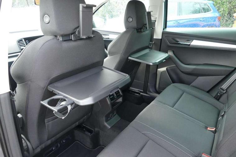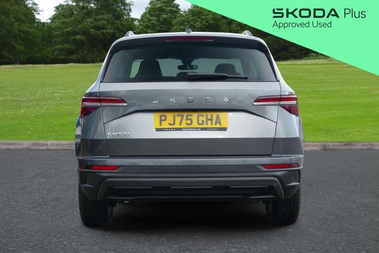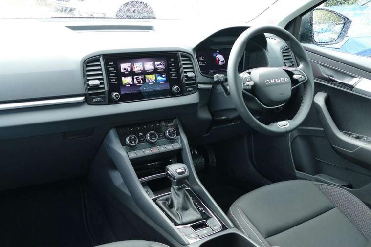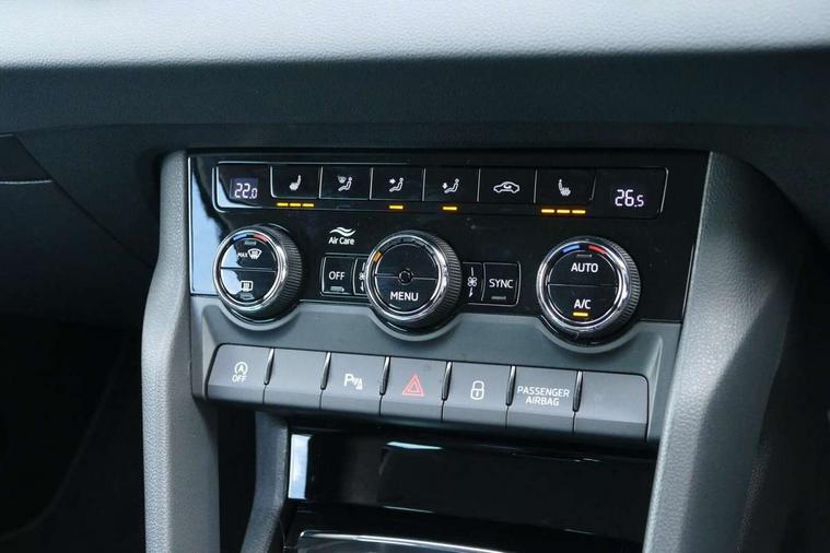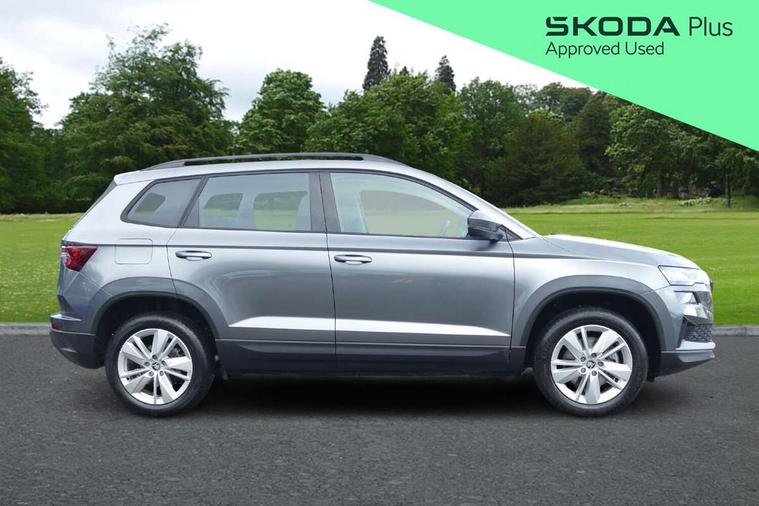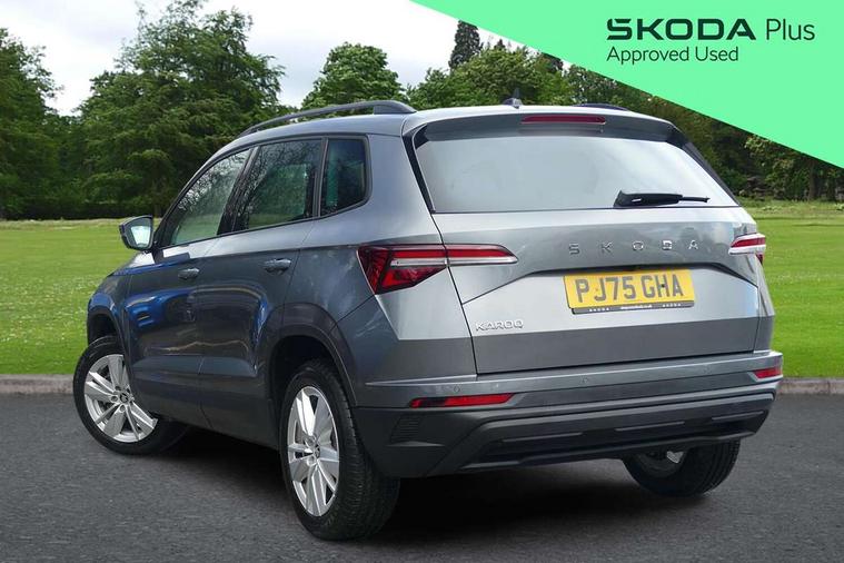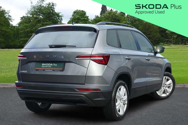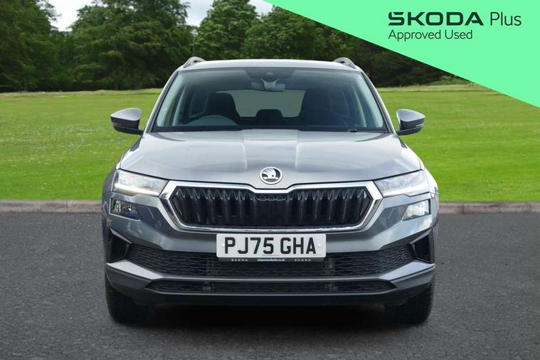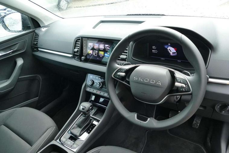Advanced driver attention and drowsiness monitor, Amundsen navigation system with 8" touchscreen display and integrated WLAN and web radio, Electro-mechanical PAS, Emergency services call system, Lane assist, Outside temperature gauge, Sensor for driver assistance systems, Service interval indicator, SmartLink wireless for Apple and wired for Android, Start/stop system with regenerative braking, Traffic sign recognition, USB C Port x 2 in front centre console, Virtual Cockpit - 10.25" digital display, Wireless smartphone charging, 8 Speakers, DAB radio with Bluetooth, USB connection, Acoustic glass, Aero front windscreen wipers with intermittent function, Auto dimming rear view mirror with light and rain sensors, Black electric window control buttons, Body colour door mirrors and handles, Electric front and rear windows with child proof lock, Electrically adjustable heated folding and auto dimming door mirrors, Front fog lights, Headlight range control, Heated rear windscreen, LED daytime running lights, LED Headlights, LED rear lights with high functionality welcome effect and dynamic indicators, Light assistant (coming/leaving home/tunnel light), Plastic scuff plates in door apertures, Privacy glass, Rear side wing doors, Rear window wiper with washer system and intermittent control, Safety reflectors on front doors, Third brake light, Unique dark chrome design logo on alloy wheels, 1.5 litre bottle holders in driver and front passenger door panels, 12V socket in boot, 12v socket in front centre armrest with storage compartment and rear air vents, 2 spoke leather heated multifunction steering wheel with DSG paddles, 2 x Tablet holder, 3 rear height adjustable headrests, 3 seat bench in 2nd row, 4 foldable roof handles with rear coat hooks, Black floor carpet, Cargo elements in boot, Chrome inner door handles, Driver/front passenger reading lights, Foldable hooks in the boot, Folding tables on the front seat backrests, Front head restraints, Height adjustable driver and passenger seat, Height adjustable front three point seats belts with tensioners, Height/reach adjust steering wheel, Ice scraper, Illuminated glovebox, Illuminated luggage compartment, Interior noise suppression, Isofix child seat preparation for front passenger seat, Isofix child seat preparation outer rear, Loft fabric upholstery, Manual lumbar support for front seats, Pearl grey interior ceiling, Pen holder, Pollen filter, Rear boot cover, Rear package tray, Rear reading lights, Rubbish bin door, Safety vest holder, Single front passenger seat, Skoda lettering on steering wheel, Storage box in upper central dashboard closed, Sunvisors with illuminated vanity mirrors, Textile floor mats, Ticket holder, Umbrella under passenger seat, Under passenger seat storage compartment, Non Smokers pack, Parking pack - Karoq, Winter pack with heated front seats - Karoq, Automatic door unlocking in case of crash, Automatic fuel cut off in case of crash, Driver airbag, Electronic parking brake with auto hold function, Emergency rear braking signal, ESC (incl. ABS+MSR+ASR+EDS+HBA+DSR+RBS+MKB), Front assist, Front side airbags, Head airbags, Hill hold control, Knee airbags, Passenger airbag with switch-off function, Pedestrian monitor, Power operated child safety locks, Seatbelt reminder signalisation and pretensioner for all seats, Three point seatbelts rear, Two tone horn, Tyre pressure monitor, Alarm with interior monitoring, back up horn and tilt sensor with safe function, Electronic engine immobiliser, Keyless entry and start/stop, Remote central locking with 2 remote folding keys, Anodized cross door decor, Black centre console, Chrome framed air vents, Satin black dashboard, Satin black door trim, Anti-theft wheel bolts protection, Breakdown and tool kit,