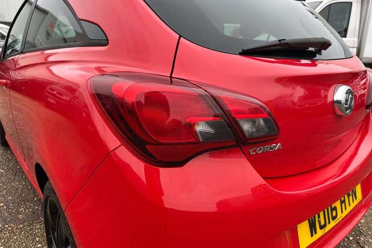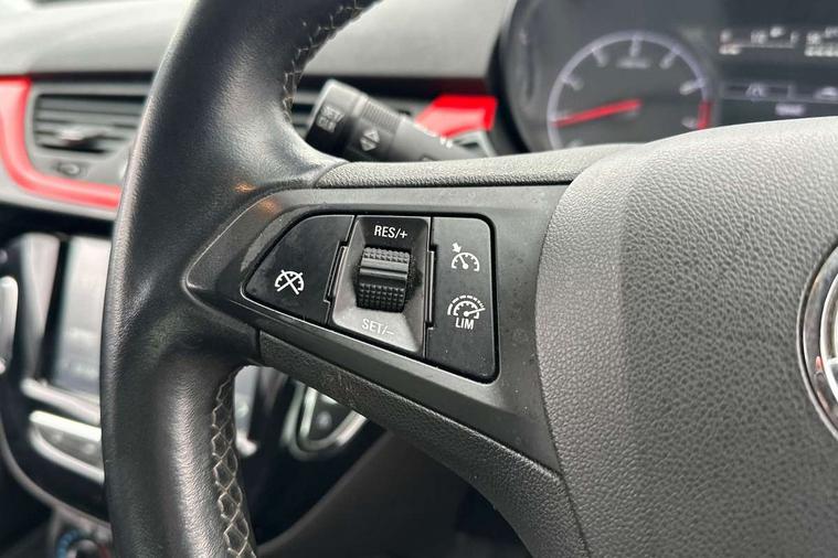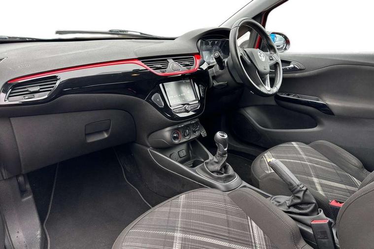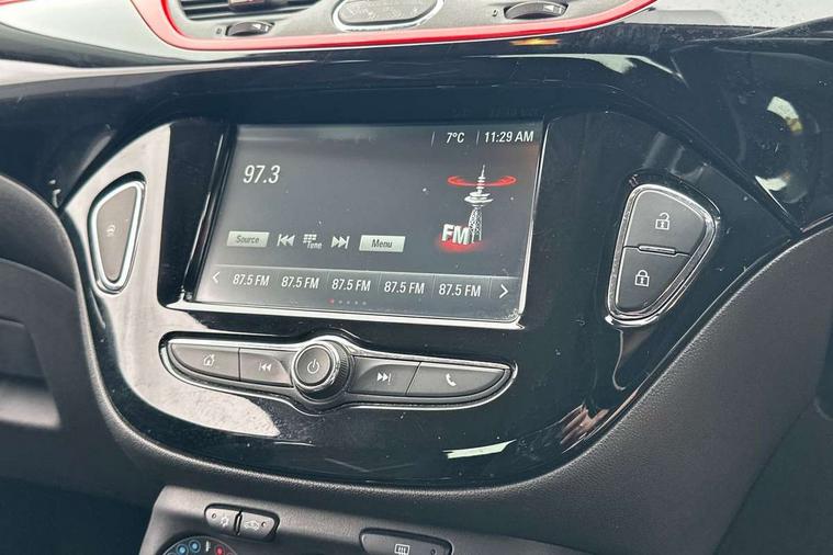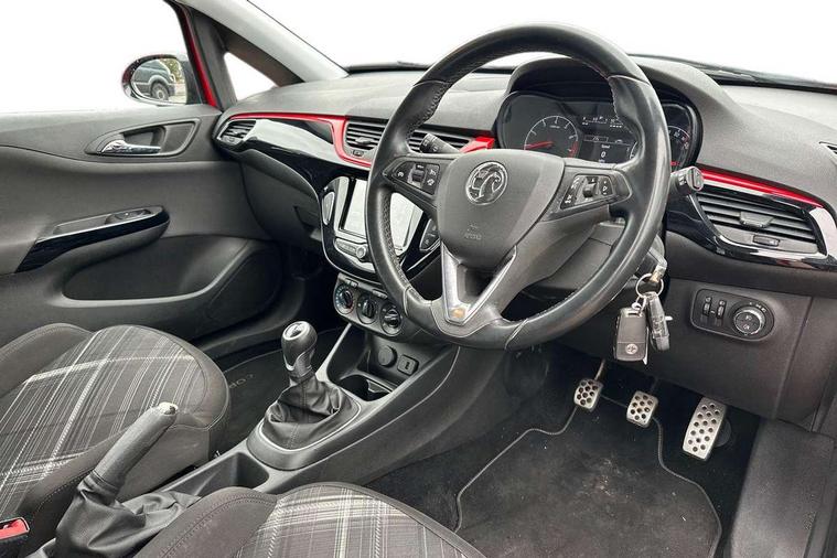Bluetooth system, City assist mode for power steering, Cruise control + speed limiter, Door/boot open warning light, Exterior temperature gauge, Lights on warning, Low fuel level warning light, Rev counter, Service indicator, Speed sensitive power steering, Trip computer, Sports suspension, 6 speakers, DAB digital radio module, Fingertip controls for audio system, USB connection, Black carbon flash roof, Black door mirrors, Black front grille, Body colour bumpers, Body colour door handles, Chrome door handles, Chrome effect tailpipe extension, Dark tinted rear glass, Electric adjustable door mirrors, Electric front windows/one touch facility, Extra tinted glass in rear windows and tailgate, Headlamp levelling, Heated door mirrors, Heated windscreen, Laminated windscreen, LED daytime running lights, Rear wiper, Roof spoiler, Tinted glass including windscreen, Twin black stripes on bonnet roof and tailgate, Welcome lighting, 12V power outlet, 2 height adjustable rear headrests, Adjustable dashboard illumination, Air recirculation system, Centre console with cupholders, Delay courtesy light function, Driver/passenger reading lights, Driver/passenger sunvisors and vanity mirrors, Easy entry reclining front seats with memory, Electric reach + rake adjustable steering column, Folding rear seats, Front door pockets, Front map reading lights, Front seat belt pre-tensioners with load limiters, Glovebox, Grab handles, Height adjustable driver's seat, Height adjustable front headrests, Height/reach adjust steering wheel, Illuminated glovebox, Interior courtesy light operated by all doors, ISOFIX on outer rear seats, Lidded front door storage with drinks holder + armrest, Load restraining lashing points, Luggage compartment cover, Pollen filter, Rear bottle holder, Rear parcel shelf, Reclining front seats, Sports front seats, Sport pack 3 - Corsa, ABS + EBD + EBA, Brake assist function, Driver/passenger 2 stage auto adaptive airbags, ESP + traction control, Front and rear curtain airbags, Front and rear seatbelt reminder, Front seat side impact airbags, Height adjustable front seatbelts, Hill start assist, Manual passenger airbag deactivation function, Three 3 point rear seatbelts, Tyre pressure monitoring system, Anti-drill door locks, Deadlocks, Immobiliser, Key left in ignition audible warning, Locking wheel bolts, Radio frequency remote central locking, Chrome effect speaker surrounds, 17" Black alloy wheels - Style 3, Tyre inflation kit,