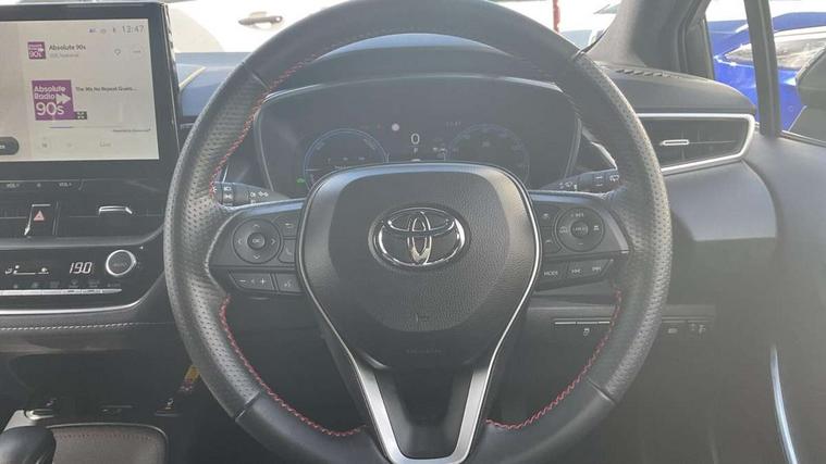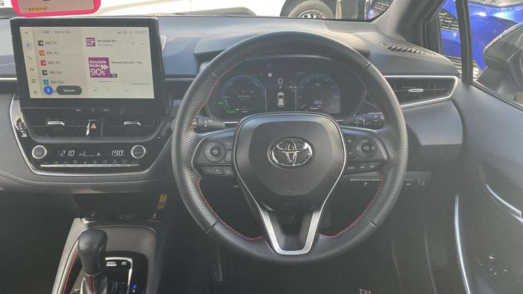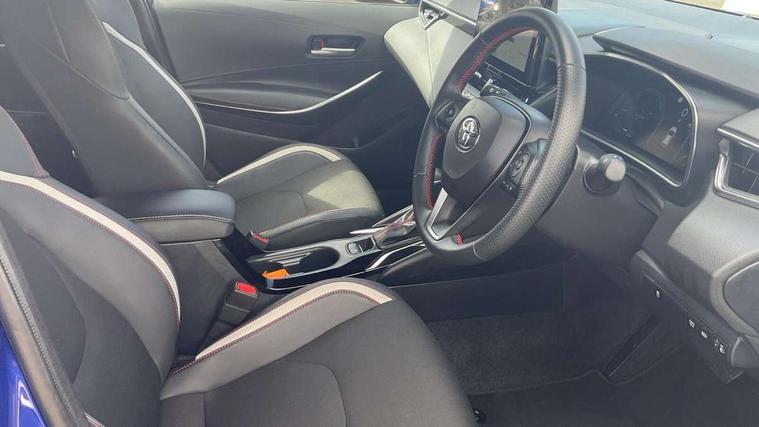 10.5" Multimedia display screen, Bluetooth telephone connectivity, Connected car functionality upgrade, tracker, remote status and e-care, Drive mode select (Eco, Normal), E-call, Electrically assisted power steering, EV drive indicator, Front and rear parking sensors with auto brake, Full Digital 12.3" TFT Digital Combimeter, Key reminder warning, Lane Departure Alert (LDA) switch on steering wheel, Memory on adjustable speed limiter, MyT connected services, Proactive driving assist (PDA), Reversing camera, Smart entry and push button start with GR Logo, Smartphone integration with Apple CarPlay and wired android auto, Tailgate, Toyota remote services, Toyota smart connect navigation, Wireless charger, Gasoline particulate filter, Vehicle Stability Control (VSC), 6 speakers, AM/FM radio, DAB Digital radio, Front USB-C in centre console, Front USB-C in dashboard, Smart voice assist/ Voice recognition, USB and Aux in connectors + 12V front outlet, Anti-jam protection on power windows, Auto up and down function on all power windows, Automatic folding mirrors, Automatic headlights with high beam assist, Black centre and side air vents, Black toyota logo in front, Body coloured bumpers, Body coloured door mirrors, Body coloured outside door handles, Dark chrome lower grille, Electrochromatic mirror, Follow me home headlights, GR Sport dark chrome front mesh grille and black rear grille, GR Sport exclusive under guard, GR sport scuff plates, LED daytime running lights, LED dual beam projector headlights, LED front fog lights, LED High mounted stop light, LED rear combi lights with LED lightguide, Manual headlight levelling system, New grille pattern, Noise reduction layer on windscreen, Piano black diffuser, Power adjustable heated door mirrors, Power front windows, Power rear windows, Privacy glass with UV filter, Rain sensing wipers, Rear side wing doors, Rear window defogger, Rear window wiper, Reverse tilting door mirrors, Rocker and door lower moulding, Roof spoiler, Satin chrome insert on front air vents, Satin chrome insert on front door assist grips, Satin silver front spoiler, Shark fin antenna, Tailgate release with push button, Time adjustment on intermittent wiper, Turning signal integrated indicators in door mirrors, Unique lower skirt, Unique side rocker with black insert, UV-filter on driver and passenger windows, 2 Shopping bag hooks in luggage compartment, 3 rear headrests, 3 seat bench in 2nd row, 3 spoke leather steering wheel with satin insert/red stitching + gear knob, 4 tie down hooks in luggage compartment, 60/40 split folding rear seat, Adaptive cruise control (ACC) switch on steering wheel, Adjustable speed limiter switch on steering wheel, Audio, multimedia and telephone switches on steering wheel, Black armrest on centre console box, Black gear shift console, Boot light, Centre room light, Driver and front passenger personal light, Driver and passenger assist grip, Driver and passenger seatback pockets, Driver and passenger sun visor with mirror and light, Dual zone automatic air conditioning with ECO mode switch, Fabric/synthetic leather upholstery, Front and rear cup and bottle holders, Front door pockets, Front head restraints, Front passenger seat, Front sliding synthetic leather armrest, GR Sports seats with partial leather bolsters, Heated seats, Illuminated entry system in room lamp, ISOFIX seat fixing (2 fixings on rear outer seats), Manual height adjustable for driver and front passenger seat, Manually tilt with sliding driver and front passenger seat, Nanoe-X air purifier, Parcel shelf, Pollen filter, Power window switches with satin chrome inserts, Rear armrest with 2 cupholders, Rear passenger coat hooks (2), Red stitching on gear shift, Remote air conditioning, Satin chrome inside door handles, Satin chrome surround on speedometer, Sliding armrest on centre console box, Slow opening glovebox with lights, Textile floor mats, Tilt/telescopic steering column, Voice recognition switch on steering wheel, Whiplash Injury Lessening (WIL) feature (active headrest) for seats, White ambient lighting on open tray and front cup holder, Toyota safety sense 3 pack - Corolla, 3x3 point rear seatbelts, Adjustable driver and front passenger seat belt extender to top anchor point, Anti lock braking system + Electronic brake force distribution, Brake assist function, Child locks on rear doors, Downhill Assist Control (DAC), Electronic parking brake, Emergency brake light signal (EBS), Front passenger airbag on/off switch, Front seatbelt reminder, HAC - Hill start assist control, Rear seat belt reminder, Seatbelt pretensioners and force limiters, Supplemental restraint system (SRS) 7 airbags - dual driver, dual side curtain, side impact and driver knee airbags, Traction control, Tyre pressure warning system, Acoustic vehicle alert system (AVAS), Alarm with motion sensor and immobilizer, Power passenger window lock, Remote central locking + deadlocks, GR Sport interior styling with accents and exterior styling, Satin chrome dash trim, Soft touch texture on upper dashboard, Stitching on lower dashboard, 18" Black machined face 10 spoke alloy wheels, Tyre repair kit, Unique wheel finish with red wheel cap,