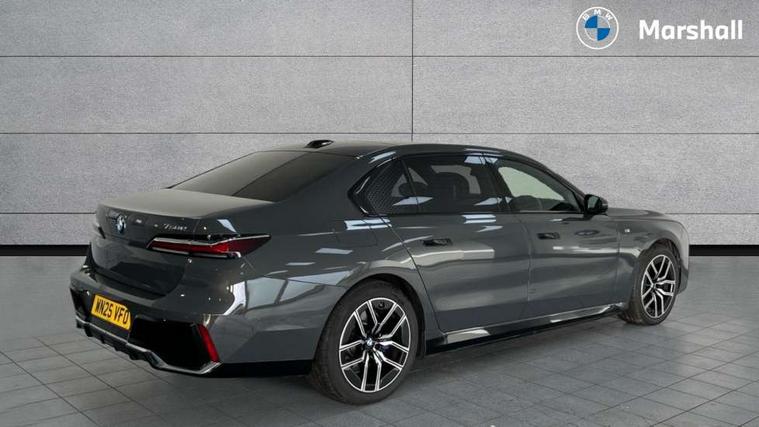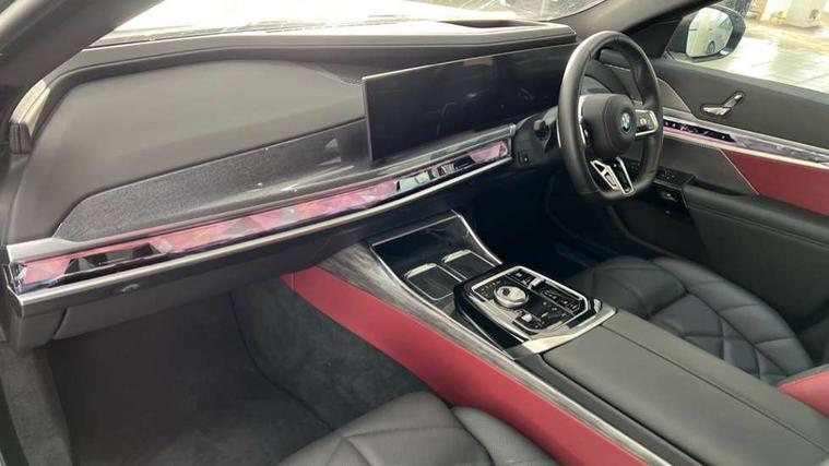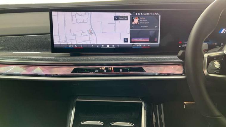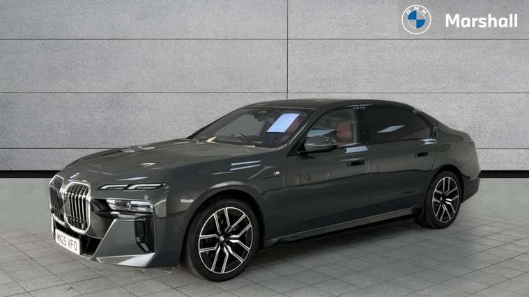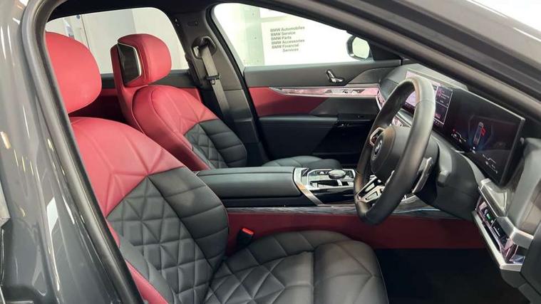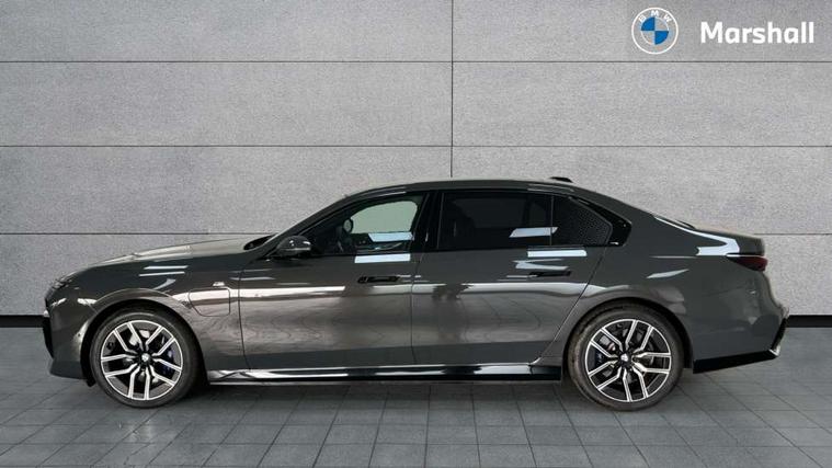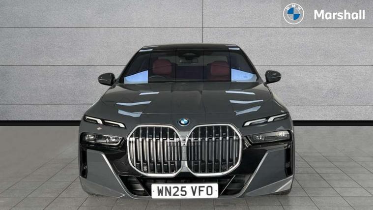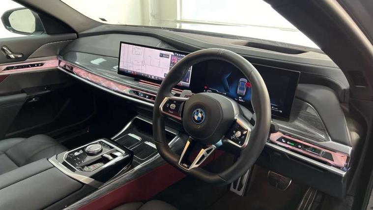 Active Guard, Attentiveness assist, BMW ConnectedDrive - Online, BMW gesture control, BMW Iconic sounds electric, BMW iDrive, BMW interaction bar, BMW legal emergency call, BMW Natural interaction, BMW Teleservices, BMW Touch command, Brake pad wear indicator, Comfort access system with smart opener, Condition based service, Driving Assistant Plus Preparation, Driving control panel, Electric boot lid - electrically opening/closing rear tailgate, Instrument panel joint diffuser in black, Live Cockpit Pro with head up display including 12.3" instrument cluster and 14.9" central display, My Modes, PAS, Rollback prevention, Run flat indicator, Smartphone wireless charging plate, Speed dependent regulation with variable steering gear ratio, AC fast charging maximum power 11kW, Adaptive 2-axle air suspension, BMW xDrive system, Steptronic sport transmission, 2x USB Type C ports in front centre console for charging and data transfer, 2x USB Type C ports in rear centre console for charging, DAB Digital radio, Personal eSim, BMW badge on front and rear, BMW radiator grille, Climate comfort windscreen, Daytime running lights, Deletion of front/front side sills and side rear apron, Door handle flush to surface including lock barrel on driver side, Dynamic brake lights, Electric adjustable door mirrors, Electric front and rear windows with fingertip open/close + anti-trap all round and comfort closing function, Electric heated door mirrors, Entry sills, Exterior mirror cap, Front and rear bumper panel, Front windscreen wiper in wet-arm technology, Ground lighting, Heated rear window, High beam assistant, High gloss shadow line exterior trim, Iconic Glow Illuminated Kidney Grille, Interiror rear view mirror, M Sport exterior styling, Model badge, Number plate lights, Number plate panel, Rain sensor + automatic driving lights control, Rear boot, Rear side wing doors, Roof aerial housing in black, Side window frames, Tailpipe trims, Third brake light, Towing eye, Trailer stabilisation logic, Two-part front light, Welcome lighting, Window recess finisher strip, Window washer nozzle for reversing assist camera, 12V power sockets, 2 upper retaining strap clips in parcel shelf, 3 seat bench in 2nd row, 3 spoke leather M steering wheel in BMW M specific design with M badge, 4 coat hooks in B-pillar and roof grab handle in rear, Ambient interior lighting, Bag hooks on luggage compartment trim panel, BMW ID, Central folding rear headrests, Comfort cushion in rear seats, Contour illuminated front and rear door pocket, Door sill finishers with BMW designation, Electric seat adjustment with memory, Electrically opening glove compartment, Footrests and pedals in plastic, Footwell courtesy lights front and rear, Four lashing eyes in luggage compartment, Four zone automatic air conditioning, Front and rear cupholders x 2, Front and rear reading lights, Front armrest, Front headrests, Grab handles, Heated front and rear seats, Illuminated front and rear centre armrest storage compartment, Illuminated glove compartment, Interior lighting, ISOFIX attachment point for both outer rear seats, Luggage compartment light, Luggage compartment removable panel, M sport interior styling, Multifunction steering wheel, Multifunctional front seats, Reach and rake adjustable steering column, Rear centre armrest, Rear door entry light, Rear door exit lights, Single front passenger seat, Soft close doors, Standard driver and front passenger seat, Stationary cooling and heating, Storage compartment in central/rear centre console, rear centre armrest, Storage compartment with cover on left, without cover on right in side trim panel, Sun visors for driver and front passenger with illuminated vanity mirror with slide cover, Through loading system, Velour floormats, Wireless charging tray, Connected Package Professional - 7 Series, Expanded exterior mirror package - 7 Series, 3 point seatbelts on all seats, Acoustic protection for pedestrians, Active protection, Anti-lock braking system (ABS), Automatic Stability Control (ASC), Brake assist, Brake drying, Braking readiness, Child locks on rear doors, Cornering brake control (CBC), Crash Sensor - activates hazard/interior lighting + unlocks doors, Driver and front passenger airbags, Driver central airbag, Driver/front passenger side airbags, DSC - Dynamic Stability Control, Dynamic brake control, Electromechanical parking brake + auto hold function, Front and rear brake discs, Head airbags for first and second row seats, Integrated braking system, PC iBrake PostCrash approach control warning with light braking function, Rear airbags, Tyre pressure monitoring system, Tyre pressure sensors, Warning triangle and first aid kit, Closing system with central locking, Electronic vehicle immobiliser, Fuel filler flap/charging socket flap in body colour, Locking wheel bolts, Remote central locking, Thatcham Cat.1 alarm, Vehicle key, Front centre console decorative trims, Tyre repair kit,
