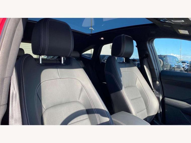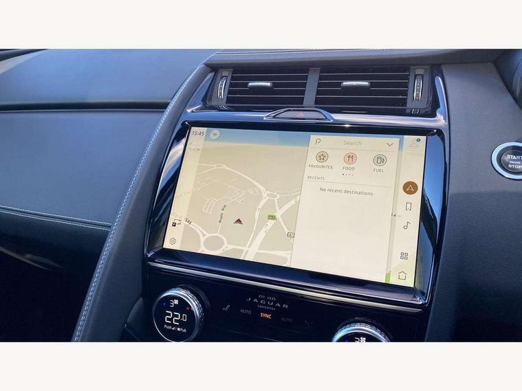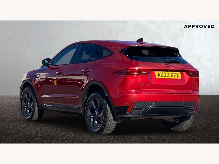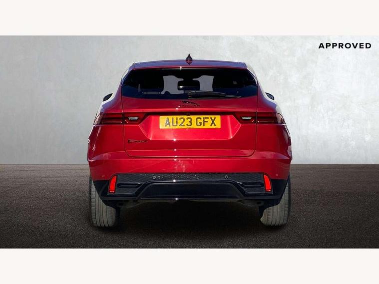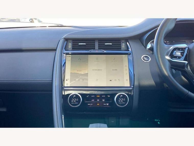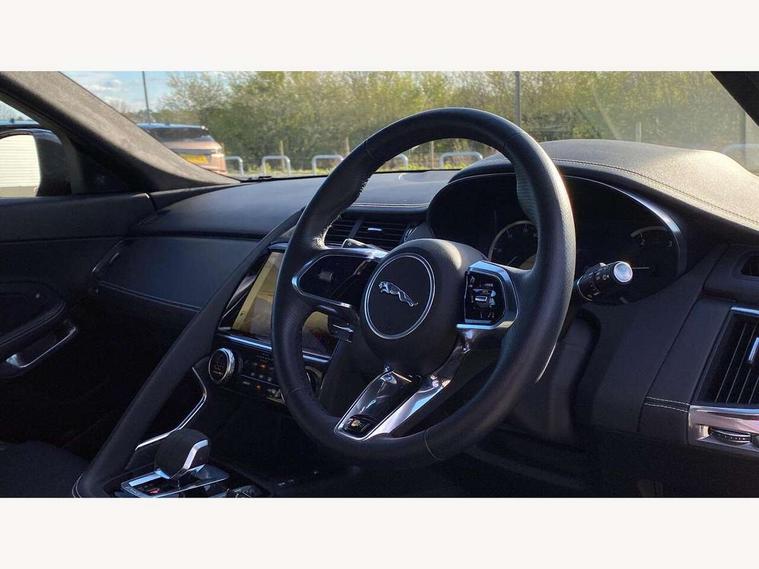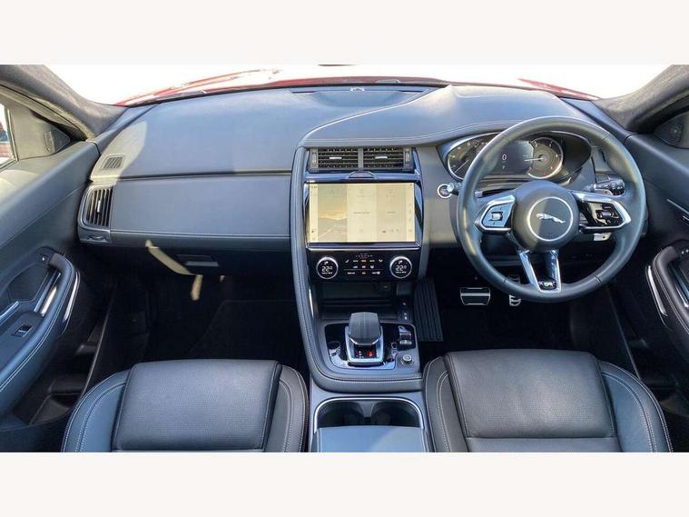 11.4" touchscreen with central ICP, 12.3" full digital instrument panel, Adaptive cruise control, Android Auto, Apple car play, Driver condition monitor, Eco driving style assistant, Electric power assisted steering, Emergency services call system, Front and rear parking aid, InControl remote, Jaguar drive control with adaptive surface response, Jaguar Toggle sport shift selector, Lane keep assist, Outside temperature gauge, Pivi pro connected infotainment system with smart settings and navigation pro, Push button start, Speed proportional steering, Traffic sign recognition with adaptive speed limiter, Trip computer, Voice control system, Configurable dynamics, Diesel particulate filter, Efficient Driveline, Passive suspension, AM/FM DVD MP3 radio, Bluetooth connectivity including audio streaming, DAB digital audio broadcast, Dynamic volume control, 3 flash lane change indicators, Approach Illumination, Auto high beam assist, Automatic headlights, Body colour door handles, Body colour upper spoiler, Body coloured side sills, Centre high-mounted stop light, Electric front/rear windows with one touch/auto up/down, Electric heated/power fold memory door mirrors with approach lights and auto dimming driver side, Embossed leaper for grained and windsor leather, Fixed panoramic glass sunroof, Heated washer jets, Heated windscreen, Jaguar script and leaper, LED tail lights, LED third brake light, Narvik black antenna pod and side pillar finisher, Narvik black door mirrors, Narvik black front and rear low bumpers, Narvik black lower side cladding, Privacy glass, R Dynamic badge, Rain sensor windscreen wipers, Rear fog lights, Rear side wing doors, Rear wash wiper, Satin black grained front outer grille, low grill mesh and low bumper valence, side fender vent mesh and finisher, rear tow eye cover and grille mesh, Twin exhaust tailpipe, Variable front intermittent wipers, 3 rear head restraints, 3 seat bench in 2nd row, 40:20:40 rear seat fold, Bright metal pedals, Carpet mats, Centre console with armrest, Enhanced ambient lighting, Hooks loadspace, ISOFIX on outer rear seats, Loadspace cover, Loadspace light, Loadspace storage net, Luggage tie-downs in loadspace, Manual height/reach adjust steering wheel, Multifunction steering wheel, Overhead lighting console, Passive front head restraints, Power sockets, R-Dynamic branded leather steering wheel, Rear air vents, Rear bench seats, Satin chrome gearshift paddles, Single front passenger seat, Sunvisors with illuminated vanity mirrors, Twin front cupholders, Two zone climate control, Exterior black pack - E-pace, 3x3 point rear seatbelts, ABS, All surface progress control (ASPC), Child locks on rear doors, Customer configurable autolock, DSC - Dynamic Stability Control, Electronic brake force distribution, Electronic parking brake, Emergency brake assist, Emergency braking, Front airbags with passenger seat occupant detector, Front and rear curtain airbags, Front and rear seatbelt reminder, Front passenger airbag deactivation, Front seatbelt pretensioners, Front side airbags, Height adjustable front seatbelts, Hill start assist, Low friction launch, Power child locks, Torque vectoring brake, Tyre pressure monitoring system, Intrusion sensor and alarm, Locking wheel nuts, Remote central locking,