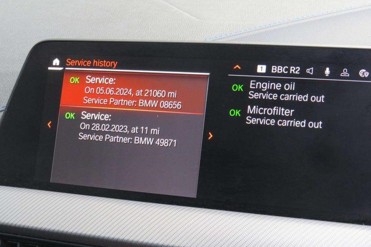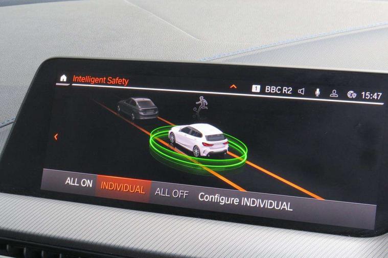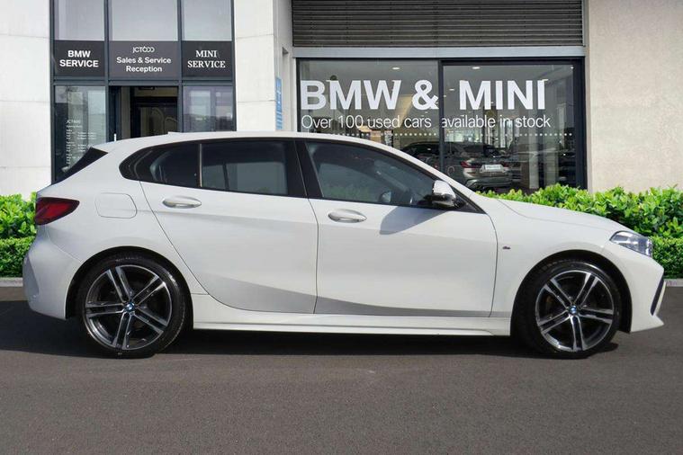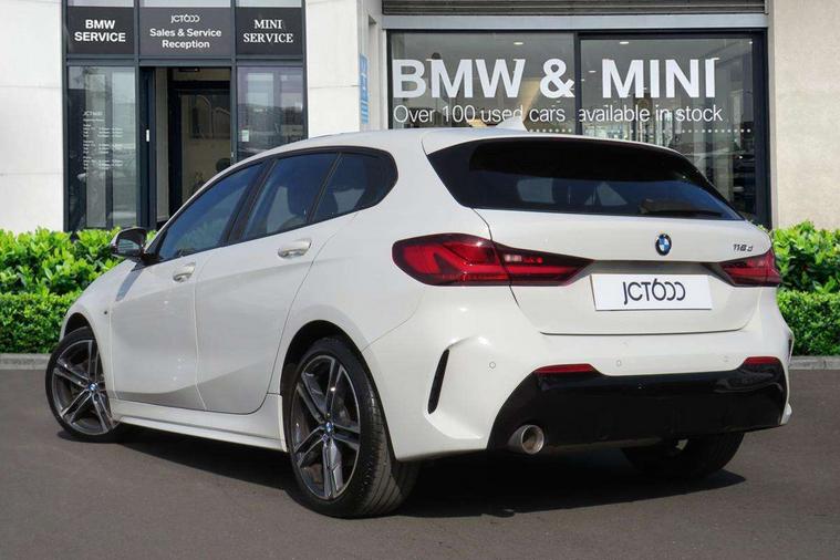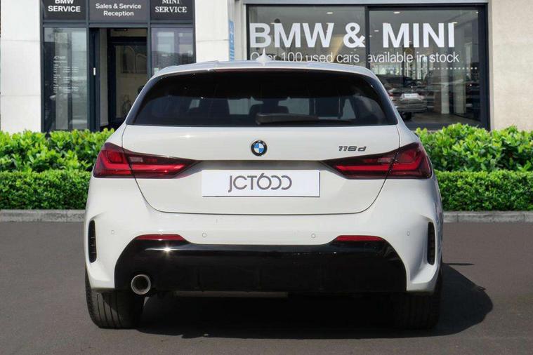 Active guard plus, Attentiveness assist, BMW ConnectedDrive online services, BMW Teleservices, Check Control warning system for monitoring of lights and door/luggage compartment open warning, Cruise control with speed limiter, Eco pro mode, Front axle single joint with specific axle kinematics to minimise drive influences on steering + provide increased rigidity agile driving behaviour, Integrated owners handbook, Lane departure warning system, Oil sensor for level and grade, On board computer, Optimum shift indicator, Personal Profile, Pull away assistant, Rigidly mounted rear subframe - Multi link construction with separate spring / damper configuration and excellent driving characteristics, Speed limit Info including no-overtaking indicator, AdBlue tank, Aluminium lightweight construction, Anti roll bar front and rear, Balancer shaft, Diesel particulate filter, Drive Performance Control, Electronic differential lock, M sport suspension, Single turbo charger with variable vane geometry, Twin tube gas filled shock absorbers with degressive characteristic curve, DAB Digital radio, Auto dimming rear view mirror, Automatic headlight beam throw control, Automatic windscreen wipers and automatic headlight, Body colour door handles, Body colour mirror caps, Body colour roof trims, Chrome 'M' logo side designation, Chrome exhaust twin tailpipes round 90mm in left, Chrome kidney grille frame with Satin Aluminium struts, Direction indicator side lights in exterior mirrors, Electrically adjustable exterior mirror with mirror adjustment switch on drivers armrest and aspheric on driver side, convex on passenger side, Fading support, Folding side mirrors with auto dimming/folding wing mirrors with auto dimming, Follow me home headlights, Front and rear bumper system with replaceable deformation elements, Front and rear electric windows with open and close fingertip control, anti trap facility and comfort closing, Front door sill finishers in black plastic with M designation in metallic look, Green tinted heat protection glazing, High gloss shadowline window frame, Recess cover mirror frames and B/C pillar embelisher trim, High level third brake light, Integrated front windscreen with washer jets, LED daytime running lights, LED eyebrow turn indicators, LED front fog lights, Lightweight engineering, Matt black air guide grilles, Matt black wheel arch trim, Model designation on electric bootlid, Nearside reverse light in rear light cluster, Preparation for high beam assistant, Rear fog lights, Rear side wing doors, Rear window wiper, Shark fin antenna, Trailer stabilisation logic, Visible VIN plate, Welcome lighting, 12V power socket in front centre console with blanking plug, 3 rear seat head restraints, 3 seat bench in 2nd row, 3 spoke sports leather steering wheel with black leather and stitching, pearl chrome decorative finish, specific M Badge, Anthracite headlining, Black boot net with lashing eyes, Cargo function on 2nd seat row, Child seat ISOFIX attachment for two outer rear seats and front passenger seat with anchorage points, Conditioned based service, Driver and front passenger backrest net on rear, Driver and front passenger seat heating, Driver side folding compartment in instrument panel, Folding rear clothes hook, Four grab handles integrated in roof lining, Front and rear door pockets with bottle holders, Front and rear side armrest integrated into door trim, Front armrest, Front sports seats, Glove compartment, Height adjustable front head restraints, Luggage compartment for bag hooks on left and right, foldable luggage compartment liner and four lashing eyelets, Manual adjust steering wheel, Multi-function controls for steering wheel, Single front passenger seat, Storage compartment in centre console, Storage compartment in luggage compartment, Stowage of the parcel shelf in luggage compartment trim, Sun visors with vanity mirrors and insert tab, Two front centre console cupholders, Two zone automatic air conditioning, Type C two USB ports in rear centre console, Velour floor mats, Additional interior lighting pack - 1 Series, BMW live cockpit professional pack- 1 Series, Connected pack professional - 1 Series, Interior lights pack - 1 Series, M Sport exterior styling aerodynamics pack - 1 Series, 2 tone horn, 3 point seatbelts on all seats, front pyrotechnic belt tensioners, stopper and belt force limiters, rear coded belt buckles, Airbags - Front driver/passenger, front and rear curtain head protection, front side, manual deactivation of front passenger airbag, Anti lock braking system (ABS) with brake assist, BMW emergency call, Brake drying, Braking readiness, Child proof locking system in rear door, City braking function, Comfort modes, Cornering brake control, Crash sensor activating of airbags, Unlocking doors, hazard warning lights, interior light, safety battery terminal, Driver and front passenger seat belt security check, Dynamic stability control + (DSC+), Dynamic Traction Control - DTC, Electrically operated hand brake including automatic hold function, Front and rear disc brakes, Seatbelt warning, Side impact protection, Tyre pressure monitoring system, Warning triangle and first aid kit, Central locking switch for all doors, fuel filler cap and luggage compartment, Deadlocking function system to all doors, Drive away locking system on all doors and luggage compartment with de-activated in iDrive settings, Incorrect fuel protection system, Locking wheel bolts, Remote control with integrated key with High-gloss Black inlay and M designation and 1 button for open/ close lock, window, open luggage compartment, Start/stop button illuminated in centre console with keyless engine start and auto start stop deactivation button, Thatcham Cat.1 alarm and immobiliser, Wheel slip limitation close to the actuator (ARB), Contrast stitching on instrument panel, Electrically powered 12V compressor, Reduced rolling resistance tyres,