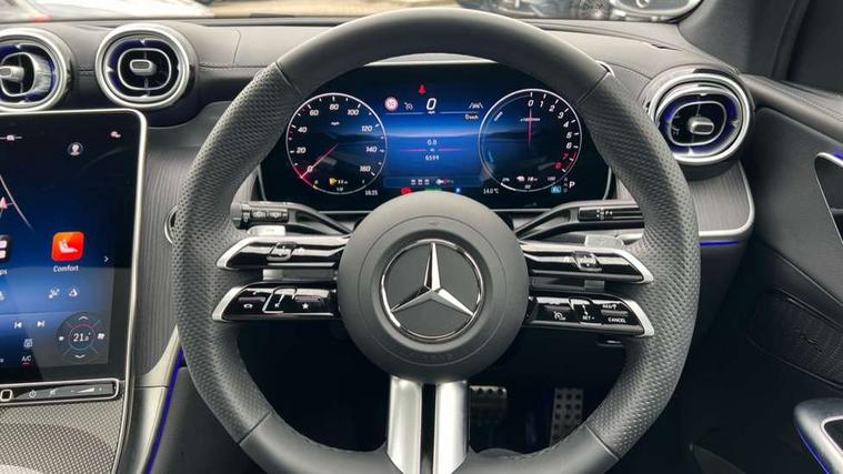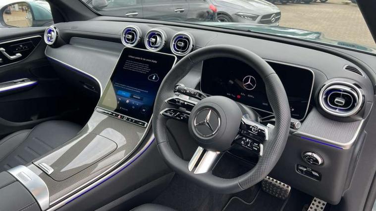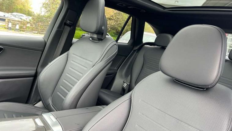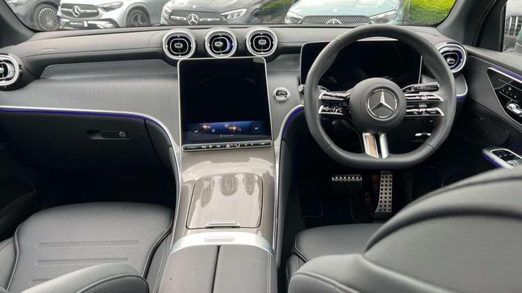 11.9" high resolution multimedia colour display, 12.3" Digital individually configurable instrument display, Acoustic presence indicator, Active lane keeping assist, Attention assist, Blind spot assist, Bluetooth interface for hands free telephone, Collision prevention assist plus, Cruise control with speedtronic variable speed limiter, Dashcam - front camera for video recording, Direct steer speed sensitive steering, DYNAMIC SELECT with a choice of driving modes (ECO, Comfort, Sport, Sport+ and Individual), eCall emergency call system, ECO start/stop function, Fingerprint scanner, Fluorescent jacket for driver, Hard disc navigation, Instrument display in miles with English lettering, MBUX augmented reality for navigation, MBUX navigation premium, MBUX voice control activated by keywords "Hey Mercedes", Mercedes me connect, Outside temperature display, Remote and charging services plus, Remote boot release, Road sign recognition system, Service indicator (ASSYST), Smartphone integration, Status display for rear seat belts in instrument cluster, Traffic sign assist, Trip computer, Wireless charging, 1 x type 2 and 3 phase 4m straight wallbox cable, 49 litre fuel tank, 4MATIC permanent four wheel drive, 7.4 kW monophase on board charger, 9G TRONIC plus automatic transmission, Alternating current charging system (AC charging), Comfort suspension, Petrol Particulate Filter (PPF), Self levelling suspension, DAB digital radio tuner, MBUX extended functions, Mercedes benz sound system, Pre installation for Mercedes Benz Link, Adaptive brake lights, Adaptive high beam assist plus, Aluminium look running boards with rubber studs, Aluminium roof rails, AMG bodystyling front apron, rear apron and side skirts, AMG Line exterior, Auto headlights, Body colour bumpers, Body colour door mirrors, Digital light LED headlights, Electrically adjustable door mirrors, Front and rear electric windows, Headlight washers, Heat insulating dark tinted glass, Heated rear window, High level LED brake light, Integrated LED daytime running lights, LED indicator lights, LED rear fog lights, LED tail lamp, Motor way mode function and locator lighting, Noise acoustic glass, Radiator grille with Mercedes Benz pattern and integreated Mercedes star and louvre in dark grey matt with chrome inlay and black frame, Rain sensor windscreen wipers, Range adjustable headlights, Rear side wing doors, Rear wiper, Transparent Bonnet, Two chrome plated tailpipe trim elements, Variable front intermittent wipers, Welcome and follow-me home light functionality, Wider wheel arch for AMG wheels, 3 seat bench in 2nd row, 40:20:40 split folding rear seats, Ambient lighting premium, AMG line interior, Artico man-made leather upholstery, Audio and onboard settings control on multifunction steering wheel, Automatic child seat recognition sensor, Black fabric roof lining, Black floor mats with AMG lettering, Double cup holder in centre console, Easy-pack removable load compartment cover, Electrically height/reach adjustable steering column, Front centre armrest with stowage compartment, Front head restraints, Galvanised steering wheel gearshift paddles, Heated front seats, Illuminated door sill panels with Mercedes Benz lettering, Illuminated glove compartment, Instrument panel and beltlines in ARTICO manmade leather in nappa look, Multifunction sports steering wheel in nappa leather, Rear centre headrest, Rear head restraints, Rear top tether child seat ISOFIX attachment, Single front passenger seat, Sports pedals with stainless steel surfaces and rubber studs, Sports seats, Sun visors, THERMATIC 2 zone automatic climate control, Anti theft protection package - GLC, Boot comfort package - GLC, Exterior chrome package - GLC, Interior chrome package - GLC, Interior lighting pack - GLC, Keyless-Go comfort package - GLC, Memory pack - GLC, Mirror pack - GLC, Parking package with 360 degree camera - GLC, Seat comfort package - GLC, Stowage space package - GLC 300e/300de, USB Plus Pack - GLC, 3 rear 3 point seatbelts, Active braking assist, Anti-lock braking system (ABS), ASR traction control, Automatic front passenger airbag deactivation, Black seat belts, Brake calipers with Mercedes-Benz lettering + perforated brake discs, Child proof door locks, Dual-stage airbags - driver and front passenger, driver knee bag and window bags for driver, front passenger and rear passengers, Electronic parking brake, Electronic stability programme (ESP) with curve dynamic assist and cross wind assist, Front and rear seatbelt reminder, Front passenger seat occupancy sensor, Front seatbelt pretensioners, Hill start assist, Tyre pressure monitoring system, Warning triangle and first aid kit, Automatic door locking, Guard 360 degree vehicle protection plus, Interior protection/immobiliser, Remote central locking, Centre console in metal structure finish, Metal structure trim, 20" AMG 5 spoke aerodynamically optimised light alloy wheels in painted black with high sheen finish, Summer tyres, TIREFIT with tyre inflation compressor,