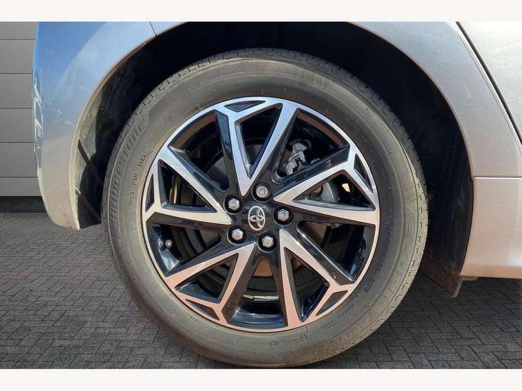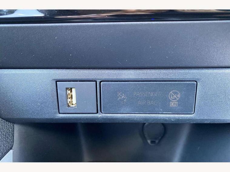 Adaptive cruise control, Adjustable speed limit with speed warning, Bluetooth connectivity, Colour binocular inspired displays with digital speedometer, E-call, Electric power steering, Hybrid energy display, Multi information display switches on steering wheel, Reversing camera, Smartphone integration with Apple CarPlay and Android auto, Tailgate, Voice recognition, Vehicle Stability Control (VSC), 4 speakers, 8" Multimedia display touch screen, USB connection, Acoustic windscreen glass, Auto windscreen wipers, Automatic headlights, Body coloured door mirrors, Electric adjustable heated door mirrors, Follow me home headlights, Front auto power windows with anti jam protection, Full LED rear lights, LED daytime running lights, LED front fog lights, LED front light guide, LED Headlights, LED High mounted stop lamp, LED Indicators, LED rear light guide, Manual headlight levelling, Painted chequered front grille, Rain sensor, Rear auto power windows with anti jam protection, Rear privacy glass, Rear side wing doors, Rear spoiler, Rear wiper, Shark fin antenna, Turning signal integrated indicators in door mirrors, Variable front intermittent wipers, 3 adjustable rear headrests, 3 seat bench in 2nd row, 3 spoke leather steering wheel, 60/40 split folding rear seat, Active headrests, Adjustable boot height, Auto air conditioning, Coat hooks in rear grab handles, Cup holders (2 front & door), Data Communication Module (DCM) connected services, Fabric upholstery, Front armrest, Glovebox, Grey roof lining, Height adjustable driver's seat, Isofix seat fixing, Leather gearshift, Pollen filter, Shopping bag hooks, Single front passenger seat, Tilt/telescopic steering column, 3 point seatbelts on all rear seats, ABS+EBD+Brake assist, Electronic parking brake, Emergency brake light system (EBS), Front passenger airbag on/off switch, Front seatbelt reminder, Hill start assist control (HAC), Rear child proof door locks, Rear seat belt reminder, Supplemental Restraint System (SRS) 8 airbags: Driver & passenger's airbags, dual side curtain airbags, side impact airbags, front centre airbag, Toyota Safety Sense 2, Precollison + Night time Pedestrian & Cyclist Detection, Lane Trace Assist, Auto High Beam, Intelligent ACC & Road Sign Assist, Tyre pressure warning system, 2x Master key, Alarm/immobiliser, Remote powered central double locking doors, Soft touch instrument panel, Space saver spare wheel,