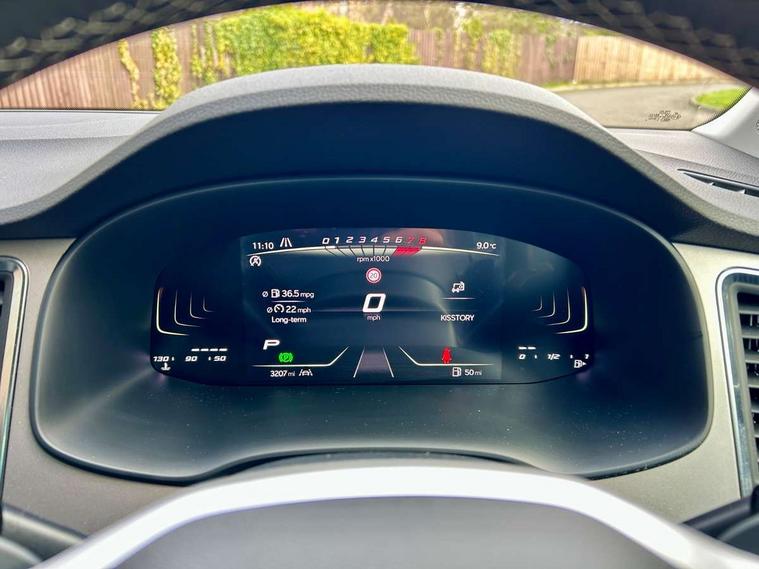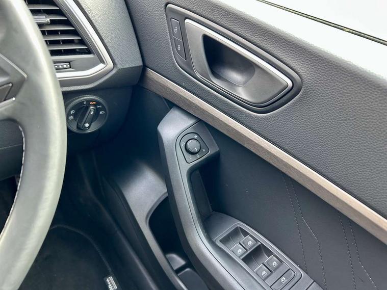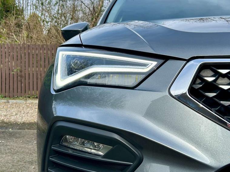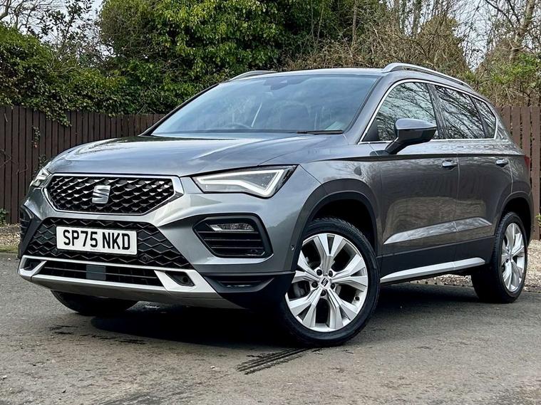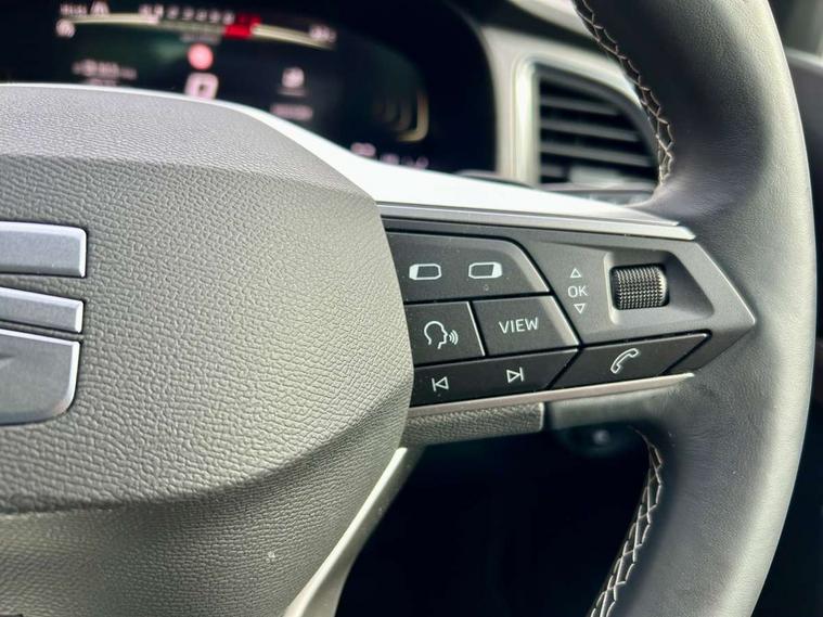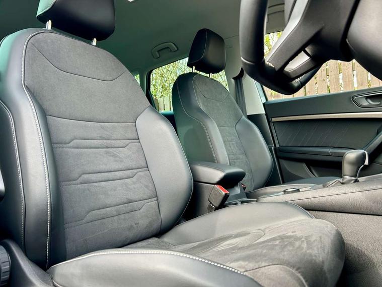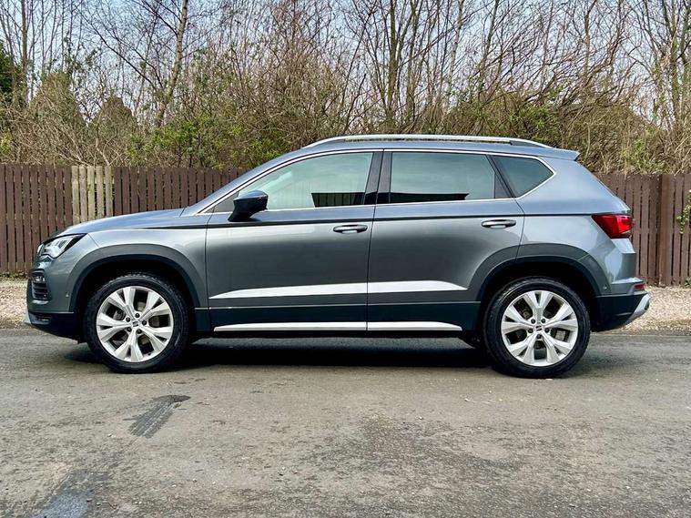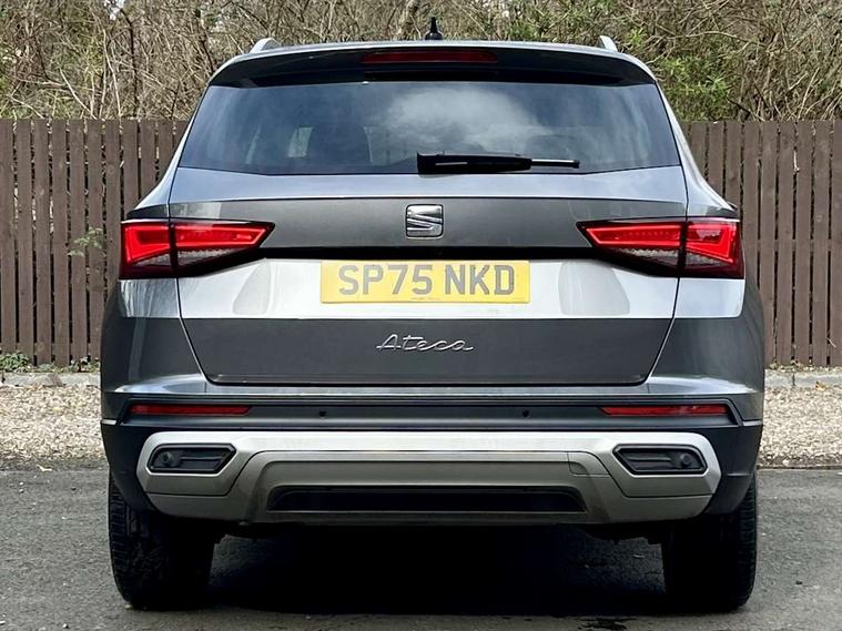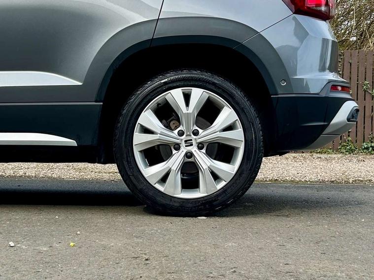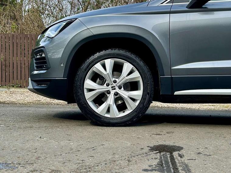 8" Digital cockpit, Colour multi-function on board computer display, E-call, Electric tailgate, Outside temperature gauge, Progressive power assisted steering, Rear view camera, SEAT drive profile with driving experience button - Normal, Sport, Eco and Individual mode, gearshift, steering and throttle response, Self parking functionality (includes front and rear parking sensors), Start/stop system, Trip computer, wired and wireless full link smartphone integration, Wireless phone charger, Steering wheel mounted audio/phone controls, Black wheel arch surrounds, Body colour bumpers, Chrome front grille frame, Chrome roof rails, Chrome side window trim, Dark tinted rear windows, Daytime running lights, Door mirrors with welcome light silhouette, Dynamic headlight range control with self adjusting whilst driving, Electric adjustable/heated/folding door mirrors, Front and rear electric windows, Front grille hot stamping, Full LED headlamps with lens and LED front fog lamps with cornering function, Heat reflecting windscreen, Illuminated aluminium front door sill, LED 3rd brake light, LED rear tail lights with dynamic indicators, Rear exhaust tailpipe, Rear fog lights, Rear side wing doors, Rear wash/wipe, Reflex silver side mouldings, Variable front intermittent wipers, 12V socket in front, 3 seat bench in 2nd row, 60/40 split folding rear seat, Dinamica upholstery with front comfort seats, Drawer under right front seat, Dual zone climate control, Front and rear head restraints, Front centre armrest, Front seat back storage pockets, Height adjustable driver and passenger seat with lumbar adjustment, ISOFIX points in outer rear seats with top tether anchorage points, Leather sports steering wheel and gear knob, Rear armrest and easy back seat release mechanism from boot, Single front passenger seat, Steering wheel mounted gearshift paddles, Convenience pack - Ateca, Interior lighting pack - Ateca, Navigation system pack with DAB - Ateca, Safety and driving pack (M) - Ateca, Safety and driving pack with attention and drowsiness assist - Ateca, 3x3 point rear seatbelts, ABS, Traction control system (TCS), Electronic stability control (ESC) and Electronic differential lock system (XDS), Airbags - Driver and front passenger airbag with deactivation, front side, two curtain and driver's knee airbags, Electric parking brake with auto hold function, Front and rear seatbelt reminder, Hill hold control, Manual rear child locks, Single tone horn, Tiredness recognition system, Tyre pressure monitoring system, Alarm, Keyless entry, Locking wheel bolts, Remote central locking, Chrome interior detailing, 18" Brillaint silver alloy wheels,