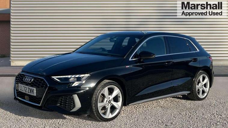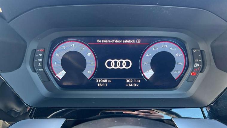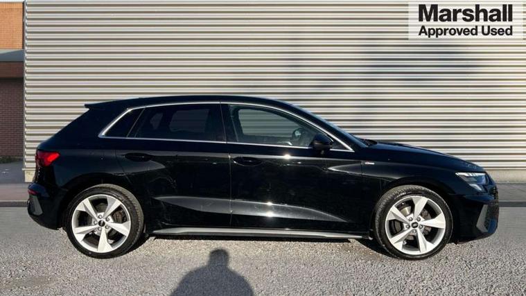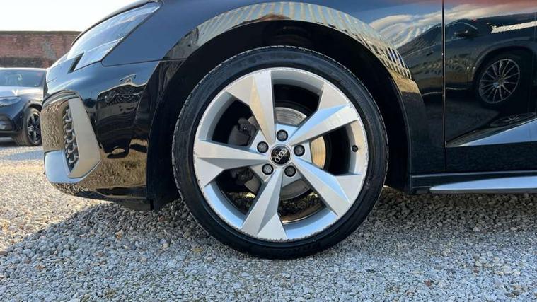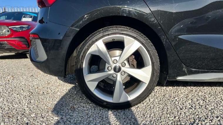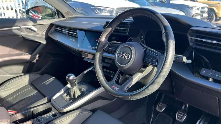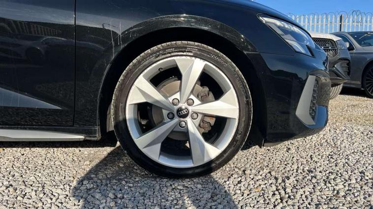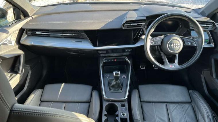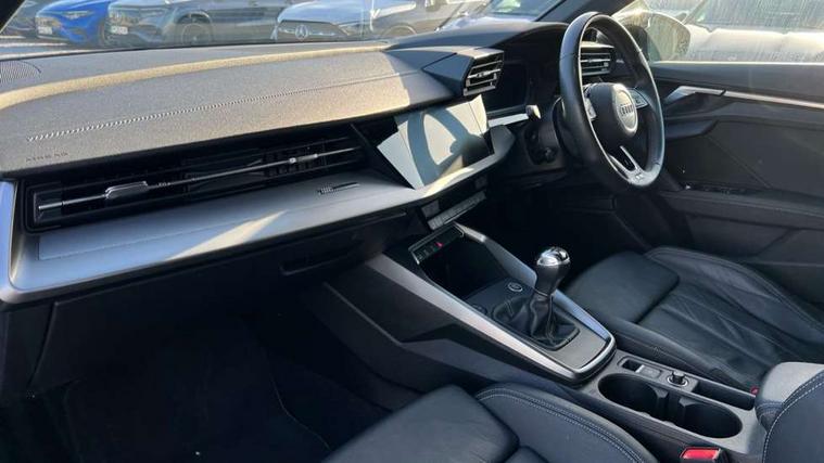 Audi drive select (Auto, Comfort, Dynamic, Efficiency and Individual), Audi smartphone interface, Audi Virtual Cockpit - 10.25" digital and colour instrument cluster, Automatic start/stop system with recuperation, Bluetooth interface, Collision avoidance assistant, Cruise control, e-Call (emergency call), Electromechanical power speed sensitive steering, Lane departure warning system, MMI Navigation Plus with high resolution 10.1" colour touch screen display, Rear parking sensors, Service indicator, Trip computer, Voice control system with natural language interaction, 2xUSB-C connection with data and charging functions, 6 passive loudspeakers, DAB Digital radio, 3rd brake light, Acoustic glass windscreen, Aluminium window trim, Auto dimming frameless rear view mirror, Electrically adjustable/heated/folding/auto dimming door mirrors with integrated LED indications + kerb view function for passenger side, Front electric windows, Illuminated aluminium inserts front door sills with S logo, LED daytime running lights, LED headlights with LED rear lights and dynamic rear indicators, Light and rain sensors, Privacy glass - dark tinted rear window, rear door and side windows, Rear electric windows, Rear side air outlets in grained matt black, Rear side wing doors, Rear wiper, S line bumpers, S roof spoiler, 12V socket and storage compartment in front centre console, 3 seat bench in 2nd row, 40/20/40 split folding rear seat bench with cupholder, Black cloth headlining, Dual zone electronic climate control, Front and rear centre armrest in leather, Front and rear headrests, Front/rear floor mats, Height and reach adjustable steering wheel, Illuminated vanity mirror, Interior lighting - glove compartment light and right hand side, Luggage compartment floor covering, Manual boot compartment lid, Manually adjustable front seats, Seat side bolsters, Single front passenger seat, Stainless steel pedals and front footrest in black, Twin leather upholstery with front sports seats S embossed logo, Aluminium interior elements pack - A3 Sportback, LED interior lighting pack - A3 Sportback, S line styling pack - A3 Sportback, 3x3 point rear seat belts, Audi pre sense front, Driver and front passenger airbag with passenger airbag deactivation, Electronic Stabilisation Control (ESC) including ABS, ASR and EDL, First aid kit with warning triangle and 2 safety vests, Front side airbags with head airbags and interaction airbag, Pre-sense front with pedestrian and cyclist detection, Seatbelt monitoring, Tyre pressure loss indicator, Anti theft alarm, Anti-theft wheel bolts, Electronically operated child lock, Immobiliser, Remote control central locking, Accent surfaces in the dashboard and centre console in platinum grey silk effect paint finish, Dark spectrum aluminium inlays,