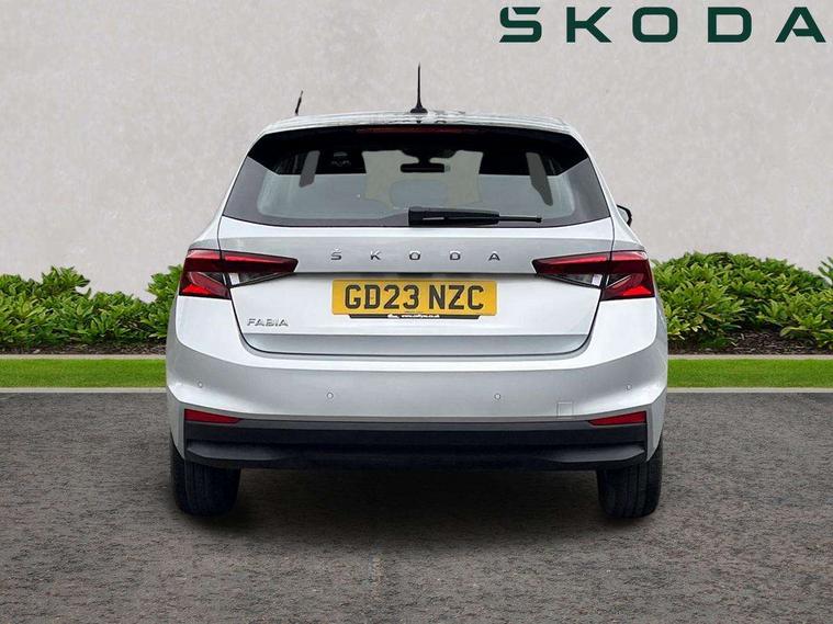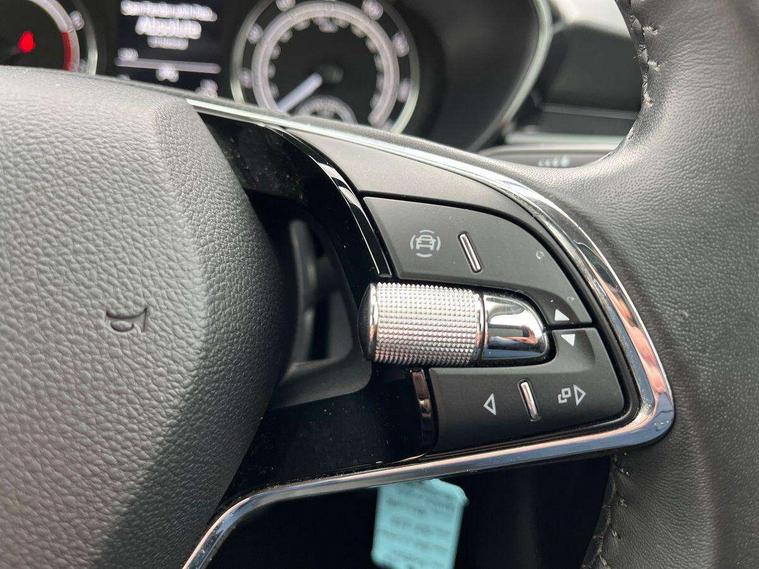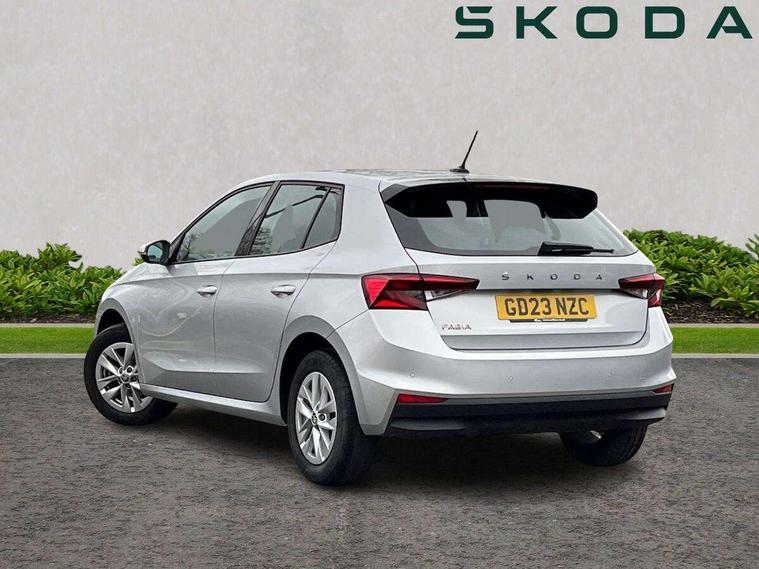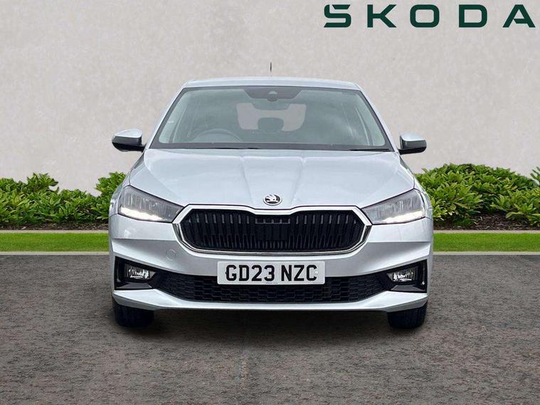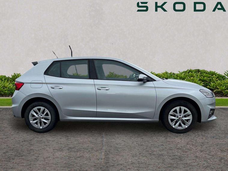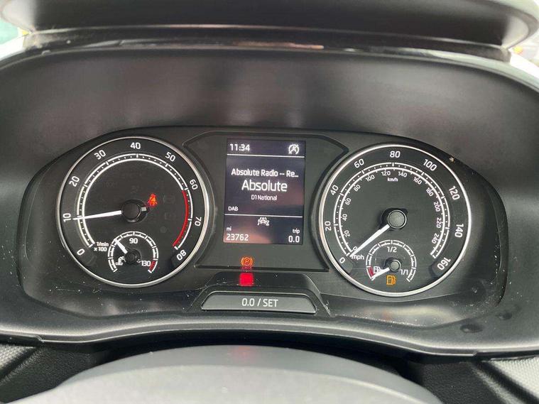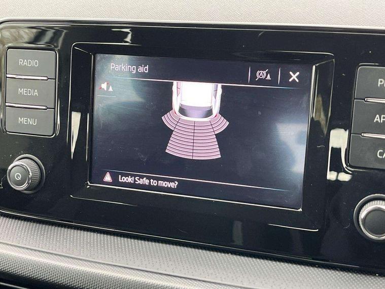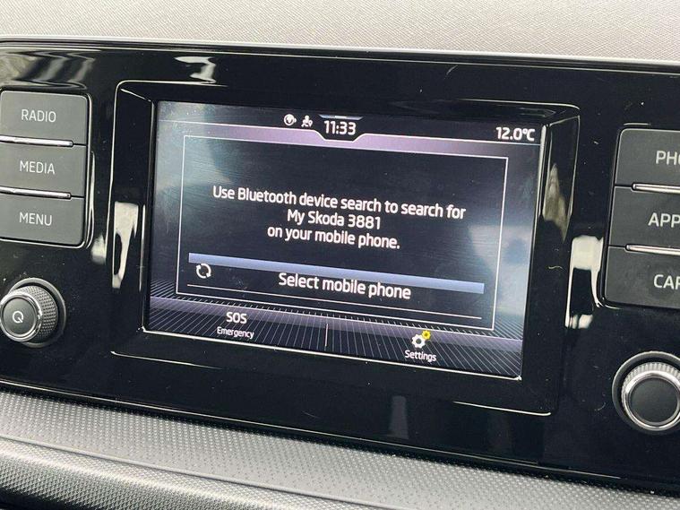 Bluetooth connection, Driver alert system - DAS, Electromechanical power steering, Exterior temperature gauge, Lane assist including road edge detection, Multifunction trip computer in black and white, Service interval indicator, Speed limiter, 2x USB-C in the front (for data transmission and charging), 4 speakers in front, Auxiliary socket for external MP3 player, DAB digital radio reception, Radio Swing with 6.5" colour display, Basic LED Headlights, Basic rear lights, Body colour door mirrors, Body coloured bumpers, Dimming rear view mirror with black frame, Door mirror integrated indicators, Electrically adjustable and heated door mirrors, Electrically adjustable front windows with function auto up/down, Front fog lights, Front window wiper intermittent control, Headlight range control - Automatic, Ice scraper in fuel cap, LED daytime running lights with coming and leaving home feature, Mechanical adjustable rear windows, Rain sensor, Rear LED fog light, Rear side wing doors, Rear window wiper with washing nozzles, Roof mounted spoiler, SKODA tailgate lettering in chrome, Third brake light, 2 reading lights in front and 2 reading lights in rear, 2 spoke leather multifunction steering wheel, 3 rear headrests, Backrest split and folding, Central console with fixed cup holder and storage box, Chrome handbrake release button, Fabric upholstery, Gearshift knob/handle in leather, Grain satin black interior door handles, Hand brake lever handle in leather, Height adjustable front headrests, Height adjustable front seats, Height adjustable steering wheel, ISOFIX and TopTether anchorage points to the outer rear seats, ISOFIX and TopTether on the front passenger seat, Luggage compartment lighting, Manual air conditioning, Manually adjustable lumbar support in front seats, Pollen filter, Rear seat bench unsplit, Single front passenger seat, Storm grey headlining, Sun visors with mirror and airbag label on passenger side, Ticket holder, 3-point height adjustable front seats belts with pretensioner and force limiter, Automatic warning lights in case of crash, Driver and passengers airbag with switch off function, e-Call+, ESC including ABS, MSR, ASR, EDS, HBA and XDS, Front and rear seat belt warning, FRONT ASSIST (AEB City and AEB Inter Urban), Front side airbags, Head airbags, One tone horn, Pedestrian protection, Three rear 3-points safety seat belts with pretensioner and force limiter including stop function for outer rear seat belts, Tyre pressure monitoring system, Anti-theft alarm system including immobiliser, interior monitoring, backup horn, and towing protection, Central locking with radio remote control, interior controls, SAFE function and 2 foldable keys, Black painted air vents, Glossy black decorative trim, Grain satin black central console cover, Grain satin black lower decorative trim, Satin black door and side trim panel in front, Anti-theft wheel bolts protection, Super-low rolling resistance tyres,