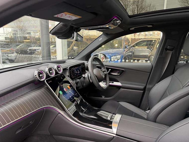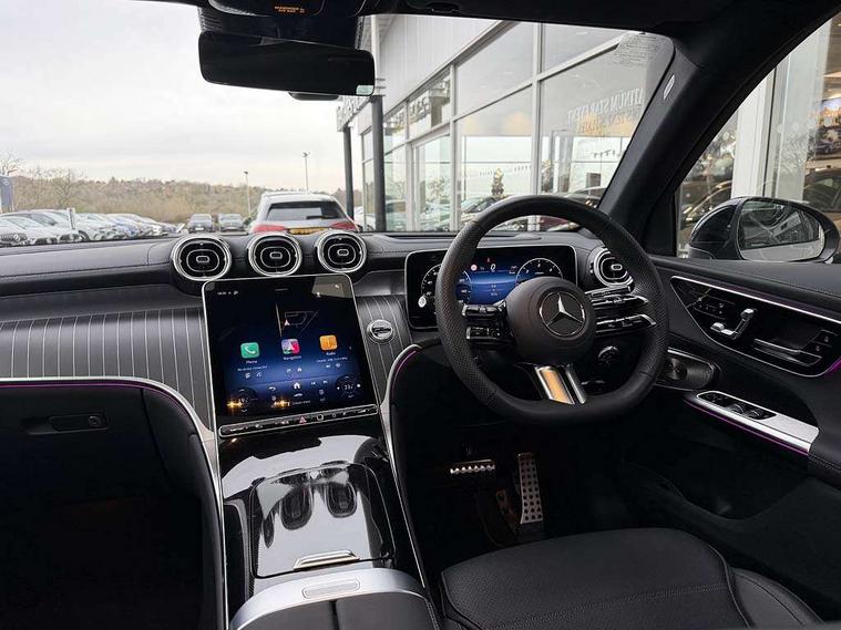 11.9" high resolution multimedia colour display, 12.3" Digital individually configurable instrument display, Acoustic presence indicator, Active lane keeping assist, Attention assist, Blind spot assist, Bluetooth interface for hands free telephone, Collision prevention assist plus, Direct steer speed sensitive steering, DYNAMIC SELECT with a choice of driving modes (ECO, Comfort, Sport and Individual), eCall emergency call system, ECO start/stop function, Fingerprint scanner, Fluorescent jacket for driver, Hard disc navigation, Head up Display, Instrument display in miles with English lettering, MBUX augmented reality for navigation, MBUX navigation premium, MBUX voice control activated by keywords "Hey Mercedes", Mercedes me connect, Multi function trip computer, Outside temperature display, Remote boot release, Remote services plus, Road sign recognition system, Service indicator (ASSYST), Smartphone integration, Status display for rear seat belts in instrument cluster, Tailgate, Traffic sign assist, Wireless charging system for mobile devices in the front, 48V Mild hybrid technology, 4MATIC permanent four wheel drive, 62 litre fuel tank, 9G TRONIC plus automatic transmission, Diesel particulate filter, Residual engine heat utilisation, Burmester 3D surround sound system, DAB digital radio tuner, MBUX extended functions, Pre installation for Mercedes Benz Link, Sound personalisation, Adaptive brake lights, Adaptive high beam assist plus, Aluminium look running boards with rubber studs, AMG bodystyling front apron, rear apron and side skirts, AMG Line exterior, Auto headlights, Black roof rails, Body colour bumpers, Body colour door mirrors, Digital light LED headlights, Electric panoramic glass sunroof, Electrically adjustable door mirrors, Front and rear electric windows, Headlight washers, Heat and noise insulating acoustic glass, Heat insulating dark tinted glass, Heated rear window, High level LED brake light, Integrated LED daytime running lights, LED indicator lights, LED rear fog lights, LED tail lamp, Motor way mode function and locator lighting, Radiator grille with Mercedes Benz pattern and integreated Mercedes star and louvre in dark grey matt with chrome inlay and black frame, Rain sensor windscreen wipers, Range adjustable headlights, Rear side wing doors, Rear wiper, Transparent Bonnet, Two chrome plated tailpipe trim elements, Variable front intermittent wipers, Welcome and follow-me home light functionality, Wheel arch liners in the vehicle colour, 3 seat bench in 2nd row, 40:20:40 split folding rear seats, Ambient lighting premium with projection of brand logo, AMG floor mats, AMG line interior, Artico man-made leather upholstery, Audio and onboard settings control on multifunction steering wheel, Automatic child seat recognition sensor, Black fabric roof lining, Comfort seats, Double cup holder in centre console, Easy-pack removable load compartment cover, Electrically height/reach adjustable steering column, Front centre armrest with stowage compartment, Front head restraints, Galvanised steering wheel gearshift paddles, Heated front seats, Heated steering wheel, Illuminated door sill panels with Mercedes Benz lettering, Illuminated glove compartment, Instrument panel and beltlines in ARTICO manmade leather in nappa look, Multicontour and climatised front seats, Multifunction sports steering wheel in nappa leather, Partition net, Rear centre headrest, Rear head restraints, Rear top tether child seat ISOFIX attachment, Single front passenger seat, Sports pedals with stainless steel surfaces and rubber studs, Sun visors, THERMATIC automatic climate control, Anti theft protection package - GLC, Boot comfort package - GLC, Easy tailgate pack - GLC, Exterior chrome package - GLC, Interior chrome package - GLC, Interior lighting pack - GLC, Keyless-Go comfort package - GLC, Memory pack - GLC, Mirror pack - GLC, Night package - GLC Urban Edition, Parking package with 360 degree camera - GLC, Stowage space package - GLC, USB Plus Pack - GLC, 3 rear 3 point seatbelts, Anti-lock braking system (ABS), ASR traction control, Automatic front passenger airbag deactivation, Black seat belts, Brake calipers with Mercedes-Benz lettering + perforated brake discs, Braking system with larger brake discs on the front axle, Child proof door locks, Dual-stage airbags - driver and front passenger, driver knee bag and window bags for driver, front passenger and rear passengers, Electronic parking brake, Electronic stability programme (ESP) with curve dynamic assist and cross wind assist, Front and rear seatbelt reminder, Front passenger seat occupancy sensor, Front seatbelt pretensioners, Hill start assist, Tyre pressure monitoring system, Warning triangle and first aid kit, Automatic door locking, Guard 360 degree vehicle protection plus, Interior protection/immobiliser, Remote central locking, Black open pore aluminium lines wood trim with centre console in black fine structure, 20" AMG multi spoke light alloy wheels in painted black with high sheen finish, Summer tyres, TIREFIT with tyre inflation compressor,
