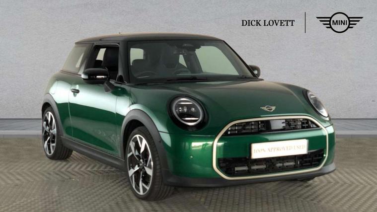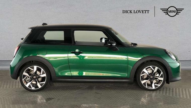 Central toggle bar, Circular OLED Screen, Compatible mobile phone bluetooth with audio streaming, Cruise control, Digital instrument cluster, Electro-mechanical speed dependant steering assistance, Emergency call service, Gaming controller with intelligent personal assistant voice update, MINI Experience Modes, Mini navigation system, On board computer, Service interval indicator, Tailgate, 7 speed steptronic transmission with double clutch, DAB Digital radio, Personal eSim, Rear USB charger, Auto headlights, Electric adjustable heated door mirrors, Electric front windows, Heated rear window, Heated windscreen washer jets, LED 3rd brake light, LED daytime running lights, LED Headlights, LED indicator lights, LED rear lights, Logos in Vibrant Silver, Rain sensor window wipers, Rear fog lights, Rear window wiper, Vibrant silver grille surround, 2 seat bench in second row, 2 zone automatic air conditioning, 60/40 rear seat bench, Ambient lighting, Cupholders, Dark headliner, Floor mats, Front and rear head restraints, Front compact armrest, Heated steering wheel, Height adjustable passenger seat, Lidded storage box in grey knit, Luggage compartment lighting, Single front passenger seat, Sport Vescin Steering Wheel black with vibrant silver accents, Sunvisors with vanity mirrors, Vescin synthetic leather upholstery includes dash knit in beige with grey accents, Driving assistant pack - Cooper Hatchback, Park assistant pack - Cooper Hatchback, 3 point seatbelts on all four seats, 6 Airbags - front, side, head and seat belt tensioners, Anti-lock braking system (ABS), DSC - Dynamic Stability Control, Electronic parking brake, Front and rear disc brakes, Front ISOFIX (iSize), Front passenger airbag deactivation, Traction control, Tyre pressure monitoring system, Alarm, Immobiliser, Remote central locking, Blue decorative dash strap, Tyre repair kit,