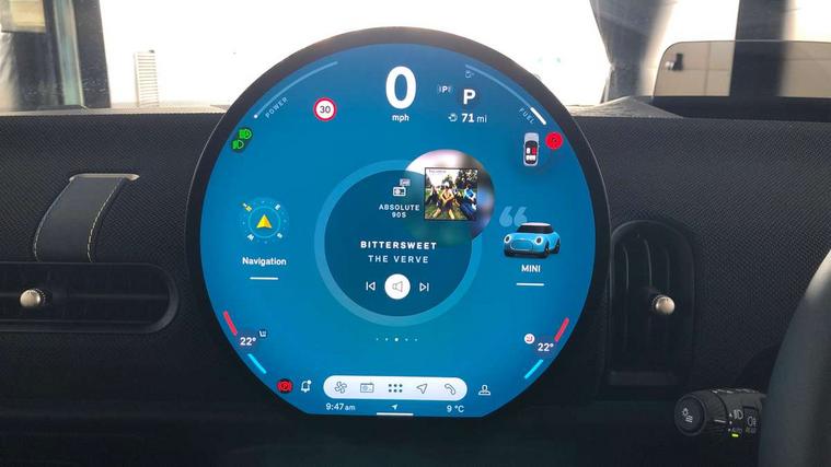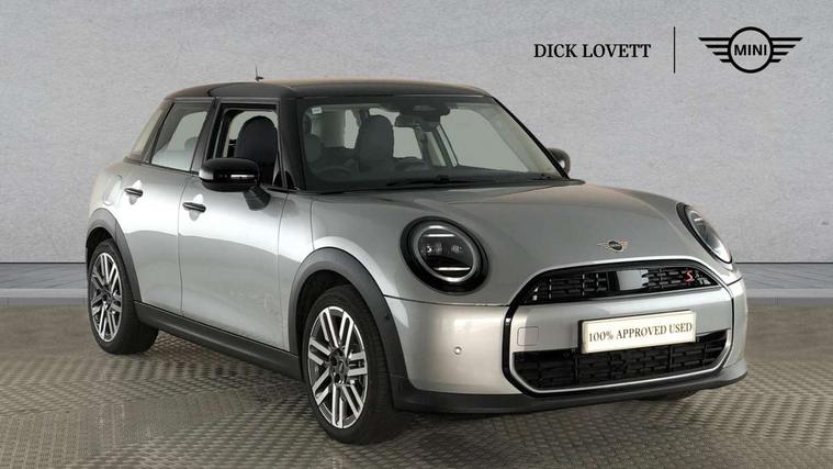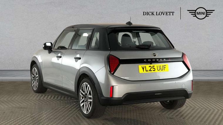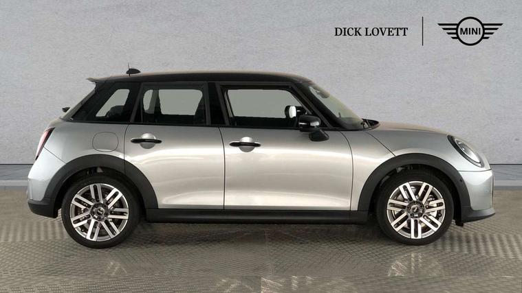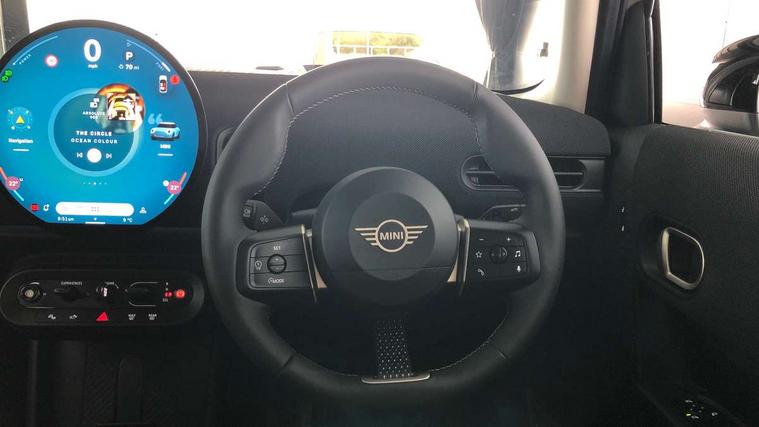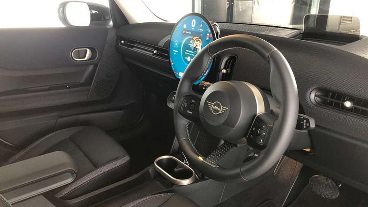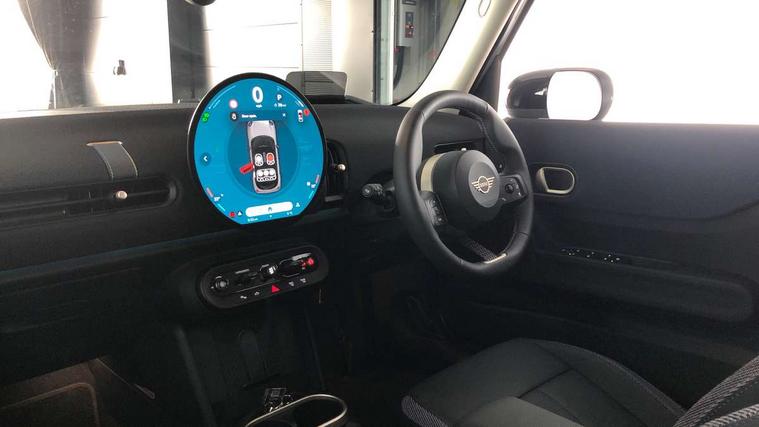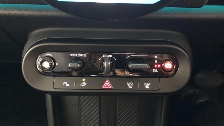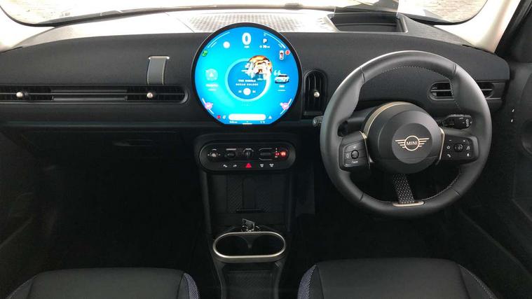 Central toggle bar, Circular OLED Screen, Compatible mobile phone bluetooth with audio streaming, Cruise control, Digital instrument cluster, Electro-mechanical speed dependant steering assistance, Emergency call service, Gaming controller with intelligent personal assistant voice update, MINI Experience Modes, Mini navigation system, On board computer, Service interval indicator, Tailgate, 7 speed steptronic transmission with double clutch, DAB Digital radio, Front USB charger, Personal eSim, Rear USB charger, Adaptable light signatures, Auto headlights, Electric adjustable heated door mirrors, Electric front+rear windows, Heated rear window, Heated windscreen washer jets, LED 3rd brake light, LED daytime running lights, LED indicator lights, LED rear lights, Rain sensor window wipers, Rear fog lights, Rear side wing doors, Rear window wiper, 2 zone automatic air conditioning, 3 seat bench in 2nd row, 60/40 rear seat bench, Ambient lighting, Cupholders, Floor mats, Front and rear head restraints, Front compact armrest, Heated steering wheel, Height adjustable passenger seat, Light headliner, Luggage compartment lighting, Single front passenger seat, Sport Vescin Steering Wheel black with vibrant silver accents, Sunvisors with vanity mirrors, Vescin/Cloth upholstery includes dash knit in black with blue accents, Driving assistant pack - Cooper Hatchback, Level 1 pack - Mini Hatchback, Park assistant pack - Cooper Hatchback, 3 point seatbelts on all five seats, 6 Airbags - front, side, head and seat belt tensioners, Anti-lock braking system (ABS), Child locks on rear doors, DSC - Dynamic Stability Control, Electronic parking brake, Front and rear disc brakes, Front ISOFIX (iSize), Front passenger airbag deactivation, Traction control, Tyre pressure monitoring system, Alarm, Immobiliser, Remote central locking, Tyre repair kit,