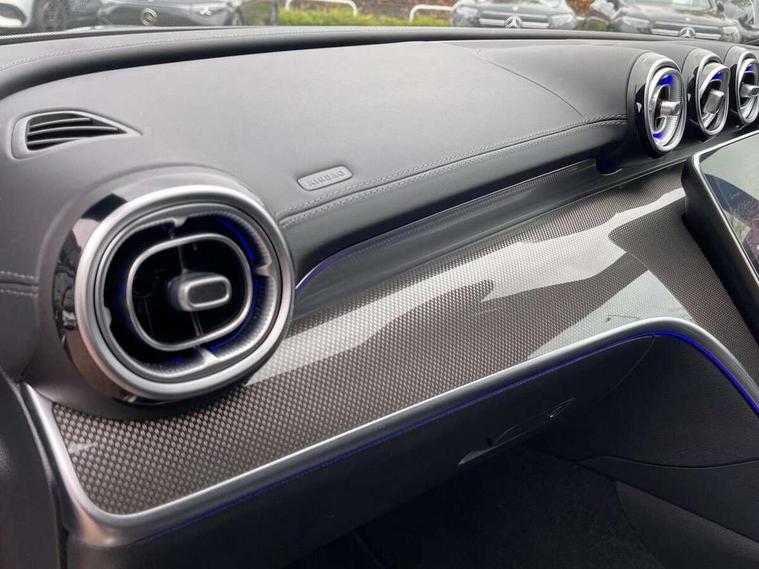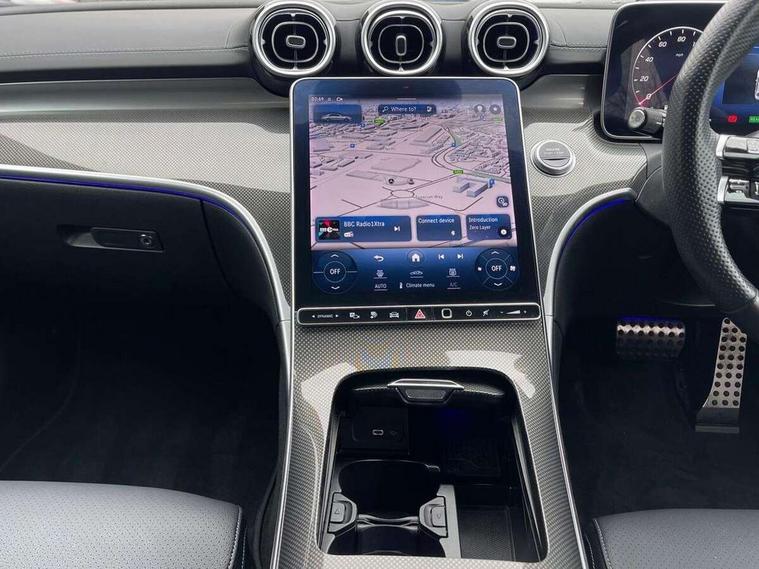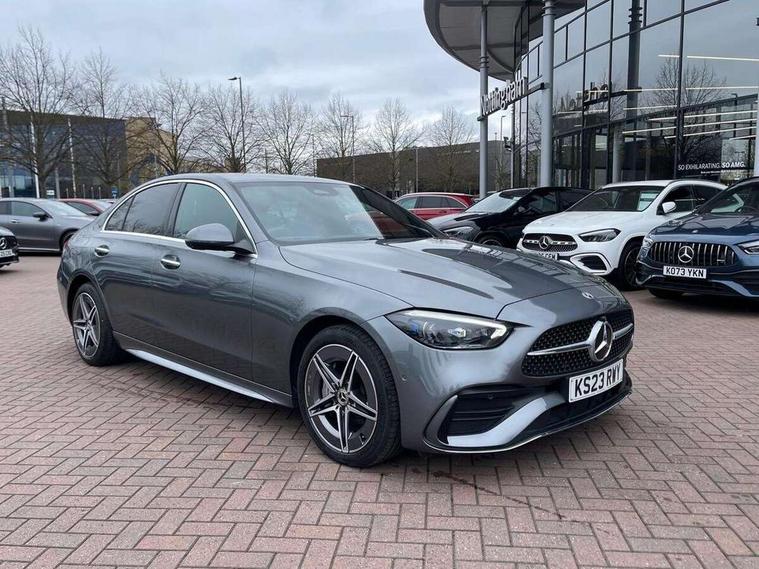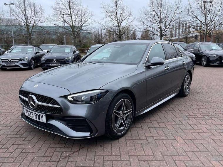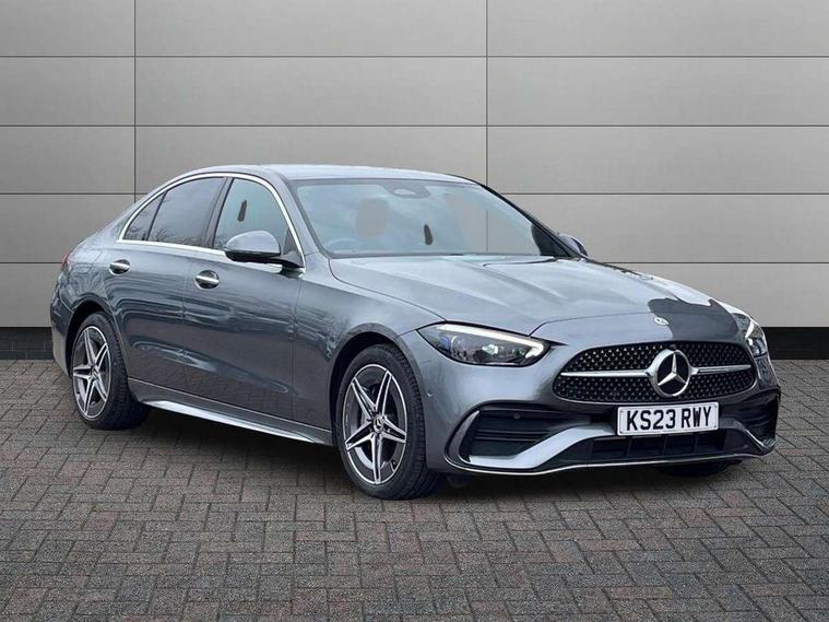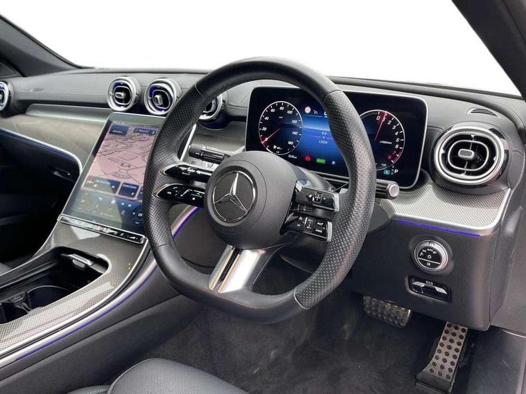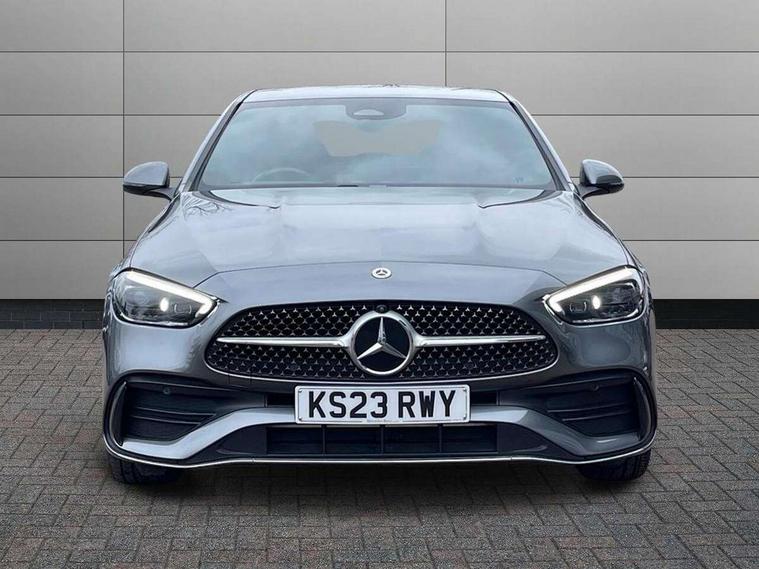 11.9" high resolution multimedia colour display, 12.3" digital instrument cluster display, Acoustic ambient protection, Active blind spot assist, Active brake assist plus, Active lane keeping assist, AMG DYNAMIC SELECT with a choice of driving modes (Slippery, Comfort, Sport, Sport+, Individual), Attention assist, Cruise control with speedtronic variable speed limiter, E-call, Extended MBUX functions, Finger print sensor, Fluorescent jacket for driver, MBUX augmented reality for navigation, MBUX navigation premium, MBUX voice control activated by keywords "Hey Mercedes", Mercedes connect me, Mercedes me remote services, Outside temperature gauge, Pre-installation for digital key transfer, Remote boot release, Service indicator (ASSYST), Smartphone integration, Speed limit assist, Sports direct steer speed sensitive steering, Status display for rear seat belts in instrument cluster, Traffic sign assist, Wireless charging system for mobile devices, 11 kW AC onboard charger, 50l fuel tank with increased capacity, 5m charging cable for household socket (mode 2), 5m charging cable for wall box/public charging stations(mode 3), 66l fuel tank with increased capacity, 9G TRONIC 9 speed automatic transmission, Agility control sports suspension and lowered by 15 mm, Petrol Particulate Filter, Sporty engine sound system, DAB Digital radio, MBUX multimedia system, Adaptive brake lights, Adaptive high beam assist plus, AMG body styling front apron, rear apron and side skirts, AMG front bumper with sporty air intakes and chrome elements, AMG rear bumper with high gloss chrome elements, AMG side skirts in vehicle colour, B-pillar trim in glossy black, Body coloured bumpers, Body coloured door mirrors, Chrome beltline trim, Daytime running lights, Digital light LED headlamps, Electric windows with one touch opening/closing and obstruction sensors, Electrically adjustable and heated door mirrors, Green tinted glass, Heat insulating dark tinted glass, Illuminated front door sill panels, LED Indicators, LED tail lights, LED third brake light, Noise acoustic glass, Powerdomes on bonnet, Privacy glass, Radiator diamond grille with integrated Mercedes Benz star and louvre silver with chrome pins, Radio aerial integrated into rear window, Rain sensor with automatic windscreen wiper activation, Rear boot, Rear side wing doors, Two visible exhaust pipes integrated into rear bumper, 3 seat bench in 2nd row, 3 spoke flattened bottom AMG multifunction steering wheel in black nappa leather with chrome inserts and perforated leather in grip area, 40:20:40 split folding rear bench seat, AMG sports seats, Artico man-made leather upholstery, Audio and onboard settings control on multifunction steering wheel, Auto Mercedes-Benz child seat recognition sensor, Black air vents with silver chrome elements, Black floor mats with AMG lettering, Black roof liner, Door trim elements high gloss black with silver chrome surroundings and switches, Double cupholder in centre console, Electrically height/reach adjustable steering column, Folding rear seat backrest, Front and rear head restraints, Front centre armrest with storage compartment, Gearshift paddles on steering wheel, Heated front seats, Illuminated door sills with Mercedes Benz lettering, Illuminated glove compartment stowage, Interior lighting - 64 colour Ambient lighting, Overhead control unit in high gloss black, Rear top tether child seat ISOFIX attachment, Single front passenger seat, Sports pedals with stainless steel surfaces and rubber studs, Sunvisors with illuminated vanity mirrors, THERMATIC 2 zone automatic climate control, Interior lighting package - C Class, Memory package - C Class, Mirror pack - C Class, Parking package with 360 degree camera - C Class, Seat comfort pack - C Class, Stowage space pack - C Class, USB package - C Class, USB package plus - C Class, 3 rear 3 point seatbelts, Active bonnet pedestrian safety measure which detects an impact and raises bonnet, Adaptive brake system with HOLD function and brake drying in the wet, Anti-lock braking system (ABS), Black seat belts, Brake calipers with Mercedes-Benz lettering + perforated front brake discs, Child proof door locks, Drivers knee airbag, Drivers pelvis airbag, Dual stage driver/passenger airbags, Electric parking brake, Electronic Stability Programme (ESP), Front centre airbag between driver and front passenger seats, Front side airbags, Larger brake discs on front axle, Rear seatbelt warning indicator, Sports braking system, Tyre pressure monitoring system, Warning triangle and first aid kit, Window airbags for driver, front passenger and rear passenger, Central locking with interior switch, automatic locking and crash sensor with emergency opening function, Chrome surround in electric key, Dashcam, Keyless Go, URBAN GUARD vehicle protection (Thatcham Category 1) consisting of break-in, anti-theft alarm system (ATA), interior monitoring and tow-away protection, Artico man-made leather dashboard with contrast stitching, Centre console trim in metal weave, 19" AMG multi spoke light alloy wheels painted himalayas grey with high sheen finish, Noise reduced tyre with foam absorber, Summer tyres, TIREFIT with tyre inflation compressor,