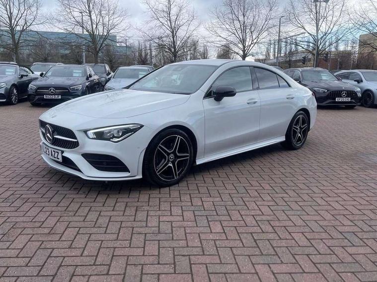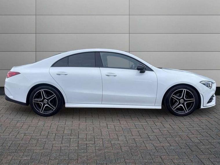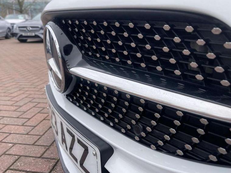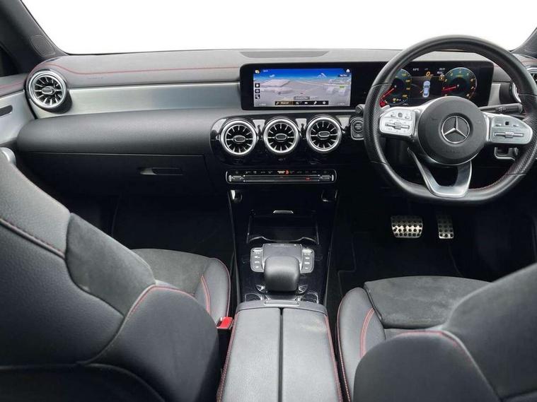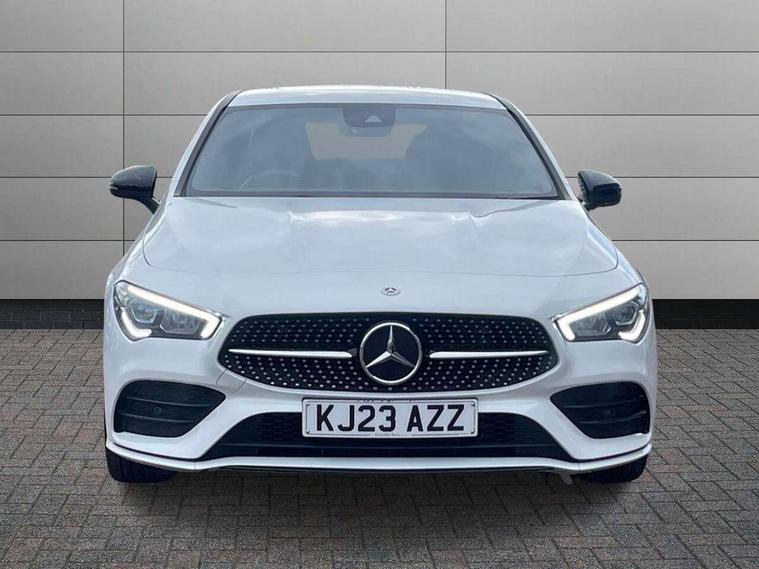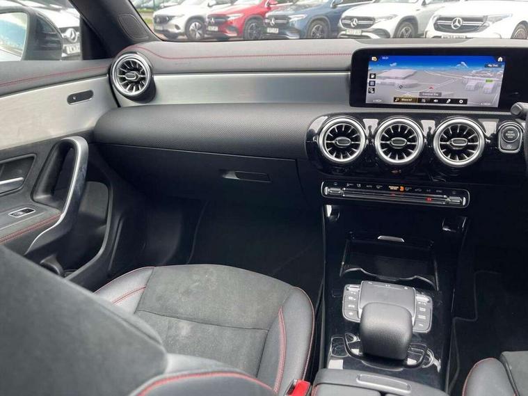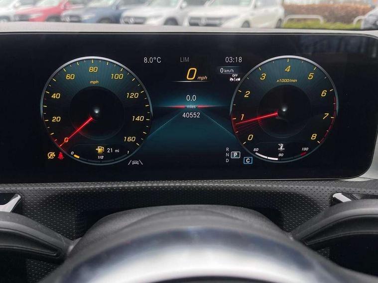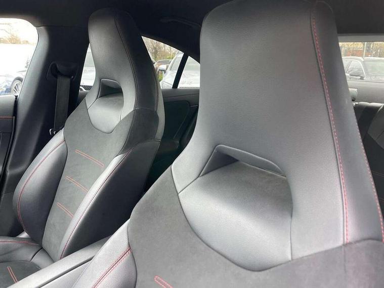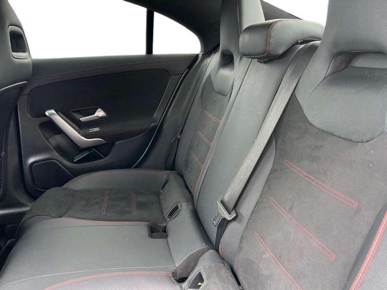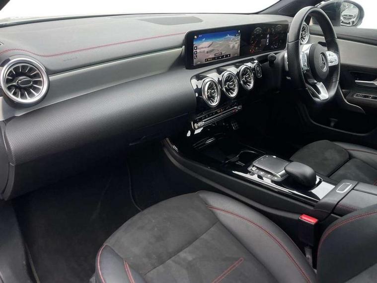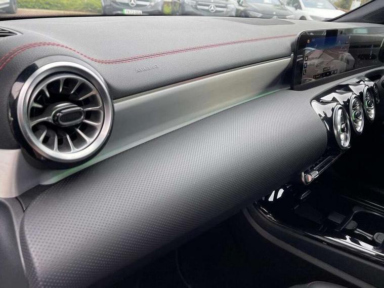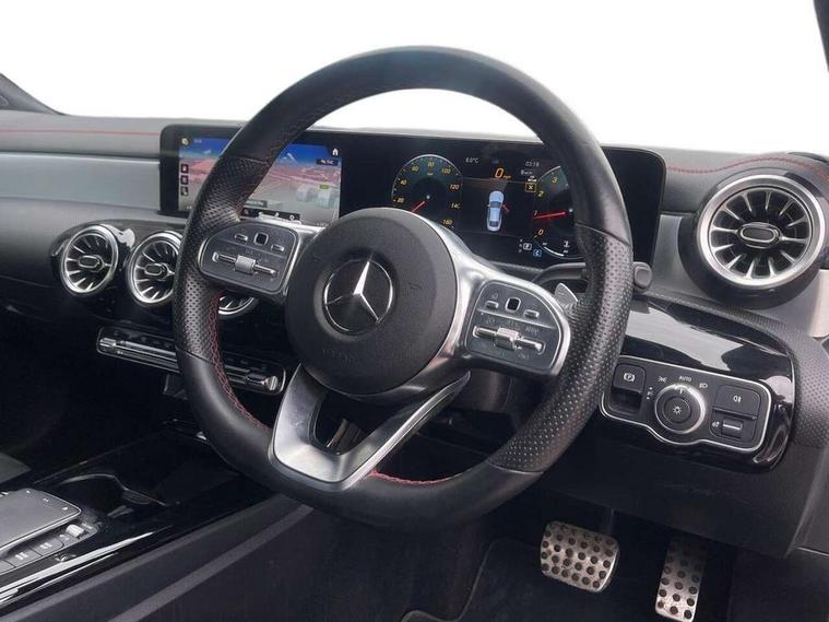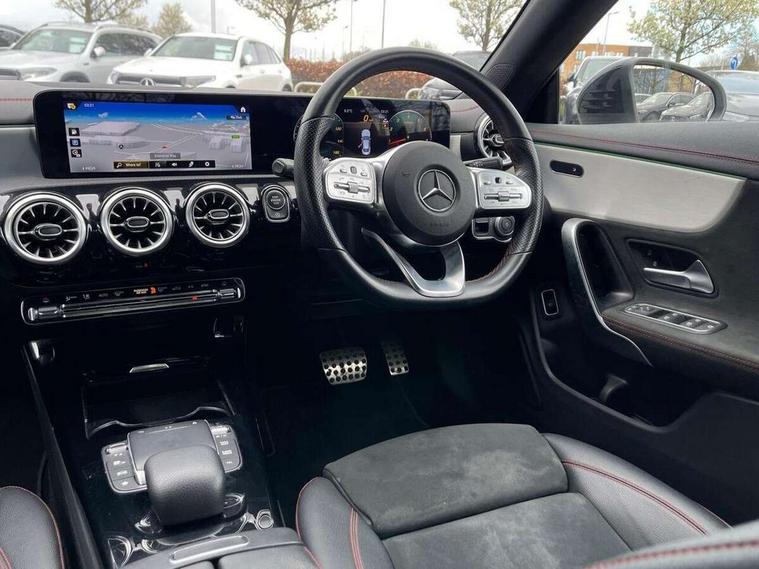 10.25 inch Instrument display with digital cockpit, 10.25 inch touchscreen central media display, Active lane keeping assist, Attention assist - Monitors steering behaviour and long journey fatigue, Bluetooth connection, Car wash mode, Cruise control with limiter, Direct steer system with speed sensitive power steering, DYNAMIC SELECT with a choice of driving modes (ECO, Comfort, Sport and Individual), ECO start/stop function, Fluid level warning indicator for fuel, oil, coolant and washer fluid, Hard-disk navigation, Hey Mercedes Voice activation, Lamp failure indicator, Mercedes me connect including emergency call system, accident recovery, breakdown and maintenance management, Mercedes me remote services, Outside temperature gauge, Owners manual and service booklet in English, Pre-installation of private car share, Preinstallation for Mercedes Benz link, Radio aerial integrated into front and rear windshields, Service indicator (ASSYST), Smartphone integration with Apple CarPlay and Android auto, Speed limit assist, Trip computer in multifunction display with current consumption indicator, Lowered comfort suspension, Rear axle multi-link, DAB digital radio tuner, MBUX multimedia system, Mercedes Benz sound system (100 W) with 6 speakers, USB (type C) ports (2) in stowage compartment and 1 in front of centre console, Adaptive brake lights, AMG body styling with AMG front apron and rear apron and visible exhaust tailpipe in chrome trim elements, AMG bodystyling side skirts, Body colour bumpers, Body colour door handles, Chrome beltline strips, Diamond radiator grille pins in chrome, Electric windows, Electrically adjustable and heated door mirrors with integrated LED indicators, Exhaust system with 2 Visible tailpipe trim elements and rear apron with trim in chrome, Headlamp assist automatic headlamp activation, Heated glass rear windscreen + timer control, High level LED third brake light, Interior mirror with black reading lamps and frameless, LED high performance headlamps with integrated LED daytime running lights, LED tail lamp, Privacy glass with dark tinting on rear side windows and rear window, Rain sensing windscreen wipers with two sensitivity settings, Rear boot, Rear fog lamp, Rear side wing doors, Variable front intermittent wipers, Window line trim strip in chrome, 3 seat bench in 2nd row, 3 spoke flattened bottom nappa leather multifunction steering wheel with perforated leather in grip area, 40:20:40 split folding rear seat backrests, Air conditioning - Two zone thermotronic luxury automatic climate control with display, Air vents with surround in silver chrome, Artico man-made leather upholstery, Automatic child seat recognition sensor, Black roof lining, Brushed stainless steel sports pedals with rubber studs, Floor mats with stitched AMG lettering, Front centre armrest with stowage, Front door sills with Mercedes Benz lettering, Galvanished gear shift paddles on steering wheel, Heated front seats, Illuminated glove compartment stowage, Interior lighting - 64 colour Ambient lighting, Luggage net on driver/front passenger seat backrest, Manually adjustable front seats, Manually height and reach adjustable steering column, Rear head restraints, Single front passenger seat, Sport seats with fixed head restraints, Stowage compartment in centre console with retractable cover, Sunvisors with illuminated vanity mirrors, Touchpad on center console, Twin front cupholders, Two outer rear seat isofix and top tether child seat fixing points, Light and sight pack - CLA, Mirror pack - CLA, Night package - CLA, Parking package - CLA, Seat comfort pack - CLA, Active bonnet pedestrain safety measure which detects an impact and raises bonnet by 65mm, Active brake assist includes forward collision warning system with autonomous braking, Adaptive brake assist with hold function and hill start assist, Anti lock braking system (ABS) with brake assist, Black seat belts, Bonnet with power domes, Brake pad wear warning indicator, Childproof locks manually operated for rear doors and electrically operated for rear power windows, Crash responsive emergency lighting, Driver and front passenger head and sidebags, Driver and front passenger windowbags, Drivers knee airbag, Dual stage driver and front passenger airbags, Electric parking brake, Electronic stability programme with acceleration skid control, ESP curve dynamic assist, Front and rear seatbelt reminder, Front passenger seat occupancy sensor, Three point rear seat belts, Tyre pressure monitoring system, Warning triangle and first aid kit, Guard 360 degree guard vehicle protection system with immobiliser and interior protection, Keyless Go starting function, Remote central locking and crash sensor with emergency opening function, Light aluminium with longitudinal grain interior trim, 18" AMG 5 twin spoke light alloy wheels painted in black with high sheen finish, Summer tyres, Tirefit tyre sealant kit,