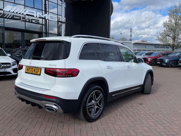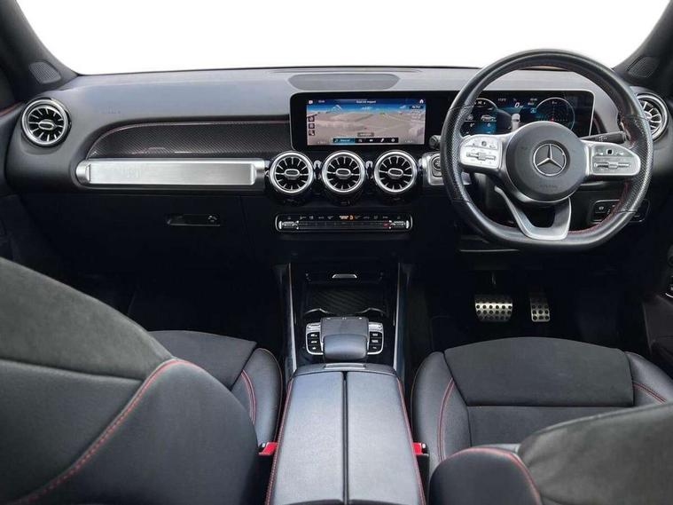10.25" Digital instrument cluster display screen, 10.25" Digital media screen display, Active lane keeping assist, Attention assist - Monitors steering behaviour and long journey fatigue, Brake pad wear indicator warning light, Car wash mode, Cruise control with limiter, DYNAMIC SELECT with a choice of driving modes (ECO, Comfort, Sport and Individual), Easy-pack tailgate, ECO start/stop function, Fluid level warning indicator for fuel, oil, coolant and washer fluid, Hard disk navigation, Hey Mercedes Voice activation, Lamp failure indicator, MBUX augmented reality for navigation, MBUX multimedia system with DAB digital radio and touchpad including satellite navigation, Mercedes me connect including emergency call system, accident recovery, breakdown management and maintenance, Outside temperature gauge, Owners manual and service booklet in English, Parameter steering system, Pre-installation for Vehicle Monitoring, Pre-installation for Vehicle set up, Pre-installation of private car share, Radio aerial integrated into front and rear windshields, Service indicator (ASSYST), Smartphone integration with Apple CarPlay and Android auto, Speed limit assist, Trip computer in multifunction display with current consumption indicator, Wireless charging, 23.8 litre AdBlue fuel tank, 60 litre fuel tank, Comfort suspension, Rear axle multi-link, DAB digital radio tuner, Mercedes Benz advanced sound system (225 W) with 10 speakers, 1 central speaker, speakers on doors, a tweeter on door, one sub woofer + boost amplifier, Pre installation for Mercedes Benz Link, USB (type C) port in front stowage compartment, USB (type C) ports (2) in stowage compartment, Adaptive brake lights, Aerial for GPS, AMG bodystyling door panels black grained with chrome plated inserts, AMG bodystyling front apron with chrome splitter, AMG bodystyling rear apron with diffuser optics and chrome trim element, AMG specific front and rear bumper including underride guard in high gloss chrome, Beltline strips and weather strip in chrome, Body coloured door handles with chrome insert for keyless entry, Body coloured door mirror caps, Electric adjustable and heated door mirrors with integrated LED side indicators, Exhaust system with dual flow exhaust pipes (non-functional), Front and rear electric windows, Headlamp assist automatic headlamp activation, Heated glass rear windscreen + timer control, High level LED third brake light, Interior mirror with black reading lamps and frameless, LED high performance headlamps with integrated LED daytime running lights, LED tail lamp, Polished aluminium roof rails, Pre-installation for trailer coupling, Privacy glass with dark tinting on rear side windows and rear window, Radiator grille with pins in chrome and single louvre with chrome insert, Rain sensor windscreen wipers, Rear fog lamp, Two visible tailpipe trim elements exhaust, 3 spoke multifunction sport steering wheel in nappa leather, Air conditioning - Two zone thermotronic luxury automatic climate control with display, AMG sports pedals with brushed stainless steel surfaces and black rubber studs, Artico man-made leather/Microfibre Dinamica upholstery with red contrast stitching, Automatic child seat recognition sensor, Black floor mats with AMG lettering, Black roof lining, Fore/aft adjustment rear seats, Freight packaging with tie-down hooks, Front centre armrest with stowage, Front door sills with illuminated Mercedes lettering, Front passenger grab handle with brushed side silver chrome, Galvanished gear shift paddles on steering wheel, Heated front seats, Height/reach adjustable steering column, Interior lighting - 64 colour Ambient lighting, Luggage net on driver/front passenger seat backrest, Net in front passenger footwell, Rear armrest with two integral cup holders for drinks, Sports seats with adjustable head restraints, Stowage compartment in centre console, Stowage compartment with retractable cover, Third row of seats for two people on rear seat, Third row of seats with isofix and top tether child seat fixing points, Touchpad on center console, Twin front cup holders, Two outer rear seat isofix and top tether child seat fixing points, Interior lighting with light and sight pack - GLB, Keyless Go comfort pack - GLB, Mirror pack - GLB, Off-road engineering package - GLB, Parking pack - GLB, Seat comfort pack - GLB, 3 rear 3 point seatbelts, Active bonnet pedestrain safety measure which detects an impact and raises bonnet by 65mm, Active brake assist includes forward collision warning system with autonomous braking, Adaptive brake assist with hold function and hill start assist, Airbags - kneebag for driver, Anti-lock braking system (ABS) with brake assist, Childproof locks manually operated for rear doors and electrically operated for rear power windows, Crash responsive emergency lighting, Driver and front passenger head and sidebags, Driver and front passenger windowbags, Dual stage driver and front passenger airbags, Electronic parking brake, Electronic stability programme with acceleration skid control, ESP curve dynamic assist, Front and rear seatbelt reminder, Front brake callipers with Mercedes Benz lettering, Front passenger seat occupancy sensor, Perforated and ventilated front brake discs, Tyre pressure monitoring system, Warning triangle and first aid kit, Remote central locking and crash sensor with emergency opening function, Urban guard vehicle protection - Anti theft alarm system, tow away protection with visual and acoustic warning and alarm siren, Vehicle key with decorative surround in chrome, Black air vents with chrome surround, Carbon structure trim, 19" AMG 5 twin spoke light alloy wheels painted in tantalite grey with high sheen finish, Summer tyres, Tirefit tyre sealant kit,