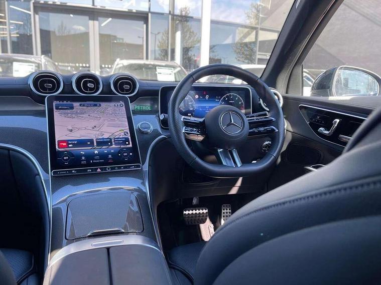 11.9" high resolution multimedia colour display, 12.3" Digital individually configurable instrument display, Acoustic presence indicator, Active lane keeping assist, Attention assist, Blind spot assist, Bluetooth interface for hands free telephone, Collision prevention assist plus, Cruise control with speedtronic variable speed limiter, Dashcam - front camera for video recording, Direct steer speed sensitive steering, DYNAMIC SELECT with a choice of driving modes (ECO, Comfort, Sport, Sport+ and Individual), eCall emergency call system, ECO start/stop function, Fingerprint scanner, Fluorescent jacket for driver, Hard disc navigation, Instrument display in miles with English lettering, MBUX augmented reality for navigation, MBUX navigation premium, MBUX voice control activated by keywords "Hey Mercedes", Mercedes me connect, Outside temperature display, Remote boot release, Remote services, Road sign recognition system, Service indicator (ASSYST), Smartphone integration, Status display for rear seat belts in instrument cluster, Traffic sign assist, Trip computer, Wireless charging, 48V Mild hybrid technology, 4MATIC permanent four wheel drive, 62 litre fuel tank, 9G TRONIC plus automatic transmission, Petrol Particulate Filter (PPF), Sport suspension, DAB digital radio tuner, MBUX extended functions, Mercedes benz sound system, Pre installation for Mercedes Benz Link, Adaptive brake lights, Adaptive high beam assist plus, Aluminium look running boards with rubber studs, Aluminium roof rails, AMG bodystyling front apron, rear apron and side skirts, AMG Line exterior, Auto headlights, Body colour bumpers, Body colour door mirrors, Digital light LED headlights, Electrically adjustable door mirrors, Front and rear electric windows, Headlight washers, Heat insulating dark tinted glass, Heated rear window, High level LED brake light, Integrated LED daytime running lights, LED indicator lights, LED rear fog lights, LED tail lamp, Motor way mode function and locator lighting, Noise acoustic glass, Radiator grille with Mercedes Benz pattern and integreated Mercedes star and louvre in dark grey matt with chrome inlay and black frame, Rain sensor windscreen wipers, Range adjustable headlights, Rear side wing doors, Rear wiper, Transparent Bonnet, Two chrome plated tailpipe trim elements, Variable front intermittent wipers, Welcome and follow-me home light functionality, Wider wheel arch for AMG wheels, 3 seat bench in 2nd row, 40:20:40 split folding rear seats, Ambient lighting premium, AMG line interior, Artico man-made leather upholstery, Audio and onboard settings control on multifunction steering wheel, Automatic child seat recognition sensor, Black fabric roof lining, Black floor mats with AMG lettering, Double cup holder in centre console, Easy-pack removable load compartment cover, Electrically height/reach adjustable steering column, Front centre armrest with stowage compartment, Front head restraints, Galvanised steering wheel gearshift paddles, Heated front seats, Illuminated door sill panels with Mercedes Benz lettering, Illuminated glove compartment, Instrument panel and beltlines in ARTICO manmade leather in nappa look, Multifunction sports steering wheel in nappa leather, Rear centre headrest, Rear head restraints, Rear top tether child seat ISOFIX attachment, Single front passenger seat, Sports pedals with stainless steel surfaces and rubber studs, Sports seats, Sun visors, THERMATIC 2 zone automatic climate control, Anti theft protection package - GLC, Boot comfort package - GLC, Exterior chrome package - GLC, Interior chrome package - GLC, Interior lighting pack - GLC, Keyless-Go comfort package - GLC, Memory pack - GLC, Mirror pack - GLC, Parking package with 360 degree camera - GLC, Seat comfort package - GLC, Stowage space package - GLC, USB Plus Pack - GLC, 3 rear 3 point seatbelts, Active braking assist, Anti-lock braking system (ABS), ASR traction control, Automatic front passenger airbag deactivation, Black seat belts, Brake calipers with Mercedes-Benz lettering + perforated brake discs, Braking system with larger brake discs on the front axle, Child proof door locks, Dual-stage airbags - driver and front passenger, driver knee bag and window bags for driver, front passenger and rear passengers, Electronic parking brake, Electronic stability programme (ESP) with curve dynamic assist and cross wind assist, Front and rear seatbelt reminder, Front passenger seat occupancy sensor, Front seatbelt pretensioners, Hill start assist, Tyre pressure monitoring system, Warning triangle and first aid kit, Automatic door locking, Guard 360 degree vehicle protection plus, Interior protection/immobiliser, Remote central locking, Centre console in metal structure finish, Metal structure trim, 20" AMG 5 spoke aerodynamically optimised light alloy wheels in painted black with high sheen finish, Summer tyres, TIREFIT with tyre inflation compressor,
