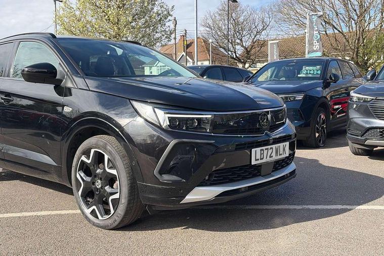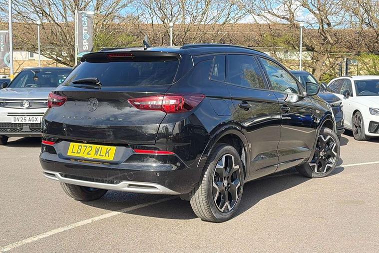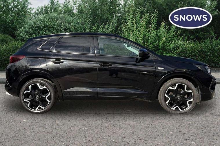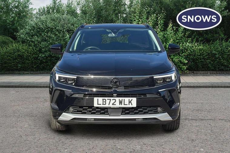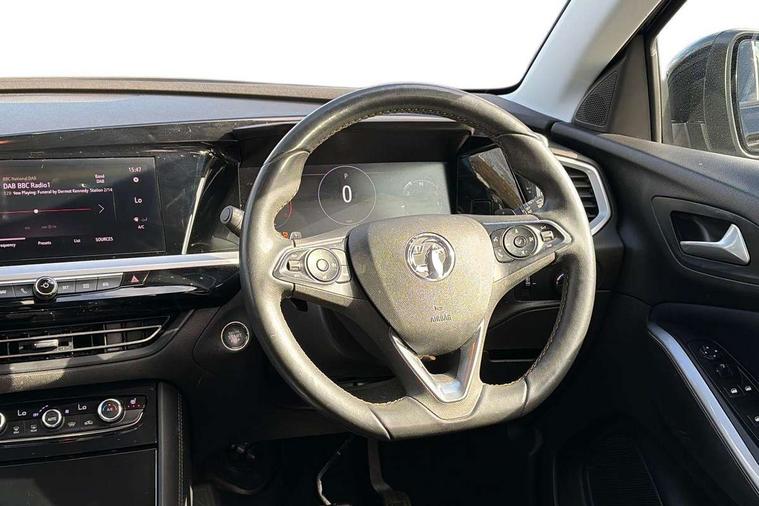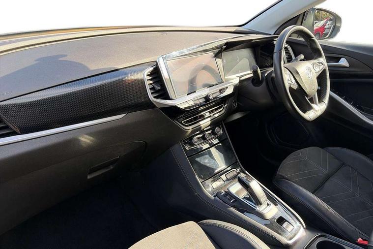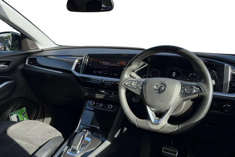 12" colour digital cluster, Central facia display with digital clock, outside air temperature and audio information, Digital fuel gauge with low fuel level warning light, Digital rev counter, Digital speedometer, Digital water temperature gauge with warning light, Driver drowsiness alert system, Driver information - Total mileage, service indicator, oil life, Front and rear parking distance sensors with 360 degree rear view camera and advanced park assist, Gearshift up/down indication light, Highway integration assist (Lane positioning assistant and Adaptive cruise control), Lane departure warning system, Lane keep assist, Lights on audible warning, Multi function trip computer - Trip odometer, vehicle range, average speed and fuel economy, instantaneous fuel economy and driving time, Multimedia navi pro with 10" colour touch+ sat nav+AM/FM/DAB radio, bluetooth audio streaming/mobile phone portal, Apple carplay/Android auto, USB, Power operated tailgate with foot sensor, Side blind spot alert, Speed sensitive electric power assisted steering, Speed sign recognition, Vauxhall connect including Emergency call (SOS e-call) and Breakdown call (b-call), Wireless charger for mobile devices, Six speaker - four front + two rear, Steering wheel mounted audio/phone/cruise controls, Alloy effect front and rear skid plates, Automatic lighting control, Automatically dimming anti dazzle rear view mirror, Black door mirrors, Black side window trim, Body colour door handles, Body colour lower front and rear bumpers, protective wheel arches and lower door cladding, Body colour upper front bumper, Collapsible windscreen wipers, Dark tinted rear side and tailgate windows, Door to door illumination, Electrically operated front and rear windows with safety auto reverse and one touch up/down facility, Front wiper system spraying directly from wipers, Hazard warning lights, Heated rear screen with timed cut off, Heated windscreen, High beam assist, High gloss black Griffin for Vizor and tailgate with high gloss black Grandland tailgate lettering, High gloss black roof rails, High level centre rear brake light, IntelliLux adaptive LED pixel headlights and LED tail lights, Intermittent rear window wash/wipe, LED daytime running lights, LED front fog lights, Magic wash, Manual headlight beam levelling, Rain sensor windscreen wipers, Rear side wing doors, Rear spoiler, Reversing light, Shark fin aerial, Silver effect protective front and rear skid plate, Soundproof insulated windscreen, Tinted windows, Twin electrically adjustable and heated power door mirrors (wide-angle on drivers side) with automatic timed cut-off, Two speed windscreen wipers with variable intermittent wipe, Upper and lower bumper design, Vizor front grille, Welcome lighting, 12v plug in front console and 12v plug in boot, 3 bench rear seats in 2nd row, 3 spoke flat bottom leather steering wheel with satin chrome effect bezel, 4 way electric driver lumbar support, 4 way passenger electric lumbar support, 60/40 split folding rear seat with centre rear seat armrest and load though facility, Advanced predictive logic control system using a sun sensor, Alcantara upholstery, Alloy sports pedals, Ambient centre console downlighter, Automatic air direction and fan speed with manual override, Charcoal filter, Chrome effect interior door handles, Covered storage compartment in centre console and in driver armrest, Driver's centre armrest, Drivers and front passengers seat with height, reach, tilt, backrest adjustment and seat cushion extension, Dual zone electronic climate control, Ergonomic active drivers sports style seat, Ergonomic active front passenger sports style seat, Front door pockets with 2.6 litre capacity, Front seat back storage pockets, Fully carpeted luggage area, Height adjustable headrests, Illuminated driver/passenger sunvisors with vanity mirror, Illuminated luggage area, ISOFIX on front passenger and rear outer seats, Luggage compartment cover, Reach + rake adjustable steering column, Rear centre seat head restraint, Rear door pockets with 1.8 litre capacity, Rear passenger compartment heating ducts, Rear reading lights, Two drinks holders in centre console, Winter pack - Grandland, Anti-lock braking system (ABS), Automatic emergency braking with pedestrian detection, Child proof locks on rear doors, CSC - Cornering stability control, Deactivation switch for front passenger front and side impact airbags, Deflation detection system, Driver airbag, Dual seatbelt pretensioners on front seats, EBD - Electronic brakeforce distribution, Electronic parking brake, Electronic stability program (ESP) including traction control, Front passenger airbag, Front seat side impact airbags, Full size curtain airbags for driver, front seat passenger and outer rear seat passengers, Hill start assist, Hydraulic Brake Assist (HBA), Inertia reel lap and diagonal seatbelts for all seats, Load limiters on outer rear seatbelt retractors, Pretensioners on outer rear seatbelt retractors, Smart seatbelt reminder for front and rear seats, Tyre pressure monitoring system, Deadlocking system, Electronically protected audio equipment, Engine deadlock immobiliser, Keyless entry and start, Locking wheel nuts, Remote control central locking activation switch on driver door, Remote security alarm system, Black door panels with black premium leather effect inserts, Dax decor facia panel with palladium medium finish, 19" diamond cut bi-colour alloy wheel, Tyre inflation kit,