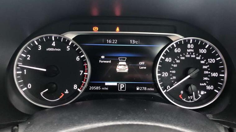 7" full colour TFT screen combimeter, Apple CarPlay and Google Android auto, Drive modes select (Eco, normal and sport), Emergency and breakdown call, Front parking sensor, Idle start/stop system, Intelligent lane intervention, Lane departure warning system, Nissan connect 8" touch screen entertainment system, Nissan connect nav with TomTom traffic, Nissan connect services and Wifi connection, Outside temperature sensor, Power Steering, Rear parking sensor, Traffic sign recognition, Trip computer, Voice recognition, Gasoline particulate filter, 6 speakers, Bluetooth system, USB, Aux-in and 12V socket, DAB Digital radio, Rear console USB port, Auto dimming interior rear view mirror, Auto headlights, Automatic hazard signal with emergency stop signal, Body colour bumpers, Body colour door handles, Electrically adjustable door mirrors with integrated indicators, Follow me home headlights, Front and rear electric window with one touch driver window, Heated and auto folding door mirrors, High beam assist, LED daytime running lights, LED headlamps, LED rear fog lamp, LED rear lamps, Rain sensor windscreen wipers, Rear privacy glass, Rear side wing doors, Rear wiper, Shark fin roof antenna in Pearl Black, Three blink turn signal, 3 height adjustable rear headrests, 3 seat bench in 2nd row, 60/40 split folding rear seat, Automatic climate control, Card holder on driver sunvisor, Cloth upholstery with black and metallic grey syntech leather inserts, Driver and passenger sliding and reclining seats, Driver side rear coat hanger, Driver/passenger sunvisors and vanity mirrors, Front and rear cabin lights, Front armrest, Front door pockets with bottle holders, Front head restraints, Front/rear passenger grab handles, Grey synthetic leather kneepad, Height adjustable driver's seat, Internal chrome door handles, Leather gearshift knob, Leather steering wheel, Luggage board, Luggage space lighting, Monoform sporty seats, Multifunction steering wheel, Rear door bottle holders, Single front passenger seat, Steering wheel mounted gearshift paddles, Telescopic steering wheel adjustment, Two cupholders in front centre console, Two rear isofix child seat anchorage points with top tether, Welcome light and console tray ambient lighting, ABS with EBD and brake assist, Active ride control, Active Trace Control, Driver and passenger airbags, Driver and passenger side airbags, Electric handbrake with auto hold function, Electronic Stability Programme (ESP), Front and rear curtain airbags, Height adjustable seatbelts, Hill start assist, Intelligent emergency braking with pedestrian and cyclist recognition, Rear door child safety locks, Seatbelt reminder for driver/front passenger and rear seats, Single tone horn, Three 3 point rear seatbelts, Traction control, Tyre pressure monitoring system, VDC Dynamic Vehicle Control, Ventilated rear brake discs, Alarm, Immobiliser, Intelligent key and start push button with walk away lock and approach unlock functions, Remote central locking,