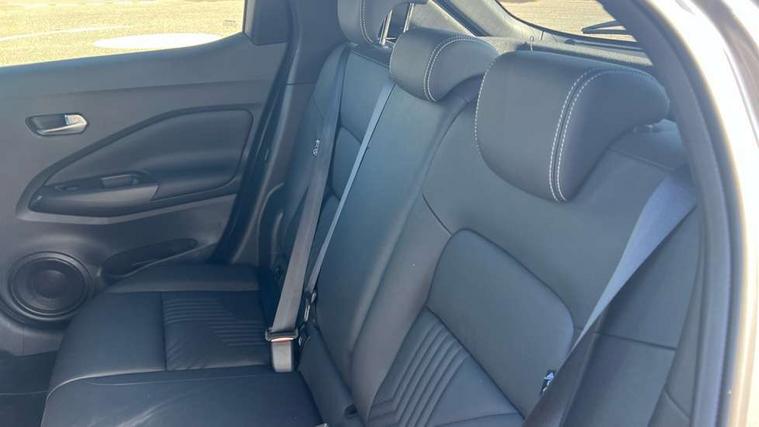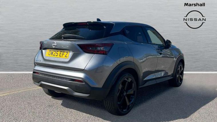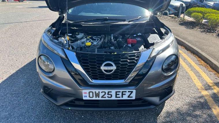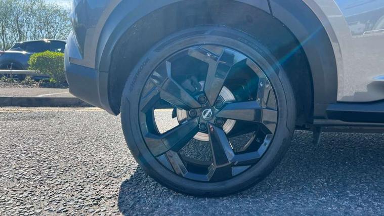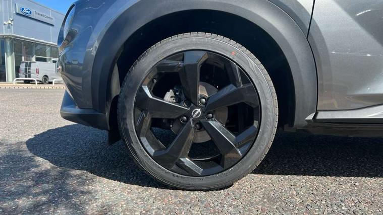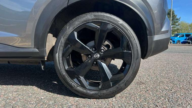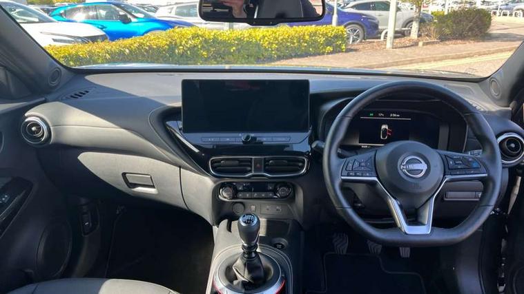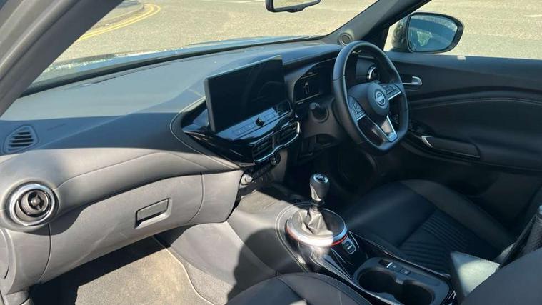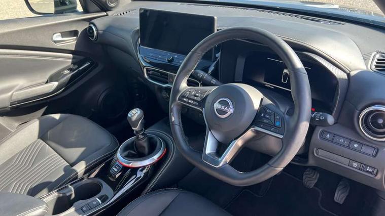 12.3" full colour TFT screen combimeter, Drive modes select (Eco, normal and sport), Emergency and breakdown call, Front parking sensor, Idle start/stop system, Intelligent driver alert system, Intelligent lane intervention, Lane departure warning system, Nissan connect 12.3" touch screen entertainment system, Nissan connect nav with TomTom traffic, Nissan connect services, Outside temperature sensor, Power Steering, Rear parking sensor, Stop/start button, Traffic sign recognition, Trip computer, Voice recognition, WiFi connectivity, Wireless Apple CarPlay and Google Android auto, Wireless Smartphone charger, 10 Bose speakers 8 speakers and 2 headrest speakers for driver/passenger seats, 2 X Rear console USB port, Bluetooth system, USB, Aux-in and 12V socket, Bose personal plus audio system, DAB Digital radio, Auto dimming frameless rear view mirror, Automatic hazard signal with emergency stop signal, Body colour door handles, Electrically adjustable door mirrors with integrated indicators, Follow me home headlights, Front and rear electric window with one touch driver window, High beam assist, LED 3rd brake light, LED daytime running lights, LED front fog lights, LED headlamps, LED rear fog lamp, LED rear lamps, One touch passenger window, Rear privacy glass, Rear side wing doors, Rear wiper, Roof spoiler, Shark fin roof antenna in solid Black, Solid black door mirrors, Three blink turn signal, 3 height adjustable rear headrests, 3 seat bench in 2nd row, 60/40 split folding rear seat, Card holder on driver sunvisor, Door ambient lighting, Driver seat back pocket, Driver side rear coat hanger, Driver/passenger sunvisors and vanity mirrors, Front and rear cabin lights, Front armrest, Front door pockets with bottle holders, Front head restraints, Front/rear passenger grab handles, Gear console ambient circle lighting, Height adjustable driver's seat, Internal chrome door handles, Luggage board, Luggage space lighting, Monoform sporty seats, Multifunction steering wheel, Passenger seat back pocket, Rear door bottle holders, Single front passenger seat, Smooth synthetic leather steering wheel, Synthetic leather kneepad, Synthetic leather shift knob, Synthetic leather upholstery, Telescopic steering wheel adjustment, Two cupholders in front centre console, Two rear isofix child seat anchorage points with top tether, Welcome light and console tray ambient lighting, Advanced safety shield pack - Juke Manual, Comfort pack - Juke, Heat pack with height adjustable passenger seats - Juke, ABS with EBD and brake assist, Active ride control, Active Trace Control, Driver and passenger airbags, Driver and passenger side airbags, Electric handbrake with auto hold function, Electronic Stability Programme (ESP), Front and rear curtain airbags, Height adjustable seatbelts, Hill start assist, Intelligent emergency braking with pedestrian and cyclist recognition, Rear door child safety locks, Seatbelt reminder for driver/front passenger and rear seats, Three 3 point rear seatbelts, Traction control, Tyre pressure monitoring system, VDC Dynamic Vehicle Control, Alarm, Immobiliser, Intelligent key and start push button with walk away lock and approach unlock functions, Remote central locking, 19" Alloy wheels, Tyre puncture repair kit,