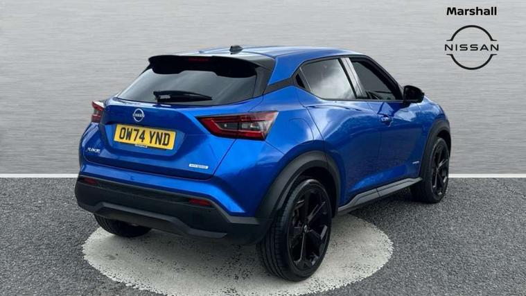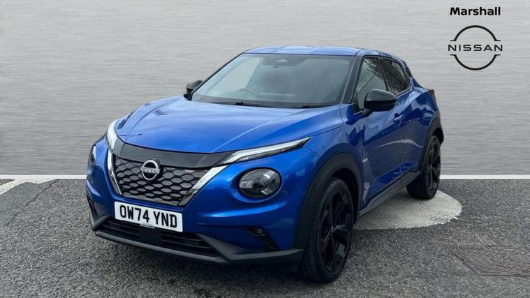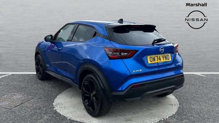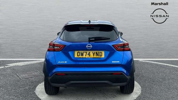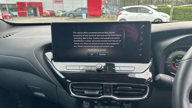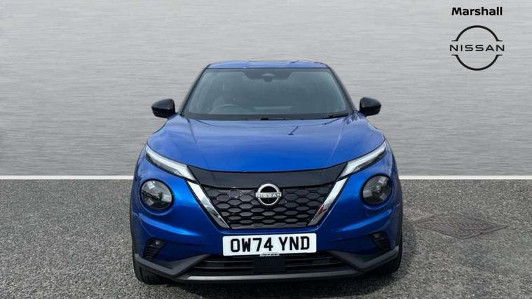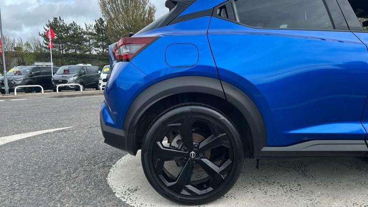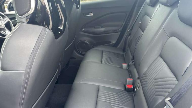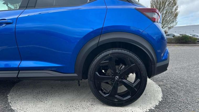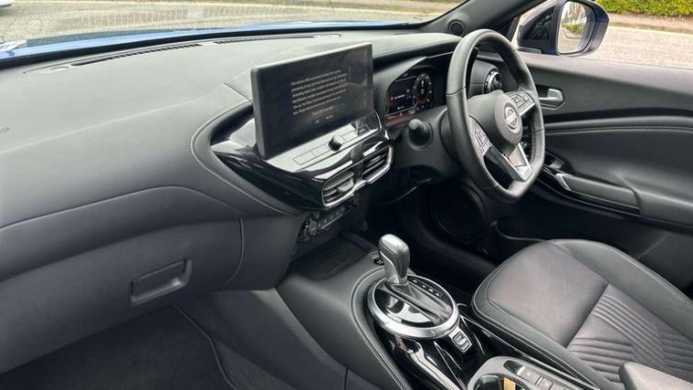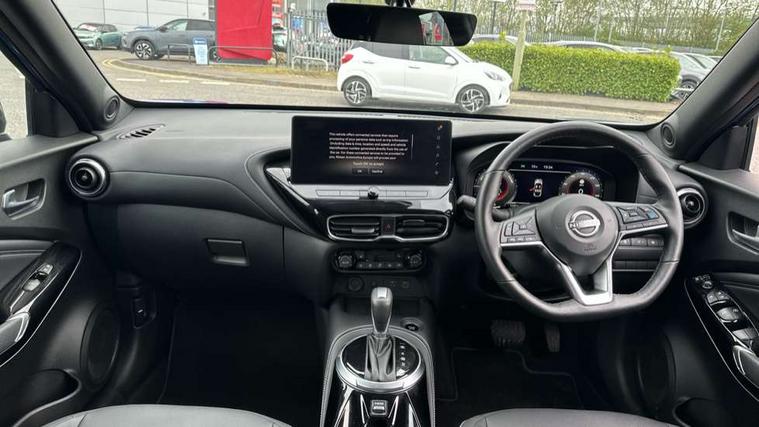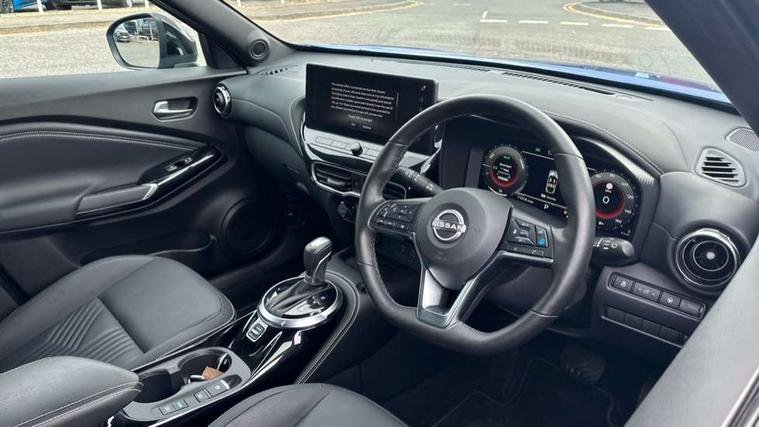 12.3" full colour TFT screen combimeter, Drive modes select (Eco, normal and sport), e-Pedal step, Emergency and breakdown call, EV mode switch, Front parking sensor, Intelligent driver alert system, Intelligent lane intervention, Lane departure warning system, Nissan connect 12.3" touch screen entertainment system, Nissan connect nav with TomTom traffic, Nissan connect services, Outside temperature sensor, Power Steering, Rear parking sensor, Stop/start button, Traffic sign recognition, Trip computer, Voice recognition, WiFi connectivity, Wireless Apple CarPlay and Google Android auto, Wireless Smartphone charger, 10 Bose speakers 6 speakers and 2 headrest speakers for driver/passenger seats, 2 X Rear console USB port, Bluetooth system, USB, Aux-in and 12V socket, Bose personal sound stage control, DAB Digital radio, Auto dimming frameless rear view mirror, Automatic hazard signal with emergency stop signal, Body colour door handles, Electrically adjustable door mirrors with integrated indicators, Follow me home headlights, Front and rear electric window with one touch driver window, Heated and auto folding door mirrors, High beam assist, LED 3rd brake light, LED daytime running lights, LED front fog lights, LED headlamps, LED rear fog lamp, LED rear lamps, One touch passenger window, Rain sensor windscreen wipers, Rear privacy glass, Rear side wing doors, Rear wiper, Roof spoiler, Shark fin roof antenna in solid Black, Three blink turn signal, 3 height adjustable rear headrests, 3 seat bench in 2nd row, 60/40 split folding rear seat, Automatic climate control, Card holder on driver sunvisor, Door ambient lighting, Driver seat back pocket, Driver side rear coat hanger, Driver/passenger sunvisors and vanity mirrors, Front and rear cabin lights, Front armrest, Front door pockets with bottle holders, Front head restraints, Front/rear passenger grab handles, Gear console ambient circle lighting, Height adjustable driver's seat, Internal chrome door handles, Leather gearshift knob, Luggage board, Luggage space lighting, Monoform sporty seats, Multifunction steering wheel, Passenger seat back pocket, Rear door bottle holders, Single front passenger seat, Smooth synthetic leather steering wheel, Synthetic leather kneepad, Synthetic leather upholstery, Telescopic steering wheel adjustment, Two cupholders in front centre console, Two rear isofix child seat anchorage points with top tether, Welcome light and console tray ambient lighting, Heat pack with height adjustable passenger seats - Juke, ProPilot pack - Juke Auto, ABS with EBD and brake assist, Active ride control, Active Trace Control, Driver and passenger airbags, Driver and passenger side airbags, Electric handbrake with auto hold function, Electronic Stability Programme (ESP), Front and rear curtain airbags, Height adjustable seatbelts, Hill start assist, Intelligent emergency braking with pedestrian and cyclist recognition, Rear door child safety locks, Seatbelt reminder for driver/front passenger and rear seats, Three 3 point rear seatbelts, Traction control, Tyre pressure monitoring system, VDC Dynamic Vehicle Control, Alarm, Immobiliser, Intelligent key and start push button with walk away lock and approach unlock functions, Remote central locking, 19" Alloy wheels, Tyre puncture repair kit,