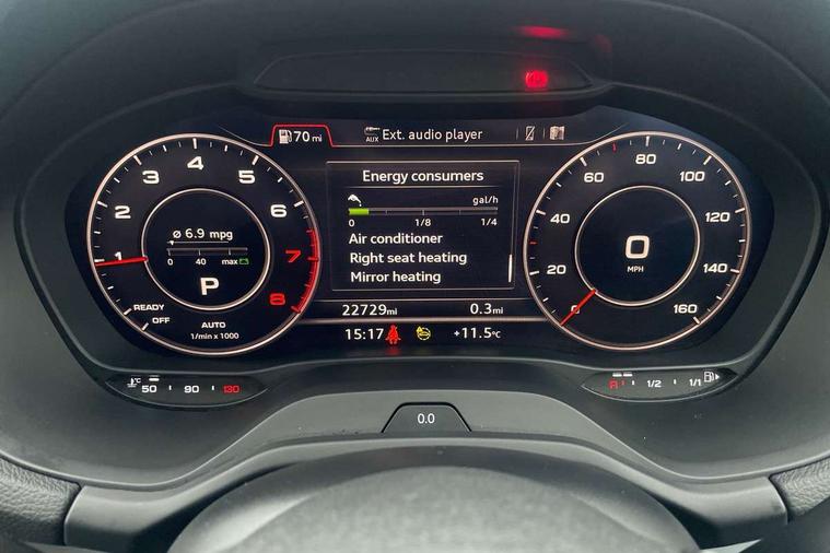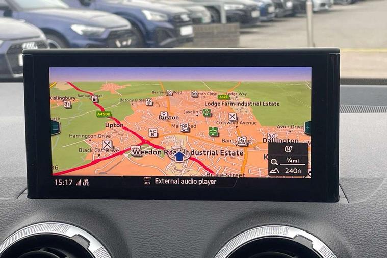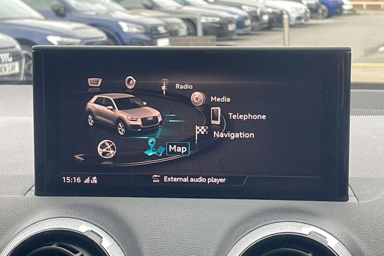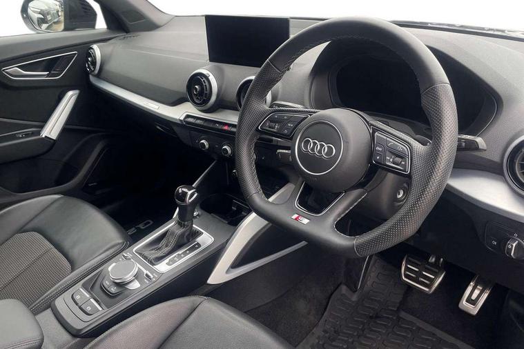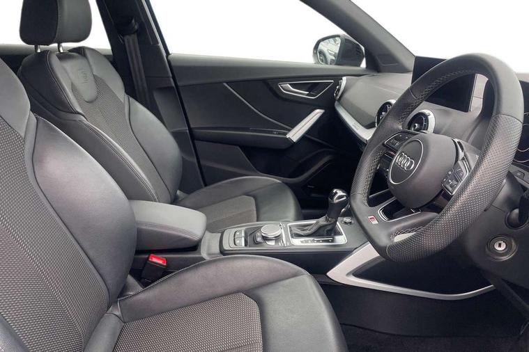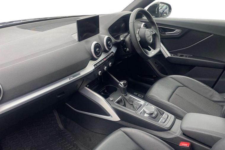 3D map display, Audi connect navigation and infotainment includes innovative services, Audi connect remote and control connects your vehicle to your smartphone, Audi drive select: S tronic - power steering assistance + engine + gearshift (modes: comfort, auto, dynamic, efficiency, individual), Audi smartphone interface - Apple carplay/Android Auto, USB connect, 2xSDXC card readers, voice control for navi, telephone, music and 3rd party apps, Audi virtual cockpit, Automatic start/stop system with recuperation, Bluetooth interface includes bluetooth audio streaming, Cruise control, E-call, Jukebox hard drive memory for music (10GB), MMI navigation plus with 8.3" colour MMI screen and MMI touch, Natural voice recognition, Power operated tailgate, Progressive steering, Rear parking sensors, Sport suspension, 6 passive loudspeakers, DAB Digital radio, Audi beam, Auto dimming rear view mirror, Black window trims, Bumper in full body colour paint finish, Electrically adjustable, folding, auto dimming and heated door mirrors with integrated LED side indicators, Front windscreen with grey tinted sunband, LED daytime running lights, LED headlights with dipped beam, high beam, position lights, indicators, LED rear lights, LED third brake light, Privacy glass - dark tinted rear and rear side windows from B-pillar backwards, Rear side wing doors, Rear wiper, Variable front intermittent wipers, Wheel arch trims in manhattan grey, 12v socket in front, 3 seat bench in 2nd row, 3 spoke flat bottomed multi-function leather sport steering wheel with gear shift paddles, 4-way electric lumbar support for front seats including manual seat height adjustment for both front seats, 60/40 split folding rear seat bench, Black carpets, Black cloth headlining, Front and rear head restraints, Front centre armrest, Front sport seats, Front/rear floor mats, Height/reach adjust steering wheel, Illuminated door sill trims with S logo, ISOFIX child seat mounting in front passenger and rear outer seats, Manual air conditioning, Single front passenger seat, Stainless steel pedals, Tool kit, Black styling pack - Q2, 3x3 point rear seatbelts, 6 airbags - Front, curtain and front side airbags, Electromechanical parking brake, Electronic stabilisation control including ABS, ASR and EDL, Front passenger airbag deactivation, Hill hold assist, Pre-sense front with pedestrian recognition, Seatbelt monitoring, Tyre pressure warning light with visual and acoustic warning, Warning triangle and first aid kit, Anti theft alarm, Anti theft wheel bolts, Electronically operated child locks, Remote central door locking, Aluminium interior element, Black dashboard, Matt brushed aluminium trim inlays,