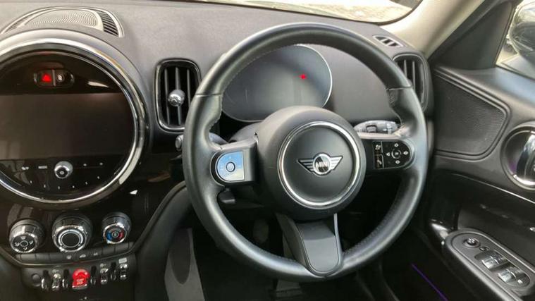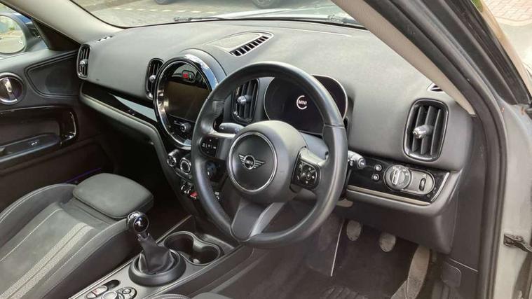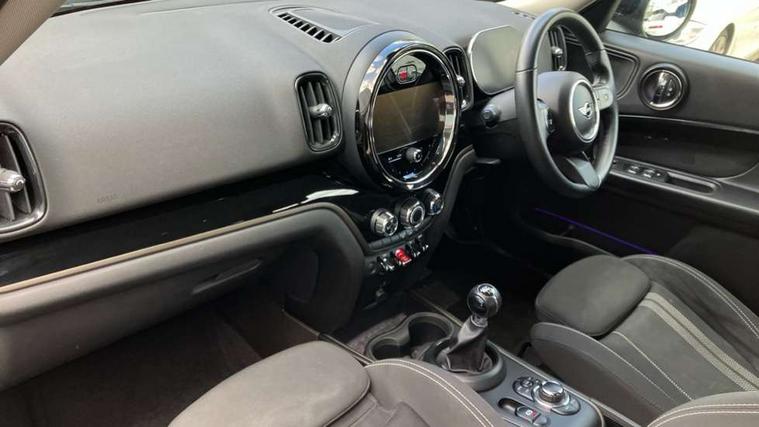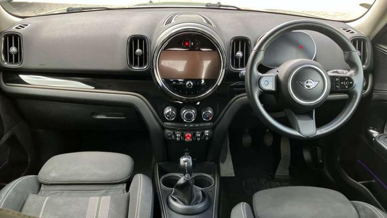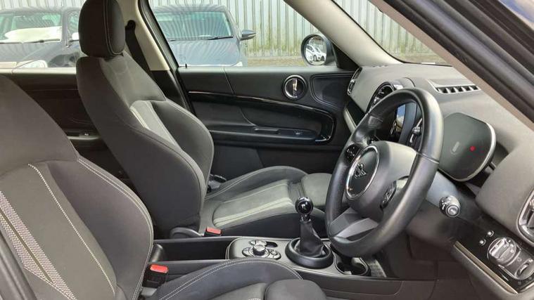 Active Guard incl speed limiting and lane departure functions with auto steering, and front collision warning with brake intervention, Automatic start/stop function with brake energy recuperation, Compatible mobile phone bluetooth with audio streaming, Cruise control with brake assist, Electro-mechanical speed dependant steering assistance, Instrument cluster, MINI Driving Modes - centre toggle switch to control driving setting (sport, mid and green), Mini E-call, On board computer, Rear parking distance control, 51 Litre fuel tank, 6 Speed manual transmission including gear change indicator display, Double Vanos system, Fully variable valve control, High precision injection, Performance Control, FM tuner and DAB digital radio, 3rd brake light, Bonnet scoop, Chrome border honeycomb structure radiator grille with S badge, Chrome fuel filler cap, Day time driving lights, Dynamic brake lights, Electric windows, Heated rear window, Heated windscreen washer jets, LED fog lights, LED Headlights, Metal door sill strips with Cooper S imprint, Model logo, Model logo on Tailgate, Rain sensor with auto headlights, Rear fog lights, Rear side wing doors, Rear window wiper, Side scuttle panel with integrated indicator, Split rear doors, Sun/heat protection glass, Twin exhaust tailpipe, White indicator lenses, 12V socket in centre console, 3 seat bench in 2nd row, 3 spoke sport leather steering wheel + limiter function and audio controls, 360L luggage compartment capacity, 4 lashing eyes in luggage compartment, 40:20:40 split folding rear seats, Chrome interior highlights, Colour line - Carbon black, Cupholders, English handbook, Floor mats, Front headrests, Glove compartment, Headliner with grab handles and clothes hooks, Height and length steering column adjustment, Interior lighting with 12 basic colours selectable via toggle switch in roof, Isofix rear child seat preparation, Leather gearshift lever and handbrake gaiters, LED reading lights, vanity mirror lights, front foot well light and spotlight on front seats, Manual air conditioning, Mechanical seat adjustment, driver seat height adjust, forward/back and front seats backrest, Multifunction steering wheel, Passenger seat height adjuster, Rear headrests, Single front passenger seat, Storage compartments in doors, Sunvisors with vanity mirrors, Excitement pack - Countryman, Navigation pack - Countryman, 2 tone horn, 3 point seatbelts on all seats, 6 Airbags - front, side, head and seat belt tensioners, Anti-lock braking system (ABS), DSC - Dynamic Stability Control, Electronic handbrake, Front and rear disc brakes, Hill start assist, Manual rear child locks, Tyre pressure monitoring system, Alarm system with tilt sensor, monitoring doors, bonnet interior and tailgate, Auto drive away locking, Deadlocking function, Electronic vehicle immobiliser, Locking wheel bolts, Start/stop toggle with keyless go, Piano black interior trim, Tool kit,