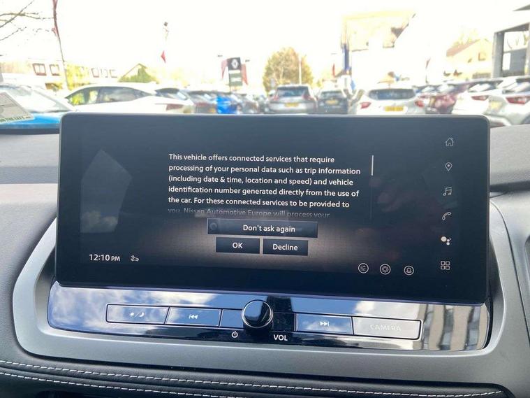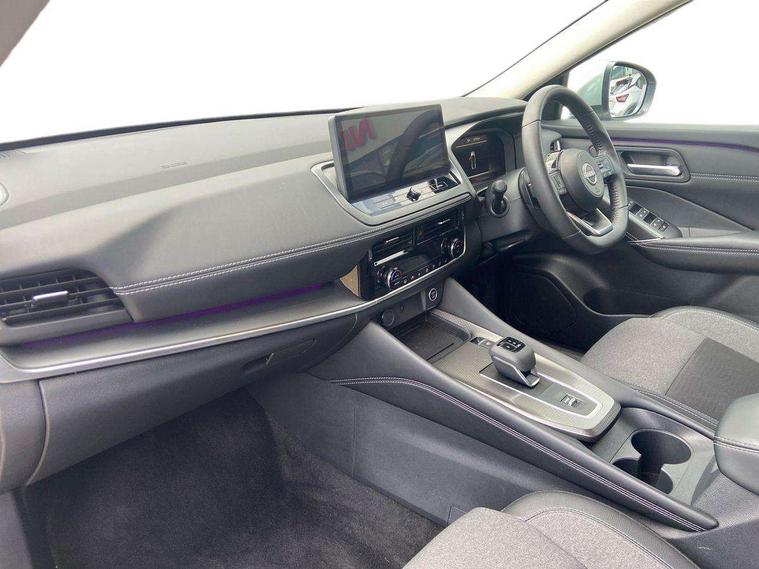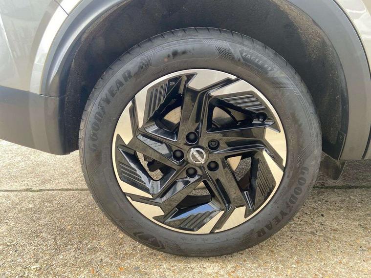 360 degree Intelligent around view monitor with moving object detection, Blind spot intervention, Blind spot warning, Drive assist custom mode, Drive modes (sport, normal, eco), Driver drowsiness and attention warning, Electric speed sensitive power steering, Emergency and breakdown call, Emergency lane keep assist, Emergency Stop Signal (ESS), Engine start/stop button, Event data recorder, Front and rear parking sensors, Full Digital 12.3" TFT Digital Combimeter, Google virtual personal assistance, Idle stop/start system, In-car WIFI hotspot, Intelligent Cruise control (ICC), Intelligent forward collision warning, Intelligent speed assist, Lane departure warning system, Nissan connect 12.3 inch touchscreen infotainment system, Nissan connect navigation with google maps, Nissan connect services 2.0 (Google Automotive System), Outside temperature sensor, Rear cross traffic alert, Reversing detection, Traffic jam pilot, Wireless Apple CarPlay/Android Auto, Wireless charging pad, Limited slip differential, 2 front USB-C ports, 2 rear USB-C ports, 6 speakers, AM/FM audio system with DAB, Bluetooth audio streaming, Auto rear wiper when reversing, Body colour mirror caps, Body coloured door handles, Bodyside mouldings, Chrome side window finisher, Electric auto folding door mirrors, Electrically adjustable and heated door mirrors with LED turn indicator, Follow me home headlights, High beam assist, Intelligent auto headlights, LED 3rd brake light, LED daytime running lights, LED Headlights, LED rear lights, One touch front and rear electric windows with remote opening and closing, One touch passenger window, Partially body coloured bumpers, Rear privacy glass, Rear roof spoiler, Rear side wing doors, Rear styling plate, Shark fin antenna, Splash free rain sensing wipers, Super UV and infrared cut glass, Three blink turn signal, 3 bench rear seats in 2nd row, 3 rear headrests, 60/40 split folding rear seat bench, Chrome interior door handles, Cloth upholstery, Dark headlining, Driver seat back pocket, Dual zone automatic climate control with pollen filter, Front door with bottle holders, Height adjustable front headrests, Luggage board system, Luggage space lighting, Multifunction steering wheel, Passenger seat back pocket, Rear door bottle holders, RGB ambient light (Full area coverage), Single front passenger seat, Smooth leather steering wheel, Steering wheel gearshift paddles, Tilt/telescopic adjustable steering wheel, Two rear isofix child seat anchorage points with top tether, 3x3 point rear seatbelt pretensioners + load limiters, Autonomous emergency braking, Child locks on rear doors, Curtain and front side, far side airbags, Driver and passenger airbags, Driver, passenger and 2nd row rear seat belt reminder, Electric handbrake with auto hold function, Front seatbelt pretensioners + load limiters, Height adjustable front seatbelts, Hill start assist, intelligent front emergency braking, Rear automatic braking, Tyre pressure monitoring system, Vehicle dynamic control, Engine immobiliser, Intelligent key with walk away lock and approach unlock functions, Remote central door locking with deadlocking, Thatcham alarm, 18" Diamond cut alloy wheels, Tyre puncture repair kit,