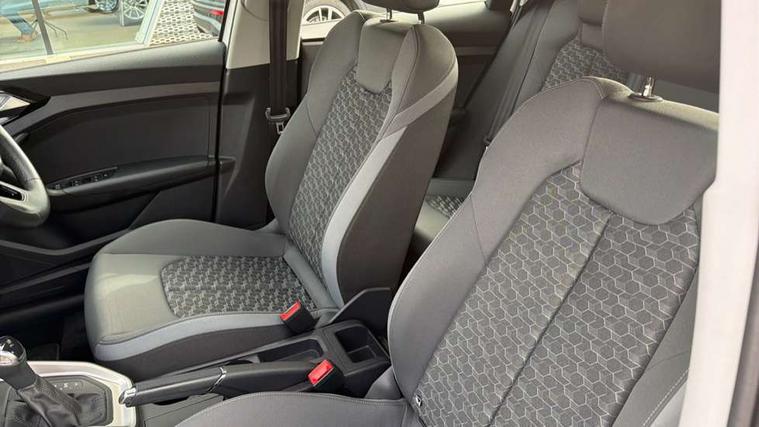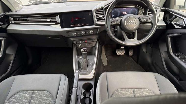 10.25" Digital instrument cluster display classis style instrument dials + speed, odometer, time, outside temperature, telephone menu + fuel level warning, Audi smartphone interface with connect compatible smartphone via USB directly MMI display + Nav, music, third party apps controlled via MMI controller, Automatic start/stop system, Bluetooth interface, Cruise control, Driver's information system, Electromechanical power steering, Emergency e-call, Lane departure warning system, Rear parking sensor, Service interval indicator, Speed limiter, Voice control system, Washer fluid level indicator, Dynamic suspension, 2 x USB type C connection points, 6 passive loudspeakers, DAB Digital radio, MMI radio plus with 10.1" colour MMI display screen and MMI touch, Auto dimming rear view mirror, Body coloured bumpers, Body coloured door mirrors, Electric front and rear windows, Electrically adjustable, heated, folding door mirrors with integrated LED side indicator, Front side air inlets in grained matt black and C frame in anthracite black, Heat insulating glass windscreen and side windows, Heated rear windscreen, High level LED brake light, LED headlights with LED rear lights + dynamic rear indicators + headlight adjustment and high beam, turning light + LED daytime running lights, Radiator grille and rear diffuser in matt anthracite black, Radiator protective grille frame in matt aluminium silver, Rain and light sensors, Rear fog lights, Rear side wing doors, Rear wiper, Side front spoiler lips in grained matt black, 12V socket in centre console with two cup holders, 3 rear seats with headrests, 3 seat bench in 2nd row, 3 spoke leather multifunction plus steering wheel, 40:60 Split folding rear seat or folded fully, Black front and rear floor mats, Door sill trims with aluminium inlay, Driver and passenger seat with manual height adjust with forward and backwards adjustment, Front head restraints, Front passenger seat, Grey cloth headlining, Height and reach adjustable steering wheel, ISOFIX child seat mounting for front passenger and outer rear seats including top tether attachment point of outer rear seats, Leather gear knob with aluminium trim, Leather handbrake grip, Luggage compartment light with front and rear reading lights, Manual air conditioning, Manually adjustable lumbar support in front seats, Novum cloth upholstery with front sport seats, Luggage compartment pack - A1, 3x3 point rear seatbelts, Audi pre-sense front with pedestrain and cyclist recognition, Brake assist function, Driver and front passenger airbag with front side and head airbags, Electronic Stability Control including ABS, EBD, ASR and EDL, Front passenger airbag deactivation switch, Hill hold assist, Manual rear child locks, Seatbelt height adjustment for front seats, Seatbelt monitoring, Tyre pressure warning light, Warning triangle and first aid kit, Anti theft alarm, Anti theft wheel bolts and loose wheel warning, Immobiliser, Remote central locking with 2 foldaway keys, Aluminium trim for control switches, air vents and digital instrument cluster, Black dashboard, Silver grey accent areas including air vents, door handle recesses and centre console in diamond paint finish, Slate grey inlays polygon structure in fine paint finish,