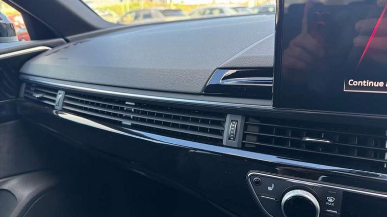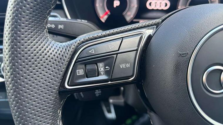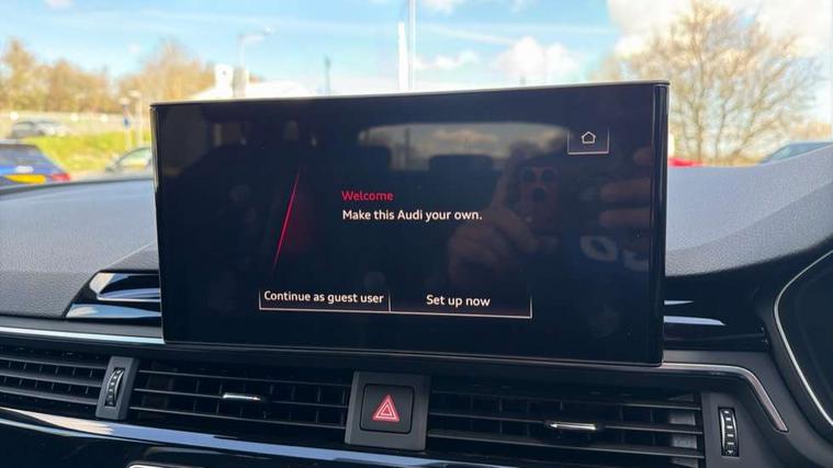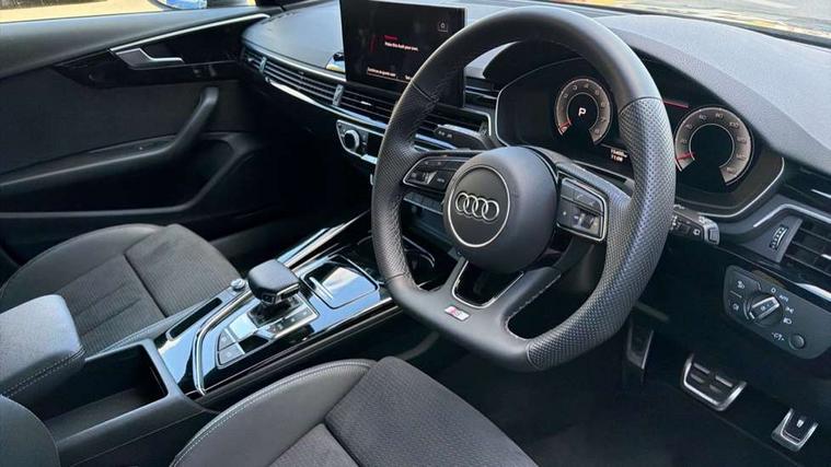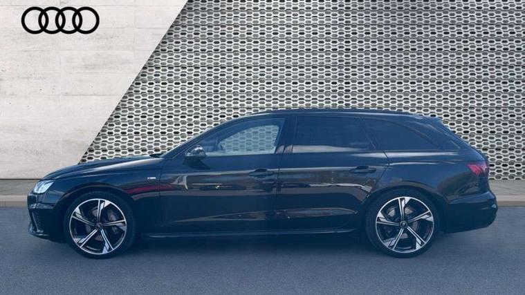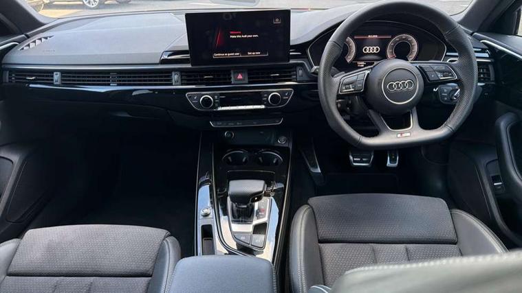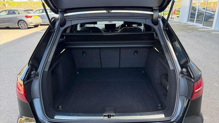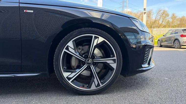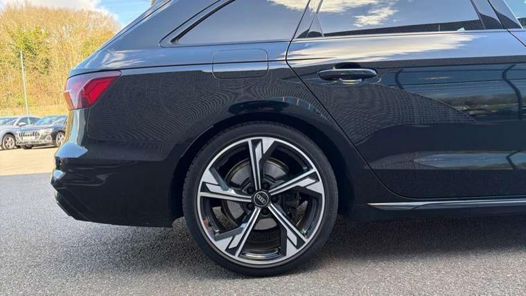 Audi connect safety and service (e-call), Audi connect with Amazon Alexa Integration, Audi drive select, Audi smartphone interface, Audi virtual cockpit, Automatic start-stop system with coasting functionality and efficiency programme, Bluetooth interface, Electromechanical power steering, Email, calendar and text messages displayed via MMI, MMI Navigation plus with MMI touch includes 10.1" high resolution colour MMI display, 3D map, Power operated tailgate, Voice control system, 54 litre fuel tank, Sports suspension lowered by 23mm, 2 USB charging ports, 8 passive loudspeakers, DAB digital radio reception, Audi beam uses LEDs to project the audi logo onto the ground as you exit your A4, Auto dimming rear view mirror, Black Audi rings and black badging (model name in black badging, no engine badging), Body colour door handles, Body colour front spoiler lip, Body colour side sill trim, Electrically folding auto dimming/adjustable/heated door mirrors with LED side indicators and kerb view function for passenger side, Exhaust tailpipes in high dark chrome, Front and rear bumpers with side skirts, Grained matt black side air inlets with matt aluminium silver inlay, High beam assistant, High gloss black B pillar trims and triangular rear door trim, LED headlights with LED rear lights + dynamic rear indicators + headlight adjustment and high beam, turning light + LED daytime running lights, LED third brake light, Privacy glass, Rain and light sensors, Rear diffuser in matt black with trim strip in matt aluminium silver, Rear side wing doors, Rear wiper, RS4 rear spoiler in body colour, S Line badges on the front wings, S Line roof edge spoiler, Variable intermittent front wash/wipe, Windscreen with acoustic glazing, 4 way electric lumbar support for driver and front passenger, 40/20/40 split folding 3 rear seat bench in 3 parts with rear centre armrest, Black cloth headlining, Black perforated leather gearknob, Contrast stitching on seats, steering wheel and gear lever gaiter, Deluxe 3 zone electronic climate control, Door sill trims with aluminium inlay, Electric load area cover, Front and rear head restraints, Front centre armrest, Heated front seats, Illuminated door sill trims with S logo, ISOFIX child seat mounting and top tether, Manual seat adjustment, Single front passenger seat, Stainless steel pedals and foot rest, Black styling pack - A4 Avant, LED Interior light pack - A4/S4, 3 rear seatbelts, 6 airbags - Driver, front passenger, curtain and side windows, Electronic Stabilisation Control (ESC) including ABS, ASR and EDL, Hill hold assist, Multi collision brake assist, Pop-up bonnet for pedestrian protection, Pre sense city, Rear door child safety locks, Seatbelt monitoring, Warning triangle and first aid kit, Anti theft alarm, Anti theft wheel bolts, Central locking, Keyless Go, Piano black finish inlay, 19" 5 arm flag design Audi sport diamond cut alloy wheels in gloss anthracite black, Tool kit, Tyre repair kit,