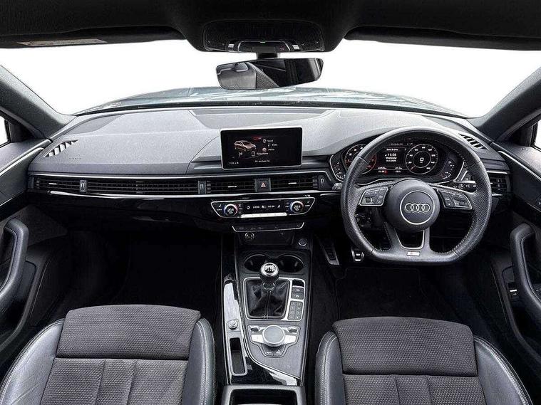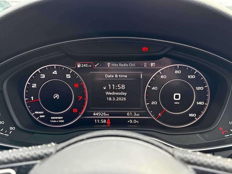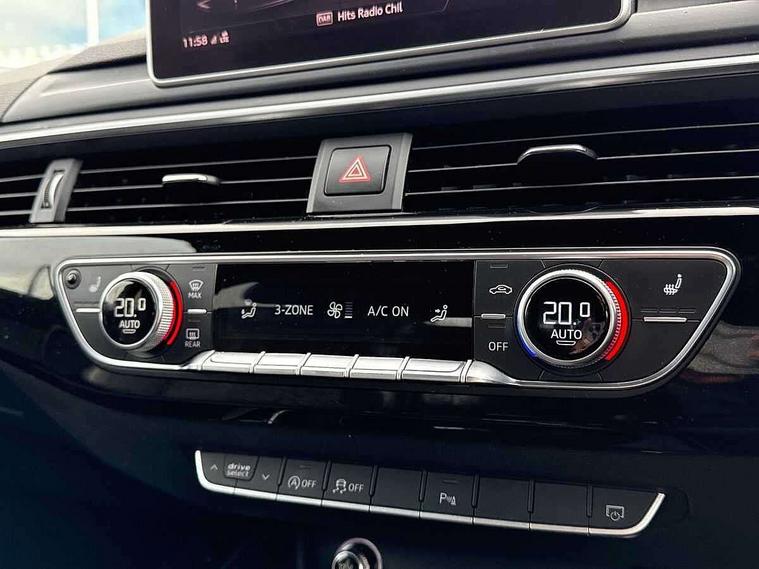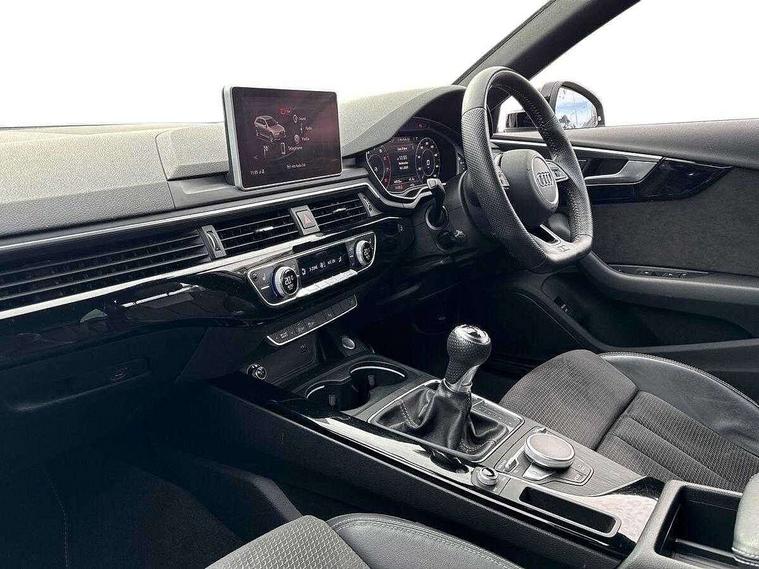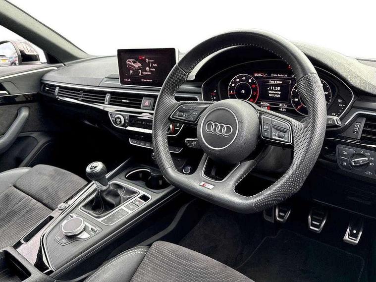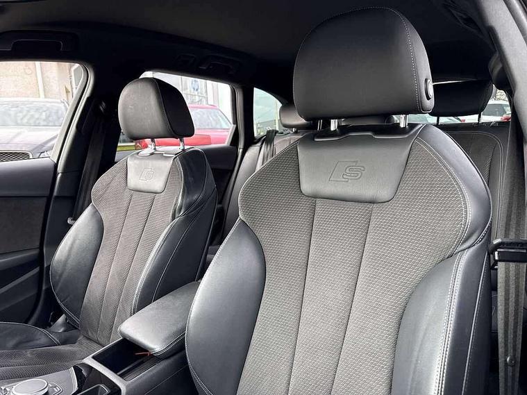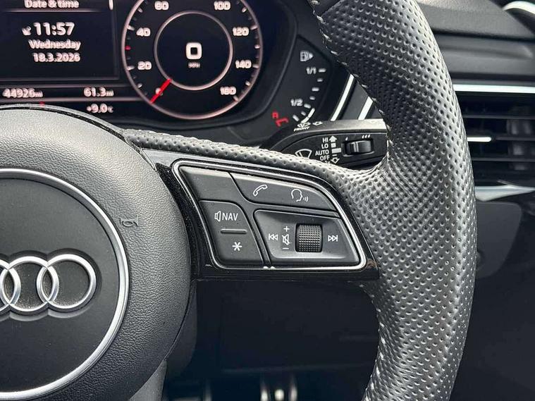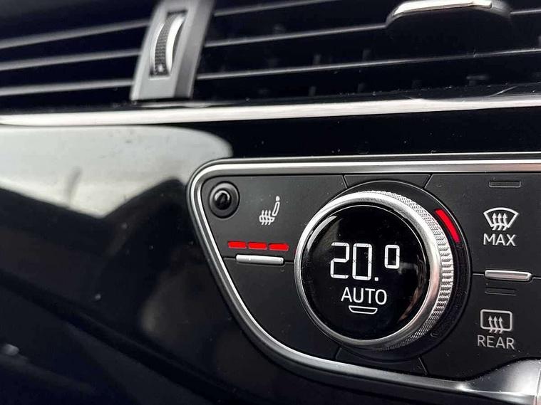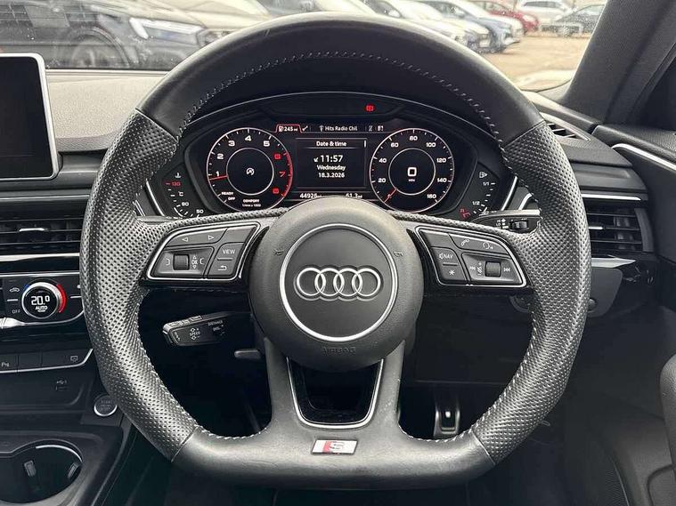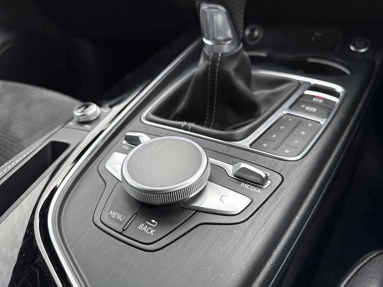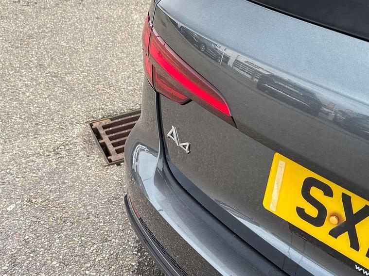 7" Colour driver information system, Audi connect safety and service (e-call), Audi drive select, Audi parking system plus with front and rear sensors, Audi Pre sense collision avoidance, Bluetooth interface, Electromechanical power steering, MMI SD card Navigation, Power opening/closing tailgate, Service interval indicator, Stop/start button, Voice control system, 54 litre fuel tank, 2 USB interfaces and Aux-In jack, DAB digital radio module, Acoustic windscreen, Air inlets in titanium black, Auto dimming rear view mirror, Automatic headlights + automatic windscreen wipers, Blue tinted glass, Body colour bumpers, Body colour door handles, Chrome rolled exhaust, Chrome tailpipe finisher, Electric front windows, Electric rear windows, Headlight range control, High beam assistant, High gloss black door mirrors, High gloss black roof rails, High gloss black triangular aperture at rear door, LED daytime running lights, LED indicators in door mirrors, Privacy glass with front acoustic glazing, Radiator grille and frame in Titanium Black, Rain and light sensors, Rear diffuser in Twilight grey matt, S Style rear spoiler, Titanium black front and rear air intakes, Titanium black window surround, 3 spoke flat bottom high multi-function leather steering wheel, 3 zone climate control, 4 way electric lumbar support for driver and front passenger, 40/20/40 split folding rear seats with rear centre armrest, Black cloth headlining, Contrast stitching on seats, steering wheel and gear lever gaiter, Electric load area cover, Front centre armrest, Front headrests, Front/rear floor mats, Height and reach adjustable steering wheel with full size airbag, Illuminated door sill finishers, Isofix child seat preparation for front passenger/outer rear seats inc passenger airbag deactivation, Jack and tool kit, Luggage compartment carpet, Perforated leather gearknob, Rear headrests, Stainless steel foot rest, Stainless steel pedals, Sunvisors with vanity mirrors, Top tether anchor plate for isofix child seat, Non Smokers pack, S line exterior styling pack - A4 Saloon, 3 point seatbelts on all rear seats, Adaptive driver and front passenger airbags, Electromechanical parking brake, Electronic stabilisation control including ABS, ASR and EDL, Front head airbags, Front seatbelt pretensioners + load limiters, Front side airbags, Multi-Collision braking, Pop-up bonnet for pedestrian protection, Seatbelt warning, Traction control, Tyre pressure warning, Variable restraint system, Warning triangle and first aid kit, Anti theft alarm, Keyless start, Locking wheel bolts, Remote central locking, Thatcham category 1 alarm + immobiliser, MMI radio plus with smartphone interface, Piano black finish inlay, Tyre repair kit,
