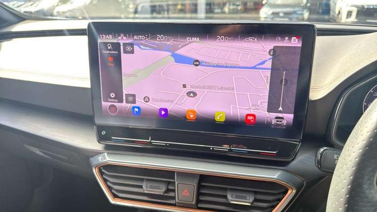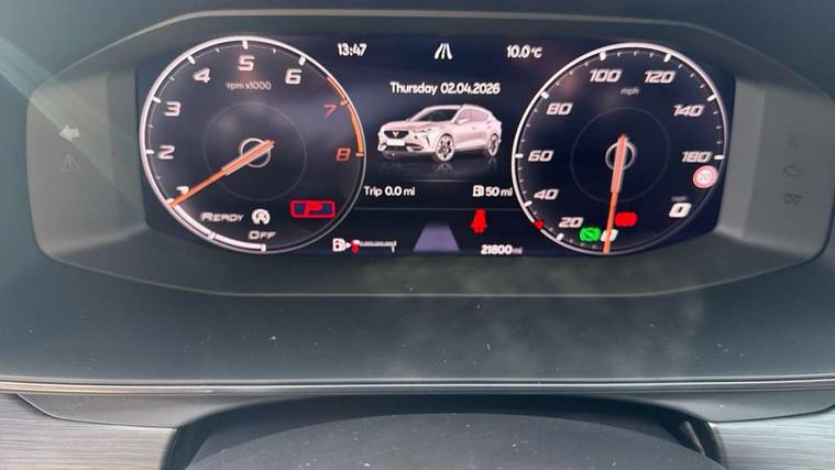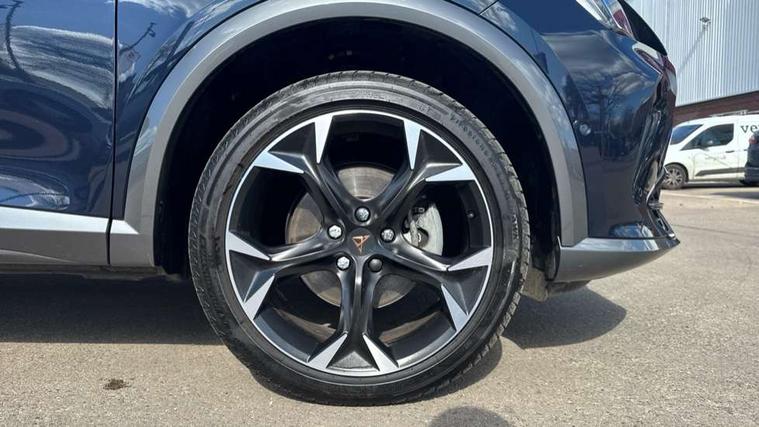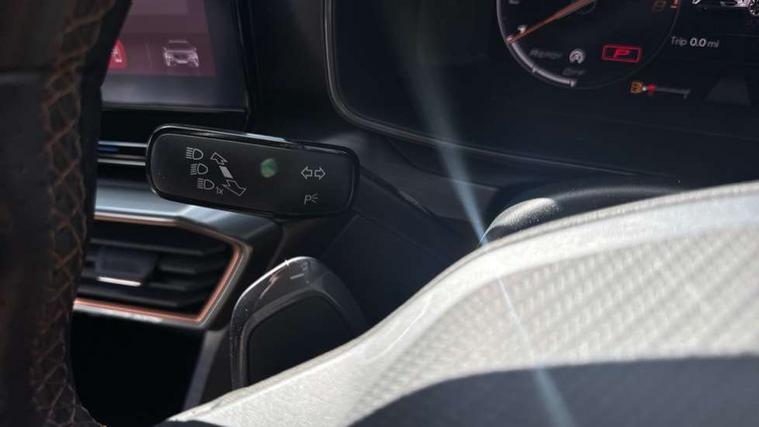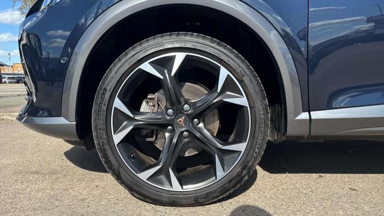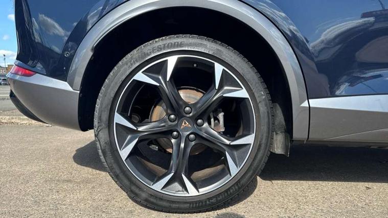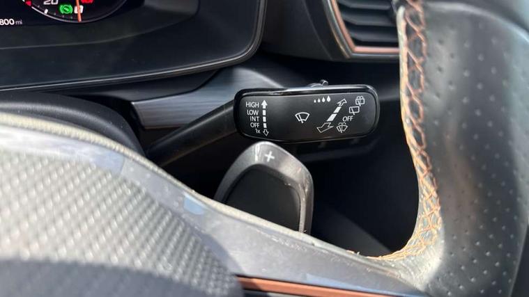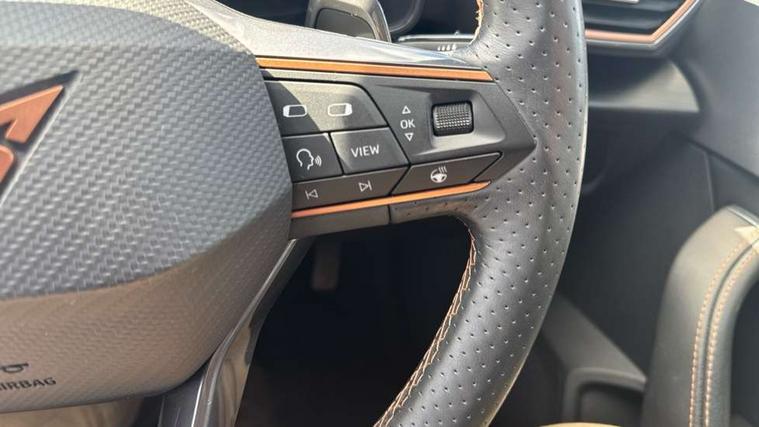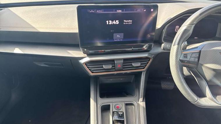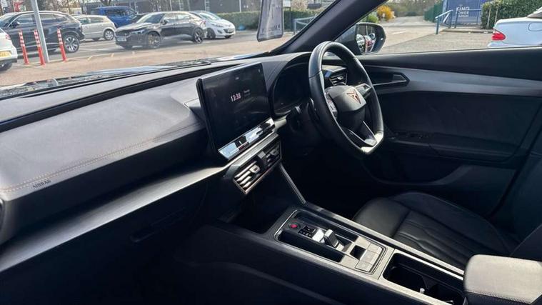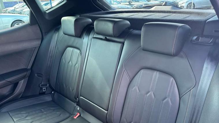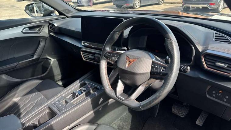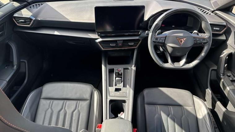 Digital cockpit and configurable dashboard, Driver alert system, Driving profile selection, Forward collision warning with automatic braking, Lane assist, Navigation system with 12'' Touchscreen Display, Park assist (inc front/rear parking sensors), PAS, Predictive adaptive cruise control with speed limiter, Rear view camera, RPM, trip computer, outside temp gauge, instrument light brightness, low fuel warning light, lights on reminder, gearshift indicator, Service interval indicator, Start/stop system with regenerative braking, Voice control system, Wireless apple carplay, Wireless phone charger, Electronic locking differential and dynamic traction support, Standard suspension, 2 front and 2 rear USB type C sockets, Auxiliary input socket, DAB radio, Auto dimming rear view mirror, Body colour door handles, Body coloured bumpers, Dark grey wing mirror, Daytime running light with automatic headlight control and coming home feature, Dynamic headlight range control, Electric front/rear windows, Electrically adjustable heated and folding door mirrors with memory function, Front fog lamps with cornering function, Gloss black roof rails and window surrounds, LED Headlights, LED Taillights with dynamic indicator, Rain sensing wipers, Rear diffuser with black simulated exhaust pipes, Rear side wing doors, Rear wash/wipe, Third brake light, Tinted rear windows, Welcome lights, 12v power supply in centre console, 12V socket, 12v socket in loadspace, 2 front and 2 rear reading lights, 230V socket, 3 seat bench in 2nd row, 60/40 split rear bench seat with armrest and mechanical seat release, Black headlining, Dust/pollen filter, Front and rear head restraints, Front centre armrest, Height/reach adjust steering wheel, Illuminated interior front door sills, Illuminated sunvisor with mirror, Isofix, Leather multi function heated steering wheel with gear shift paddles, Luggage tie-down hooks, Single front passenger seat, Three zone climate control with control panel in rear, Variable luggage/load compartment floor, Wraparound lighting, Genuine Nappa leather Pack - Cupra, 3 point seatbelts on all rear seats, ABS, Brake control system - ESC and brake booster, Child proof door locks, Driver and front passenger airbags with front passenger airbag de-activation, Electronic parking brake, Front and rear disc brakes, Front side curtain airbags, Hill hold control, Public e-call, Seat belt reminder for front and rear seats, Tyre pressure monitoring system, Anti theft alarm system, Keyless entry and start system (KESSY), Locking wheel bolts, Copper and aluminium interior detailing, 19" 'Exclusive' machined sport matte black and silver alloy wheels,