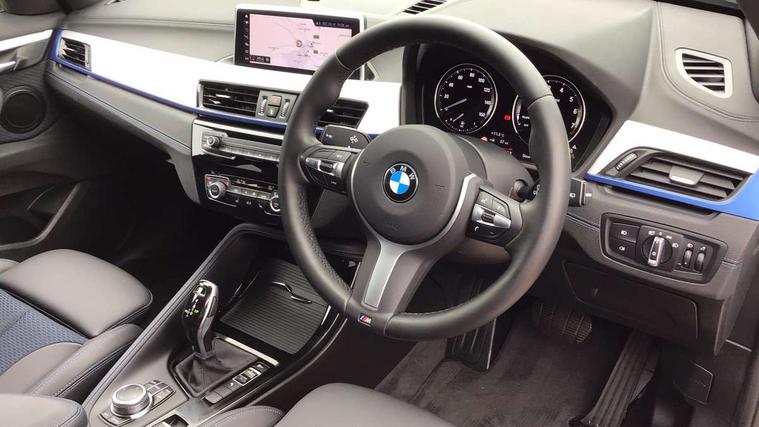 Active Guard incl speed limiting and lane departure functions with auto steering, and front collision warning with brake intervention, Ambient temperature display, Apple CarPlay, Arrow pointers, north up, direction of travel and perspective map displays, Attentiveness assist, Automatic tailgate opening, BMW ConnectedDrive, BMW Navigation system with 8.8" monitor and 800X480 pixel resolution, BMW Online services, BMW remote services, BMW Teleservices, Brake pad wear indicator in front and rear, Characteristic map controlled oil pump system, Cruise control with brake assist, Front axle single joint with specific axle kinematics to minimise drive influences on steering + provide increased rigidity agile driving behaviour, Front/rear park distance control (PDC), Instrument cluster with Black optic display featuring superimposed dials and 5.7" colour display, Instrument cluster with speedometer with miles per hour read out, tachometer and fuel gauge, Integrated hard drive with map data updates via USB interface, Lights on warning by audio warning signal when ignition is switched off, On board computer, Operation by iDrive with direct selection buttons and 8 programmable buttons, Optimum shift indicator, Outside temperature gauge, Park assist system, Personal Profile - automatic lock when driving away selectable, Real time traffic information, Rigidly mounted rear subframe - Multi link construction with separate spring / damper configuration and excellent driving characteristics, Service interval indicator, Servotronic PAS, Tyre puncture warning system, 12V compressor with integrated sealant injection bottle and hose, Aluminium lightweight construction including crankcase, Anti-roll bars, Balancer shaft, Double VANOS, Drive performance control with ECO PRO comfort + sport mode, Electronic differential lock control (EDLC), High precision injection, Performance Control, Seven speed dual clutch automatic transmission (DCT), Stop/start function, Turbocharger with Valvetronic, Twin tube gas filled shock absorbers with degressive characteristic curve, DAB Digital radio, Adjustable headlights, Aero curtain, Automatically dimming rear view mirror, BMW Icon design LED daytime driving lights, Body colour bumpers, Body colour door handles, Body colour door mirrors, Body colour wheel arches and side sills, Direction indicator side lights integrated exterior mirrors, Dynamic brake lights, Electric windows - front and rear, with open/close fingertip control, anti-trap facility and comfort closing, Electrically adjustable door mirrors with aspheric on driver side, convex on passenger side with integrated indicators, Exterior mirrors - electrically folding with anti-dazzle, Follow me home headlights, Front air guide finished in black silver, Front air inlets in matt black with silver finisher matt, Front and rear bumper system, Front bumper air intakes with dark shadow finisher, Green tinted heat protection glazing glass, Headlight beam throw control, Heated door mirrors, Heated windscreen washer jets, High level third brake light, Kidney grille with 14 chrome high gloss black vertical bars, LED direction indicator lights in headlight eyebrow, LED front fog lights, Lightweight engineering, M aerodynamic body styling, M logo designation in side chrome, Model designation, Rain sensor including auto headlights activation, Rear bumper with dark shadow and underbody protection in body colour, Rear fog lights, Rear window aerial, Rear window wash/wipe, Reversing light in rear light cluster, Roof mouldings in matt black, Shark fin antenna, Sill cover matt black with matt silver insert, Single chrome exhaust tailpipe, Two eye face design on light, Visible VIN plate, Welcome lighting, 12v power point in centre console, 2 cup holders in front, 3 rear headrests, 40:20:40 split folding rear bench seat, Anthracite floor mats with M specific designation, Anthracite headlining, Boot light, Centre armrest in 20 degree part rear seat backrest, Child seat ISOFIX attachment for two outer rear seats and front passenger seat with anchorage points, Conditioned based service, Driver and front passenger heated seats, Driver/front passenger seat backrest back with luggage net, Dual zone automatic air conditioning, Four grab handles integrated in roof linings, Front and rear side armrests integrated into door trim, Front centre armrest/sliding cover, Front centre interior light over interior mirror and rear centre automatic interior light when door is opened/ignition switched off or via remote key, Front door sill finishers with M designation, Front sports seats, Front/rear adjustable head restraints, Illuminated glovebox, Leather gearknob/gaiter/handbrake grip, LED ambient lighting in door trim, Luggage area underfloor compartment, Luggage compartment access via recessed handle below tailgate, Luggage compartment lighting, Luggage compartment loading edge with stainless steel insert, M Sport nappa leather 3-spoke steering wheel, Manually adjustment steering wheel column, Multifunction steering wheel, Rear coded belt buckles, Standing free front adjustable armrest and fixed in different positions, Steering wheel gearshift paddles, Sunvisors with vanity mirrors and ticket pocket, Extended lights pack - X1, Extended storage package - X1, ABS/EBD, Audio/visual collision warning system, Automatic Stability Control (ASC), Battery safety cut-off, BMW emergency call, Brake drying, Brake energy regeneration, Braking readiness, Collision mitigation braking system, Cornering brake control (CBC), Crash Sensor - activates hazard/interior lighting + unlocks doors, Driver/Front Passenger airbags, Driver/front passenger side airbags, Dynamic brake control, Dynamic stability control + (DSC+), Dynamic Traction Control - DTC, Electronic parking brake, Front and rear head airbags, Front passenger airbag deactivation, Front seatbelt force limiters, Front ventilated disc brakes, Hill start assist, Pyrotechnically pre-tensioned front seatbelts, Rear disc b