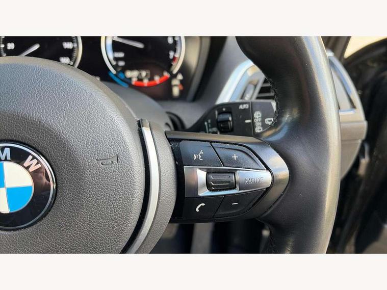 Automatic start/stop system, BMW Online services, BMW remote services, BMW Teleservices, Brake force display, Brake pad wear indicator in front and rear, Check Control warning system for monitoring of lights and door/luggage compartment open warning, Eco pro mode, Instrument cluster with speedometer with miles per hour read out, tachometer and fuel gauge, Lights on warning by audio warning signal when ignition is switched off, Oil temperature display via on board computer in instrument cluster, On board computer - average speed+fuel consumption, service interval, clock/date, odometer/trip meter, outside temperature display and ice warning, On board diagnostics, Optimum shift indicator, Personal Profile, Real time traffic information, Servotronic PAS, Speed limiter, Battery age recognition function, Drive Performance Control, BMW professional radio with CD player, DAB Digital radio, Harman/Kardon loudspeaker system, Body colour door handles, Body colour front and rear bumpers, Body colour mirror caps, Body colour roof mouldings, Clear lenses direction indicator lights, Dark chrome exhaust tailpipe, Darkened rear lights with LED light bars, Daytime driving lights, Direction indicator side lights in exterior mirrors, Dynamic brake lights, Electrically adjustable heated door mirrors and washer jets, Follow me home headlights, Front and rear bumper system with replaceable deformation elements, Front and rear electric windows with open and close fingertip control, anti trap facility and comfort closing, Green tinted heat protection glazing, Headlight beam throw control, Heated windscreen washer jets, High gloss black kidney grille with black slats, High level third brake light, Lightweight engineering, M aerodynamic bodystyling, Nearside reverse light in rear light cluster, Offside rear fog lights, Rain sensor including auto headlights activation, Rear window aerial, Rear window wiper, Shark fin antenna, Sun protection glass, Visible VIN plate, Welcome lighting, 12V power socket in centre console, 12V power socket in passenger footwell, 60/40 split folding rear seat, Ambient lighting - switchable BMW classic orange/ cold white LED, Anthracite headlining, Anthracite Velour front and rear floor mats, Conditioned based service, Door sill finishers with illuminated M designation, Four grab handles integrated in roof lining, Front and rear side armrest integrated into door trim, Front folding sliding armrest with storage compartment, Front head restraints, Front sports seats with electric side bolster adjustment, Front storage compartment in centre console and in door trim, Front/rear courtesy lights with soft on/off dimming, Glove box handle with chrome surround, Glovebox, Interior light in front centre interior mirrors and rear centre auto interior light activation when door is opened when ignition switched off, Isofix child seat for two outer rear seats, Leather gear knob and handbrake grip, Luggage compartment access via BMW roundel, Luggage compartment lighting, M sports multi function leather steering wheel, Manually adjustable steering column, Multi-function controls for steering wheel, Rear folding head restraints, Sunvisors with vanity mirrors and ticket pocket, Two cupholders with sliding cover and inlay mat, Two sills lashing eyes in the luggage compartment, 3 point seatbelts on all seats, front pyrotechnic belt tensioners, stopper and belt force limiters, rear coded belt buckles, Active differential brake (ADB), electronic differential lock in DSC-OFF mode, Airbags - Front driver and passenger, front and rear head, front side, curtain head protection, Anti lock braking system (ABS) with brake assist, Automatic Stability Control (ASC), Battery safety cut-off, BMW emergency call, Brake drying, Brake energy regeneration, Braking readiness, Cornering brake control (CBC), Crash sensor activating central locking release, hazard warning lights, Driver and front passenger seat belt security check, DSC+, Dynamic brake control, Dynamic Traction Control - DTC, Front passenger manual airbag deactivation, Front ventilated brake disc, Hill start assist, M Sport braking system, Rear brake discs, Rear child proof door locks, Side impact protection, Twin horns, Tyre pressure monitoring system, Warning triangle and first aid kit, Automatic drive away locking facility, Central locking switch for all doors, fuel filler cap and luggage compartment, Locking wheel bolts, Remote central locking with two Integrate key, one button for opening and closing all lock, open and close window, button for open luggage compartment, Remote control integrated key with blue inset, Start/stop button with comfort go keyless engine start and auto start stop deactivation button, Thatcham Cat.1 alarm and immobiliser, Reduced rolling resistance tyres, Run flat tyres,