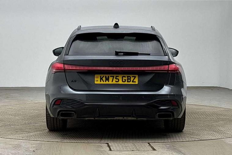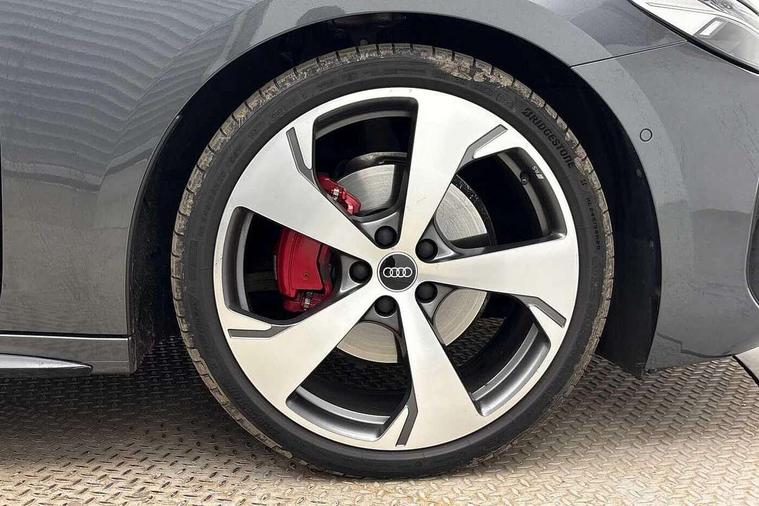 Adaptive cruise control, Advanced driver attention and fatigue montior, Audi application store, Audi assistant, Audi connect emergency call and service, Audi drive select, Audi virtual cockpit plus with 11.9" OLED colour display, Automatic start/stop system with coasting functionality, Camera based traffic sign recognition, Intersection assist, Lane change assistant with exit warning system, rear cross traffic alert and rear turn assist, Lane departure warning with emergency assist, MMI 10.9" front passenger touch display, MMI navigation plus with high resolution 14.5" OLED touchscreen colour display, Park assist plus, Parking system plus with 360 display, Progressive steering with servotronic, Smartphone interface, Swerve assist and turn assist, Top view camera, Traffic sign based speed limiter, Sports suspension lowered by 20mm, 2 USB-C ports in both the front and rear, Audi sound system impressive sound with 8 loudspeakers including centre speaker and subwoofer, 6-channel amplifier with a total output of 180 watts, DAB digital radio reception, Smartphone compartment with wireless charging, Aluminium window trims, Auto dimming rear view mirror, Black door handles, Black roof rails, Dark chrome-plated tailpipe trims, Door mirrors - electrically adjustable, heated, folding and auto dimming on both sides, Front and rear electric windows, Front door sill trims with aluminium inlays, illuminated with 'S' logo, Headlight cleaning system, High beam assist, LED daytime running lights, LED rear lights pro incl. dynamic rear indicators and illuminated light strip with animated coming and leaving home function, LED third brake light, Matrix LED headlights with eight light signatures selectable via the MMI or the myAudi app, Privacy glass, Rear and side windows with heat insulating glass, Rear side wing doors, Rear wash/wipe, S Line badges on the front wings, S line bumpers, radiator grille and diffuser in phantom black and diffuser insert in matt anthracite, White rhombus logo projection light in exterior mirrors, Windscreen with acoustic glazing, 3 rear headrests, 3 seat rear bench, 3 spoke leather steering wheel with multi-function buttons with touch control, flattened on top and bottom, with S badging and contrast stitching, 3-zone automatic climate control, 40:20:40 split folding rear seat bench with centre armrest and cup holders, Comfort front centre armrest, Electrically adjustable front seats, Front and rear floor mats, Front sport seats with integrated headrest and S embossed logo, Headlining in black cloth, Heated front seats, i-Size child seat mounting on the front passenger side and outer rear seats, i-Size and top tether on the outer rear seats, Luggage compartment lid, electrically opening and closing, Manual steering column height and depth adjustment, Memory function for driver seat, Single front passenger seat, Stainless steel pedals and footrest, Steering wheel grips in perforated leather and shift paddles, Ambient lighting package plus - A5, Black styling package plus - A5, 3x3 point rear seat belts, Acoustic vehicle alerting system, Convenience key with safelock, Driver airbag, Electric child safety locks, First aid kit with warning triangle and vests, Front emergency brake assist, Front passenger airbag, Front passenger airbag deactivation, Hill hold assist, Occupant detection in rear seat area, Proactive passenger protection system for front, sides and rear, Red brake calipers, Seat belt monitoring with rear seat occupant reminder, Side airbags in front and rear with head airbag system and front interaction airbag, Tyre pressure loss indicator, Anti theft alarm, Anti-theft wheel bolts, Keyless Go, Accent surfaces and control buttons in gloss black, Black dashboard with contrast stitching, Softwrap in Dinamica with contrast stitching, Upper and lower interior elements in dinamica microfiber, 20" 5 arm fold design Audi sport alloy wheels in silk matt grey and gloss turned finish, Tyre repair kit,