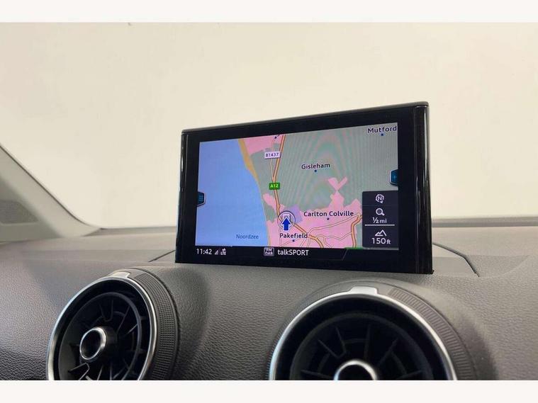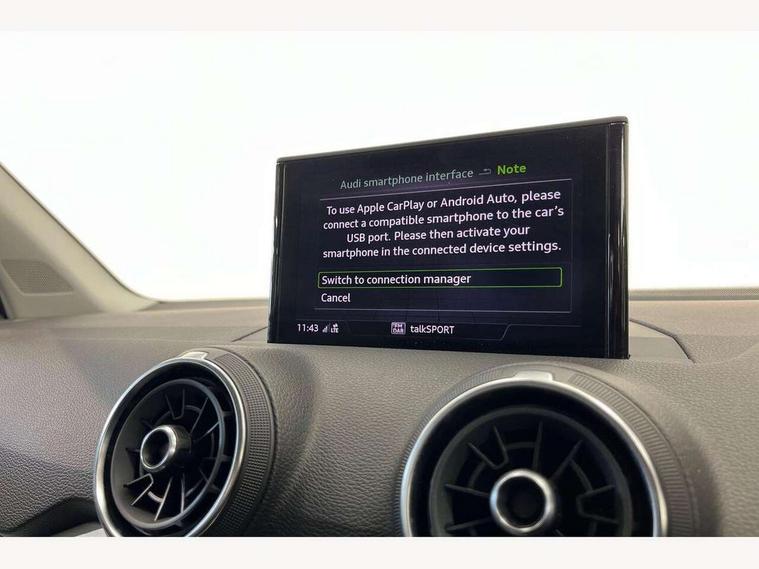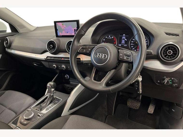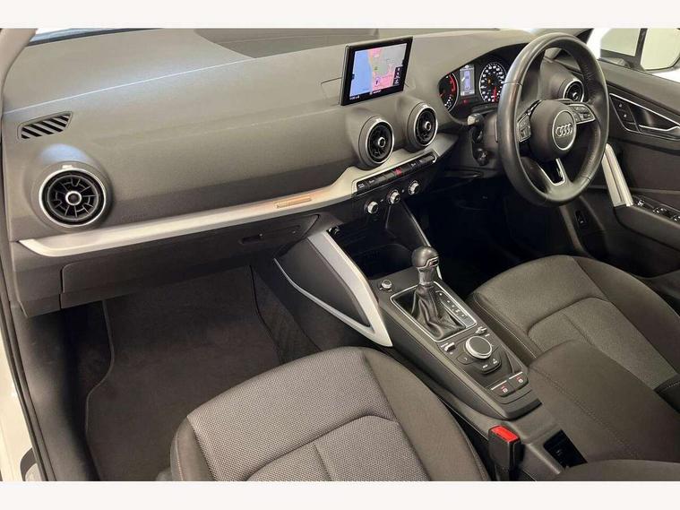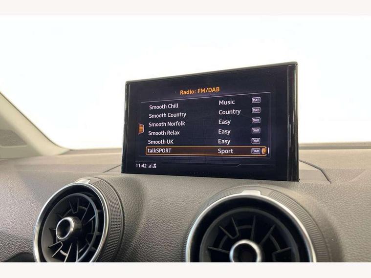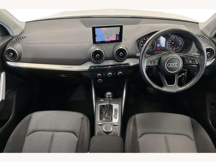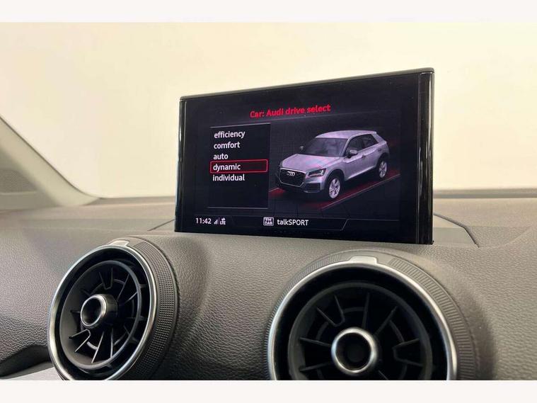 Audi drive select, Audi smartphone interface, Automatic start/stop system with recuperation, Bluetooth interface includes bluetooth audio streaming, Cruise control, MMI - Multi Media Interface control system, MMI SD card integrated nav with 3D map display, dynamic route guidance with TMC, MMI search, natural voice recognition and myAudi special destinations, Power operated tailgate, Progressive steering, Service interval indicator, Dynamic suspension, 2 x SDXC card reader, Audi music interface - apple iPod, apple iPhone, USB storage media, compatible MP3 players, 2 x USB charging points and 1 x Aux-in, CD Drive, DAB digital radio and AM/FM radio, MMI radio plus with 7" colour MMI screen and MMI controller, Air inlet in manhattan grey metallic, Black window trims, Body colour door mirrors, Chrome exhaust tailpipe, Electrically adjustable and heated door mirrors with integrated LED side indicators, Front and rear electric windows, Front underbody guard and rear diffuser trim in selenite silver, Front windscreen with grey tinted sunband, Halogen headlights including headlight range adjustment, High gloss black radiator grille, Interior mirror, LED indicator lights, Manual folding door mirrors, Rain and light sensors, Rear wiper, Side skirts in manhattan grey, Wheel arch trims in manhattan grey, 60/40 split folding rear seat bench, Door sill trims with aluminium inlay, Electronically operated child locks, Front centre armrest, Front headrests, Front sports seats, Front/rear floor mats, Height/reach adjust steering wheel, ISOFIX child seat mounting for front passenger with airbag deactivation and outer rear seat including top tether attachment point for outer rear seats, Manual seat adjustment including seat height adjustment for front seats, Storage compartments - Glovebox, cupholder compartment in centre console, storage compartment in rear centre console, front and rear door pockets, Three rear headrests, Titanium grey cloth headlining, Non smoking pack - Q2, 3x3 point rear seatbelts, 6 airbags - Front, curtain and front side airbags, Electromechanical parking brake, Electronic stabilisation control including ABS, ASR and EDL, Extended and proactive pedestrian protection, Hill hold assist, Multi collision brake assist, Pre-sense front with pedestrian recognition, Seatbelt monitoring, Tyre pressure warning light, Warning triangle and first aid kit, Anti theft alarm, Anti theft wheel bolts, Central locking system with remote control key, Aluminium interior element,