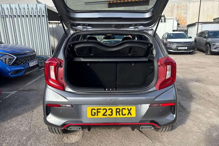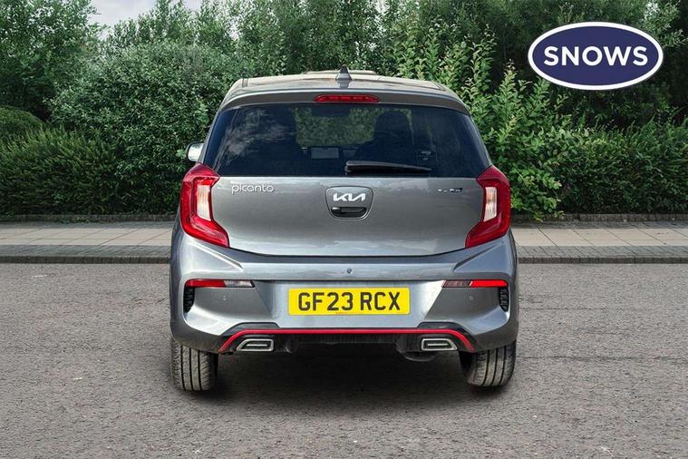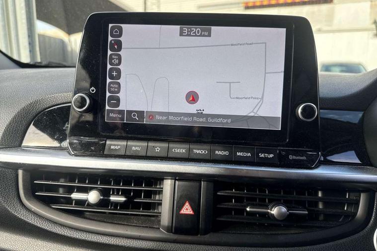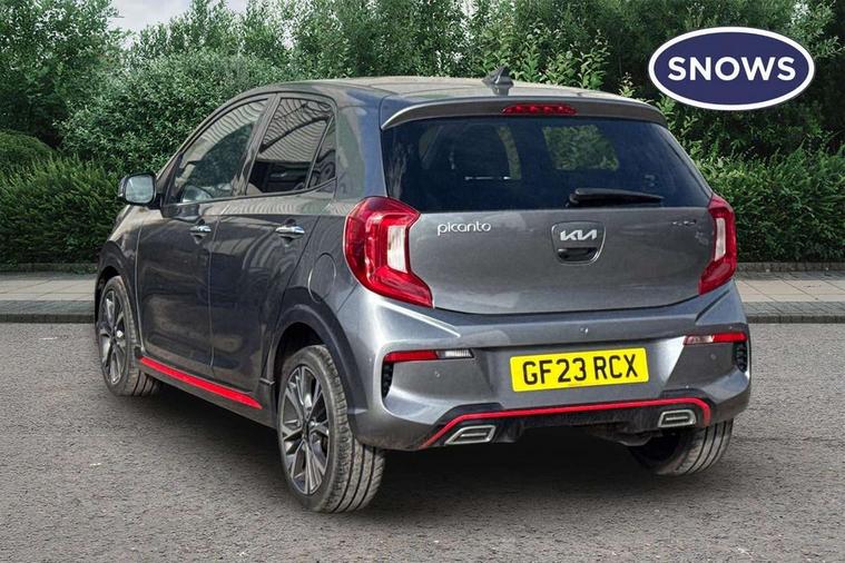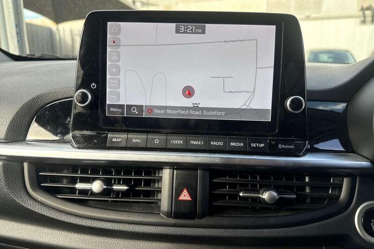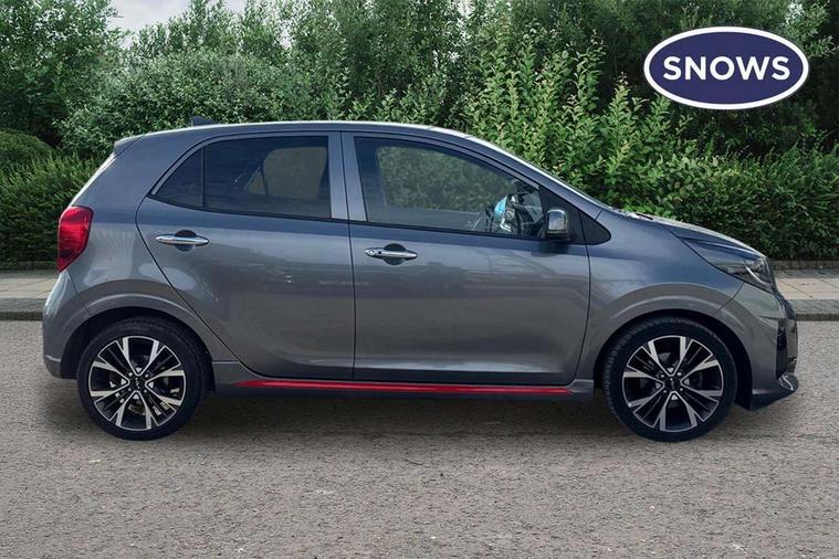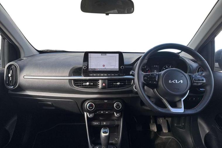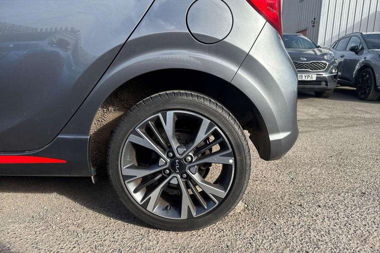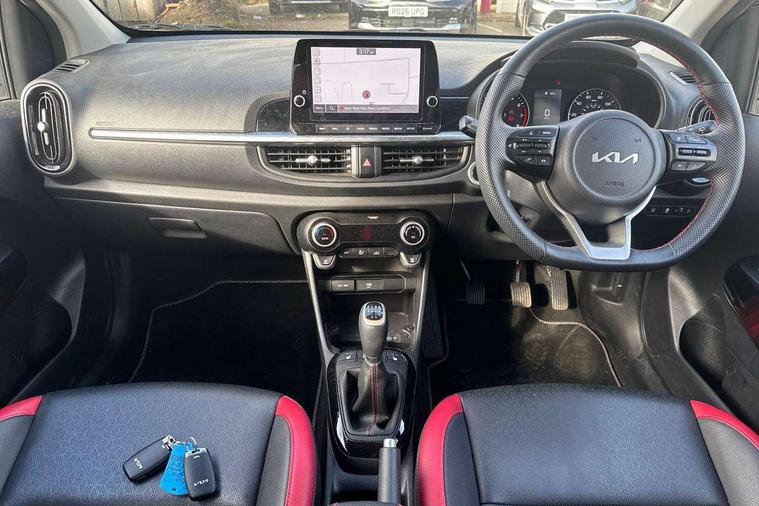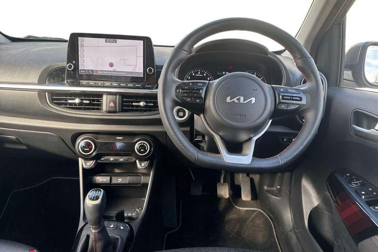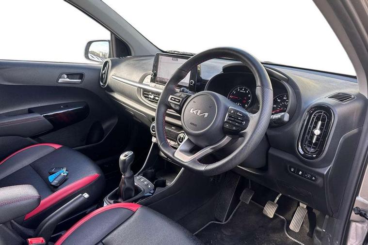 8" touch screen satellite naviagtion with RDS and DAB with telematics, Apple car play/Android Auto with voice control, Cruise control + speed limiter, Emergency call service, Emergency stop signalling system, External temperature gauge, Kia Connect (UVO), Motor driven power steering, Rear parking sensors, Reversing camera system with dynamic guidelines (Integrated into centre fascia screen), Tachometer, Trip computer, Wireless Smartphone charger, 6 speaker audio system, Bluetooth with music streaming, Steering wheel mounted controls, USB ports for connection of a media device, Automatic headlight control system, Bi-function projection headlights, Black beltline mouldings, Black grille with silver surround, Body colour B pillars, Body colour bumpers, Body colour side sill mouldings, Body coloured mirrors and chrome exterior handles, Day/night rear view mirror, Electric adjustable/heated/folding door mirrors with LED indicators lights, Front and rear electric windows with drivers's auto up/down function, Front fog lights, Headlamp levelling, Heated rear window, High mount brake light, LED daytime running lights, LED rear fog lights, Privacy glass - Rear windows and tailgate, Rain sensor, Rear side wing doors, Rear wash/wipe, Speed variable front wipers, Sports front and rear bumpers with gloss black skid plates twin exhaust, Tinted glass, Visible VIN plate, Welcome and follow-me home light functionality, 1 x rear coat hook, 12V power point front, 2 seat bench in 2nd row, 3 x passenger assist grips, 60/40 split/folding 2nd row of seats, All round height adjustable headrests, Automatic air conditioning, Black and red accents front door armrest, Centre Console with Storage Box and Sliding Armrest, Cupholders in centre console, D-cut steering wheel with red stitching, Driver and front passenger sunvisors with driver's side illuminated vanity mirrors, Driver seat height adjust, Faux leather upholstery, Front cabin lights, Glovebox, Heated front seats, Heated steering wheel, High gloss lower centre fascia trim, door armrest and air vents, ISOFIX Child seat top tethers and anchor fixings, Leather trimmed steering wheel and gearshift, Luggage area light, Luggage area parcel shelf, Passenger front seatback pockets, Satin chrome interior door handles, Single front passenger seat, Slide/reclining front seats, Tilt adjustable steering wheel, Advanced Driver Assistance Pack - Picanto, 2 x 3-point rear seatbelts, ABS/EBD, Automatic unlocking of doors in case of impact, Dual front airbags, ESC + BAS + VSM + HAC, Front passenger airbag cut-off switch, Front seatbelt height adjusters, Front seatbelt pretensioners + load limiters, Hill hold control, Knee airbags, Rear child proof door locks, Seatbelt warning, Side impact protection, Torque vectoring brake based and straight line stability (SLS), Traction control, Twin curtain airbags, Twin front side airbags, Tyre pressure monitoring system, Anti theft alarm, Engine immobiliser, Locking wheel nuts, Smart key with engine start/stop button, 16" alloy GT-Line wheels, Tyre mobility kit,