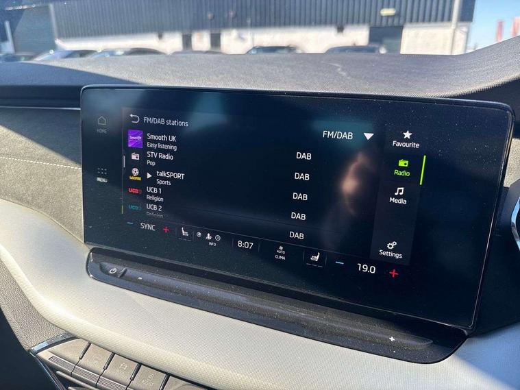1x USB Type C port in rear view mirror (charging only), 2x USB Type C ports in rear of front centre armrest (charging only), Bluetooth system, Boot lid release from inside vehicle (electrically), Columbus satellite navigation with 10" touchscreen display, Driver fatigue sensor, eCall emergency system, Electro-mechanical power steering, Front and rear parking sensors with manoeuvre assist, Front assist system, Speed limiter, Turn Assist, Virtual Cockpit - 10.25" digital display, Voice control system, Wireless SmartLink for Apple Car Play, 2x USB Type C ports (for charging and data transfer), 8 Speakers, DAB Digital radio, Aero front windscreen wipers with intermittent function, Auto dimming rear view mirror, Body colour door mirrors and handles, Chrome grille surround, Chrome strip in lower front bumper, Chrome window surround, Electric front and rear windows, Headlight washers, Heated rear windscreen, High level third brake light, Ice scraper in fuel cap, Rain and light sensors, Rear fog light on one side, Rear privacy glass, Rear side wing doors, 3 rear headrests, 3 seat bench in 2nd row, 4 foldable roof handles, Chrome inner door handles, Front centre armrest, Front head restraints, Grey headlining, Heated front seats, Illuminated glovebox, Leather trimmed gearshift lever, Luggage compartment lighting x1 light, Microsuede cloth upholstery, Parcel shelf - folding, Satin black microsuede with grey stitching in padded dash panel, Single front passenger seat, Sunglasses storage, Textile floor mat set, Ticket holder, Two-spoke leather multi function steering wheel with paddles, Umbrella in door panel, Unsplit rear bench seat and split folding backrest, 3 point front/outer rear seatbelts+pre-tensioners, Alarm with interior monitoring, tilt sensor and back up horn, Automatic door unlocking in case of crash, Automatic fuel cut off in case of crash, Automatic warning lights in case of emergency braking, Curtain airbags and front side airbags, Driver and front passenger airbags, Drivers knee airbag, Electronic parking brake, ESC including ABS, EBV, MSR, ASR, EDS, HBA, DSR, Front central airbag, Hill hold control, Hill start assist, ISOFIX on front passenger seat and outer rear seats, Manual rear child locks, Passenger airbag deactivate switch, Pro active services, Rear disc brakes, Two tone horn, Tyre pressure monitor, Visual and acoustic seat belt reminder, Warning reflectors in front door, Door locks with immobiliser, Keyless entry and start/stop including rear doors, Remote central locking, Chrome air vent surrounds, Silver squares haptik decorative inserts,