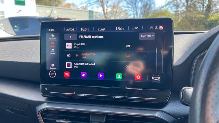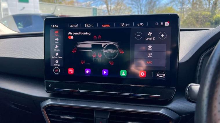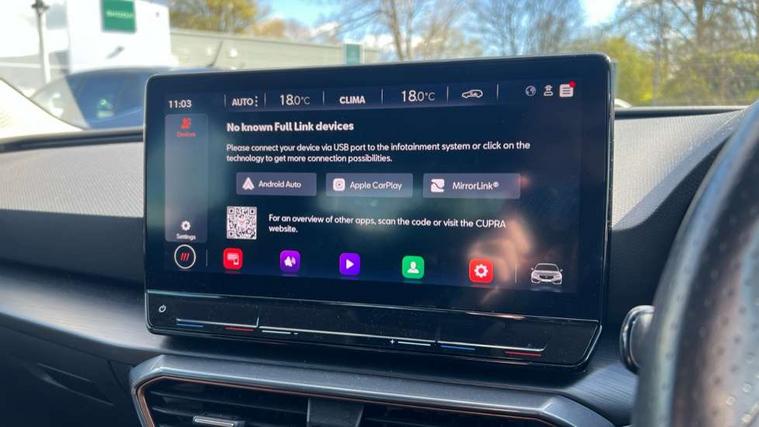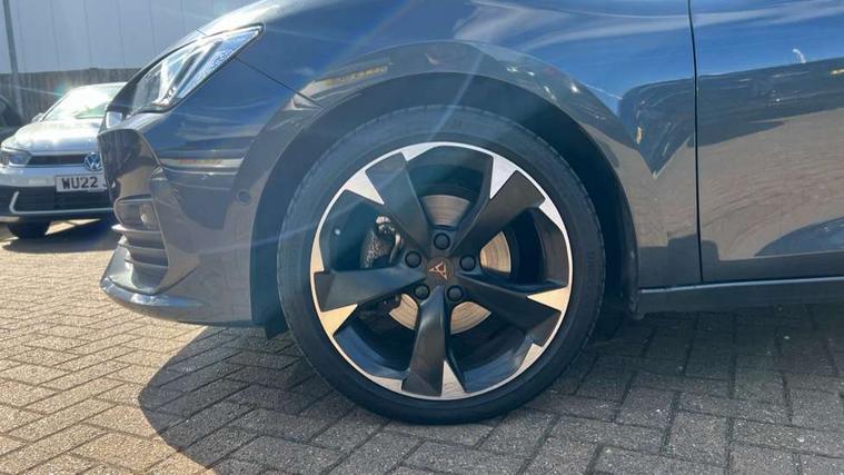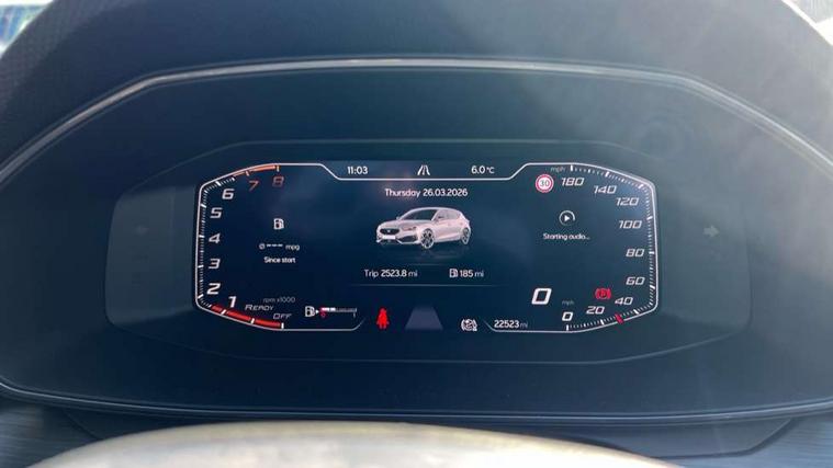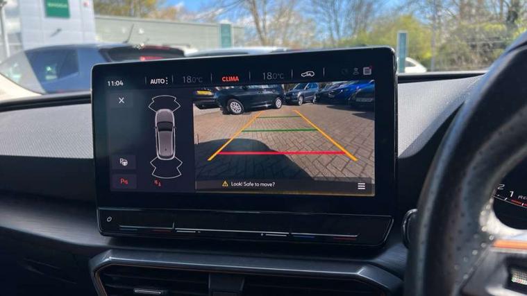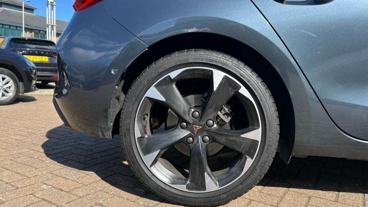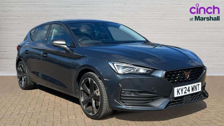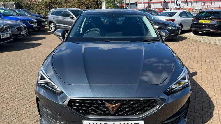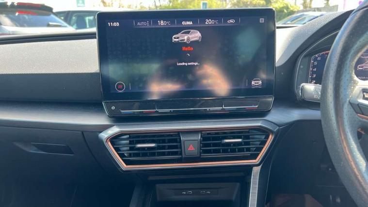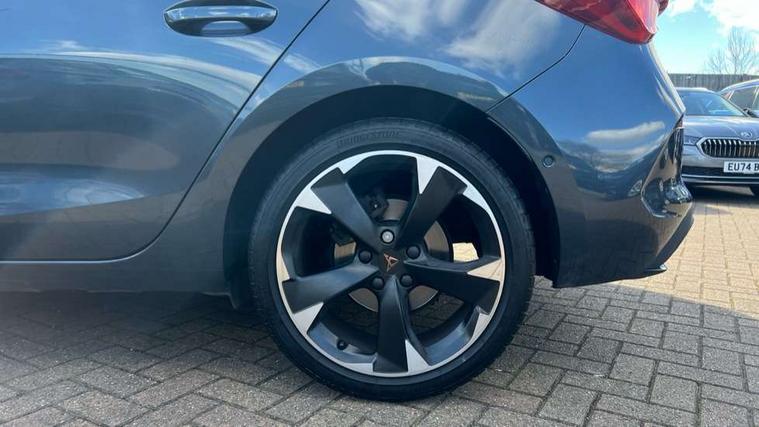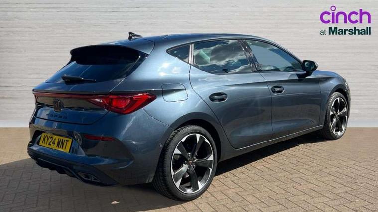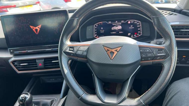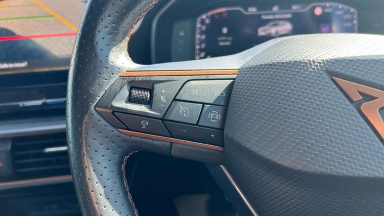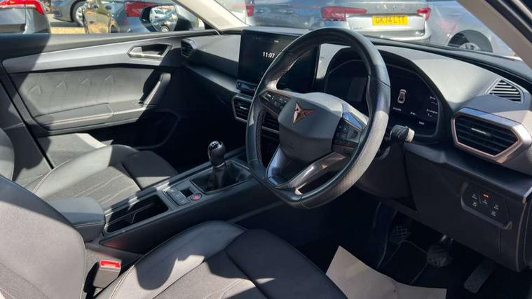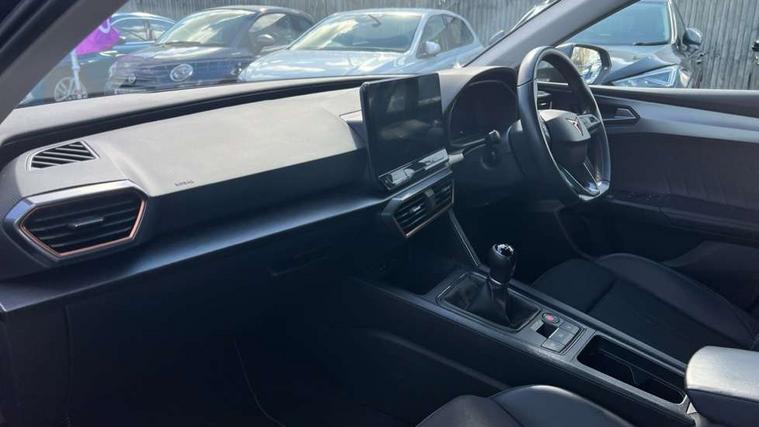 CUPRA drive profile selection with (Comfort/Sport/Individual), throttle response and gearshift mode, Digital cockpit, E-call, Electro mechanical speed sensitive power steering, Four x USB Type C ports (2 in front and 2 in rear), Front assist with forward collision warning braking reaction to vehicles, pedestrians and cyclists, Full link smartphone integration with Mirror Link, wireless Apple CarPlay and wired Google Android Auto, Lane assist, Lockable tailgate, Park assist (inc front/rear parking sensors), Rear view camera, RPM, trip computer, outside temp gauge, instrument light brightness, low fuel warning light, lights on reminder, gearshift indicator, Service interval indicator, Start/stop system with regenerative braking, Wireless phone charger, Sports suspension, Auxiliary input socket, Auto dimming rear view mirror, Body colour door handles, Body coloured bumpers, Cupra sports bumpers, Dark tinted rear windows, Electric front/rear windows, Electrically adjustable, heated and folding door mirrors, LED front fog lamps with cornering function, LED headlights with dynamic turn signals, tail lights, rear fog lights with rear coast to coast lighting, Rain sensing wipers, Rear diffuser with twin exhaust pipe on each side, Rear side wing doors, Rear wash/wipe, Separate daytime running light with automatic headlight control and coming home feature, Third brake light, 12v power supply in centre console, 3 seat bench in 2nd row, 5 headrests, 60/40 split rear bench seat with armrest, Ambient lighting with glovebox, footwell and single monocolour, Cupra Leather flat bottomed, perforated steering wheel, Driver/passenger manual seat height adjustment, Folding boot cover, Front and rear reading lights X 4, Front centre armrest, Front seats manual lumbar adjustment, Grey headlining, Height/reach adjust steering wheel, Illuminated interior front door sills, ISOFIX points in outer rear seats with top tether anchorage points, Jack and tool kit, PVC/Cloth upholstery with copper stitching, Single front passenger seat, Sports seats, Sunvisors with illuminated mirror, Three zone climate control, Media system plus with navigation pack - Leon Cupra, Safety and driving pack (M) - Cupra leon, 3 point seatbelts on all rear seats, ABS, Brake control system - ESC and brake booster, Child proof door locks, Cupra black brake calipers, Driver and front passenger airbags with front passenger airbag de-activation, front side and curtain airbags, Electronic parking brake, Extended safety system - seat belt tensioner, window closure and hazard lights, Hill hold control, Rear disc brakes, Seat belt reminder for front and rear seats, Tiredness recognition system, Tyre pressure monitoring system, Anti theft alarm system with interior monitoring in cab, backup horn and towing protection, KESSY Advanced - Keyless start, keyless entry, Locking wheel bolts, Chrome and copper interior detailing, 18" Machined sport black and silver alloy wheels with 92Y tyres,