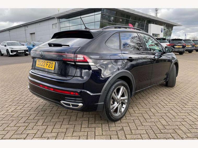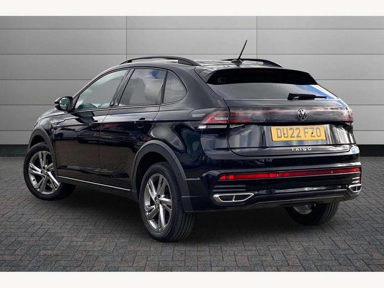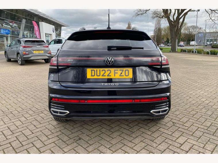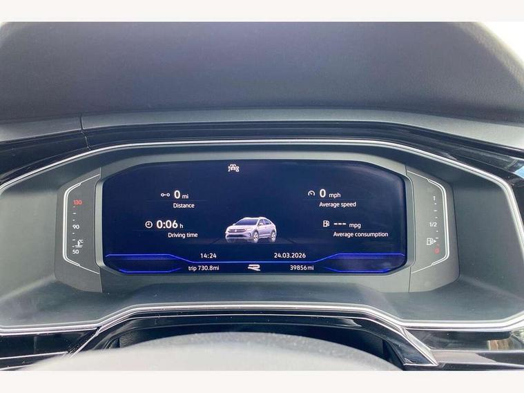 Adaptive cruise control, App-Connect including App-Connect Wireless, Digital cockpit pro - 10.25" high resolution TFT dash display screen with customizable menus and information, Driver alert system, Driving profile selection, e-Call (emergency call), Power Steering, Travel assist including emergency assist, Washer fluid level indicator, Wireless Charging including Bluetooth, Start-stop system with battery regeneration (recuperation - energy recovery during braking), XDS electronic differential lock for improved traction and handling, Digital radio reception (DAB+), Diversity antenna for FM reception, WeConnect plus, Ambient lighting with logo projection, Aspherical driver's exterior mirror, Body coloured bumpers, Body coloured exterior mirror housings and door handles, Bumpers in R-Line style, Electric windows, External USB type C socket and charging sockets, Front fog lamps with cornering function, Front scuff plates with R-Line logo, Headlight range control, LED headlamps, LED rear combination lamp, LED third brake light, Left convex exterior mirror, Power folding adjustable/heated exterior mirrors and front passenger exterior mirror lowering function, Rear fog light on one side, reversing light on both sides, Rear wash/wipe with intermittent wipe setting, 12V socket in centre console, 2 front reading lights, 3 rear head restraints, Air care climatronic air conditoning system with active combination filter and 2-zone temperature control, Black carpets, Black roof lining, Child seat anchor for child seat system i-Size, 2x top tether and child seat anchor in front on front passenger side, Chrome bezel for instrument cluster, vents, door handles + gear shift, Driver and front passenger seat height adjustment, Front + rear carpet mats, Front centre armrest, Front footwell illumination, Front sports comfort seats, Height and reach adjustable steering wheel, Interior ambient lighting and surround lighting, Karoso artvelours cloth upholstery, Leather trimmed gear knob, Leather wrapped multifunction steering wheel, Luggage compartment floor, Luggage compartment light, Lumbar support for driver's and front passengers seat, Seat covers in grey + titanium black, Split folding backrest with centre armrest and unsplit rear seat bench, Stainless steel pedals, Storage compartment under front seats, Sun visors with illuminated vanity mirrors, Chrome Package - Taigo, Drivers assistance pack - Taigo, Light and Sight pack including High beam assist - Taigo, 2 x 3-point seatbelts/outer rear seats with ECE label, 3-point seat belts in front with pretensioner and height adjustment, 3-point seatbelt for centre rear seat, Driver and front passenger airbags with front passenger airbag de-activation, front side and curtain airbags, Driver and front passenger safety-optimised head restraints, Electronic stability control, Extended and predictive pedestrian/ cyclist protection, Front and rear disc brakes, Front curtain and side airbags with center airbag, Hill start assist, Single tone horn, Tyre pressure loss indicator, Anti-theft alarm system with interior monitoring, backup horn, and towing protection, Anti-theft wheel bolts, Grey anodised matte decorative inserts in dash and front door panels, Low rolling resistance tyres,