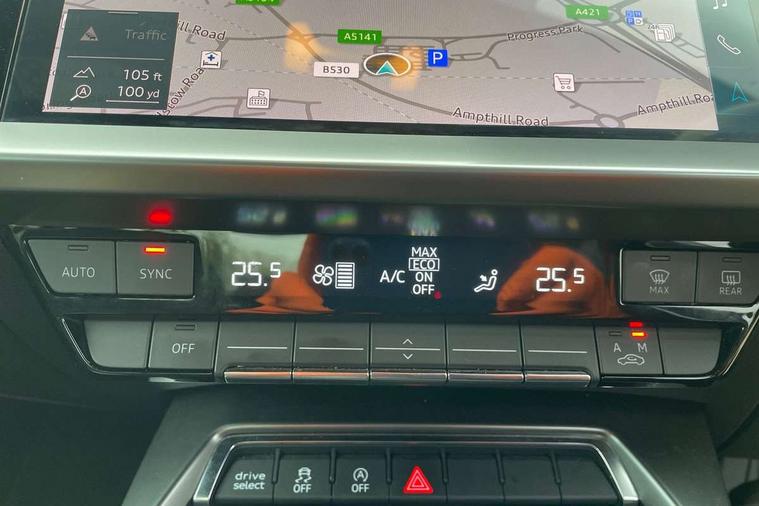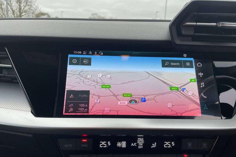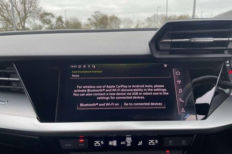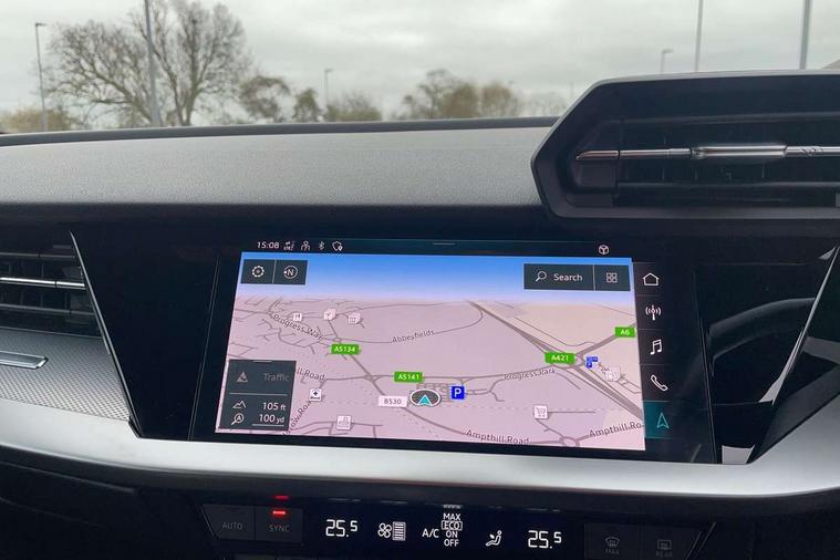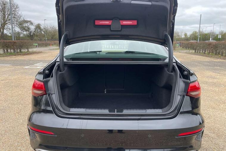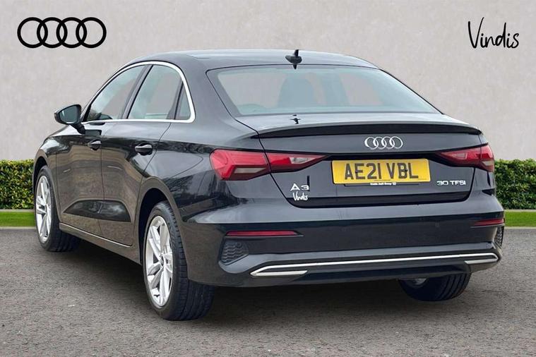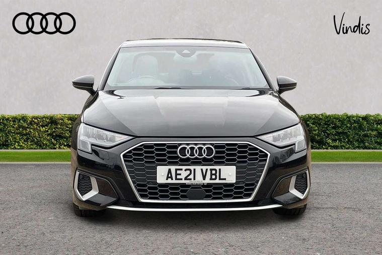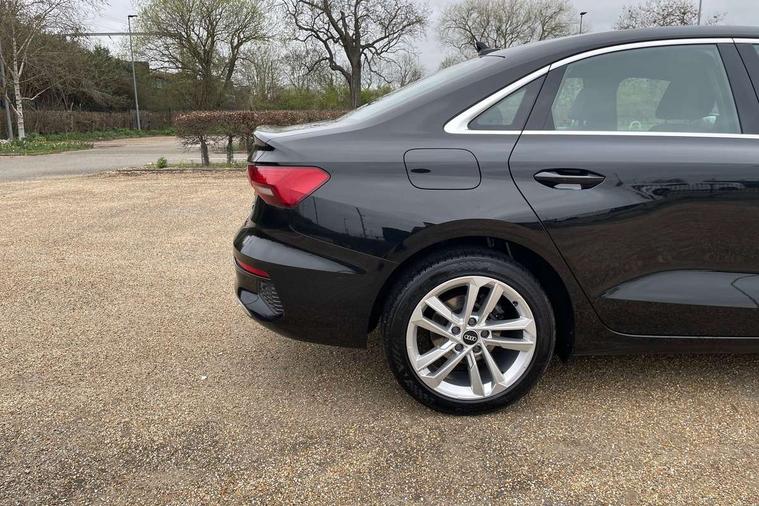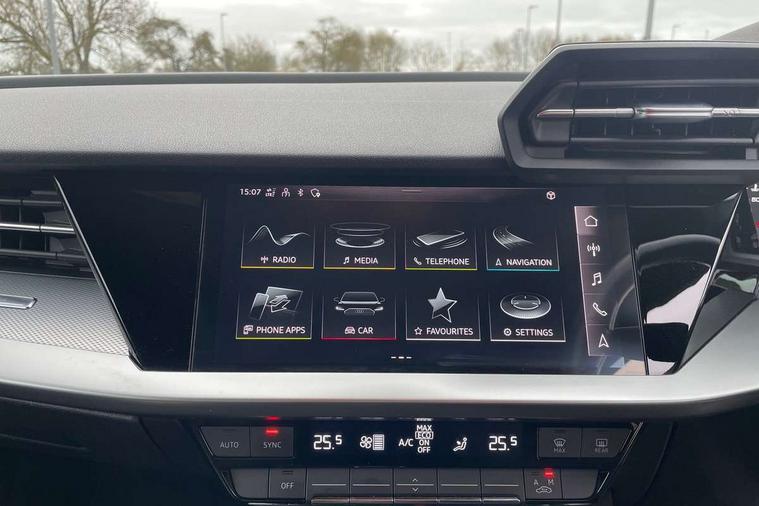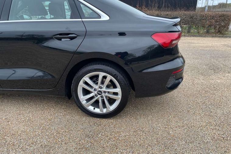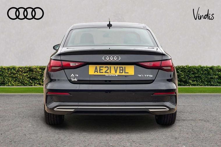 Audi connect emergency call and service, Audi drive select (Auto, Comfort, Dynamic and Individual), Audi smartphone interface, Audi Virtual Cockpit - 10.25" digital and colour instrument cluster, Automatic start/stop system with recuperation, Bluetooth interface, Collision avoidance assistant, Cruise control + speed limiter, Electromechanical power speed sensitive steering, Lane departure warning system, MMI Navigation Plus with high resolution 10.1" colour touch screen display, Rear parking sensors, Service indicator, Voice control system with natural language interaction, Standard suspension, 2x USB Type C ports (for charging and data transfer), 6 passive loudspeakers, CD player, DAB Digital radio, Acoustic glass windscreen, Aluminium window trim, Auto dimming frameless rear view mirror, Body colour exterior mirrors, Body colour roof spoiler, Electrically adjustable/heated/folding/dimming door mirrors with kerb view includes integrated LED indications + kerb view function for passenger side, Front electric windows, LED daytime running lights, Light and rain sensors, Model and engine designation badges at rear, Rear electric windows, Rear window, rear door windows and rear side windows in clear glass, 12V socket and storage compartment in front centre console, 40/20/40 split folding rear seat bench with cupholder, Dual zone electronic climate control, Front and rear headrests, Front centre armrest, Front door sill trims with aluminium inlay, Front/rear floor mats, Height and reach adjustable steering wheel, Interior lighting - Front and rear roof module including reading lights, glove compartment light and right hand side, Luggage compartment floor covering, Manual boot compartment lid, Manually adjustable front seats, Seat side bolsters, Steel grey cloth headlining, Twin leather upholstery, Aluminium interior elements pack - A3 Saloon, Sport styling pack - A3 Saloon, 3x3 point rear seat belts, Driver and front passenger airbag with passenger airbag deactivation, Electronic Stabilisation Control (ESC) including ABS, ASR and EDL, First aid kit with warning triangle and 2 safety vests, Front side airbags with head airbags and interaction airbag, Hill hold assist, Pre-sense front with pedestrian and cyclist detection, Seatbelt monitoring, Tyre pressure loss indicator, Anti theft alarm, Anti-theft wheel bolts, Electronically operated child lock, Immobiliser, Remote control central locking, Aluminium air vent surrounds, Aluminium trim elements, Inlays with silk effect paint in platinum grey,