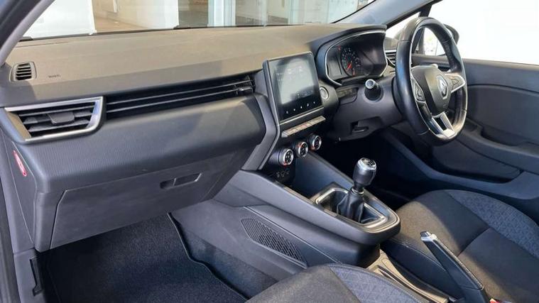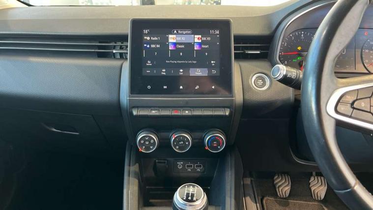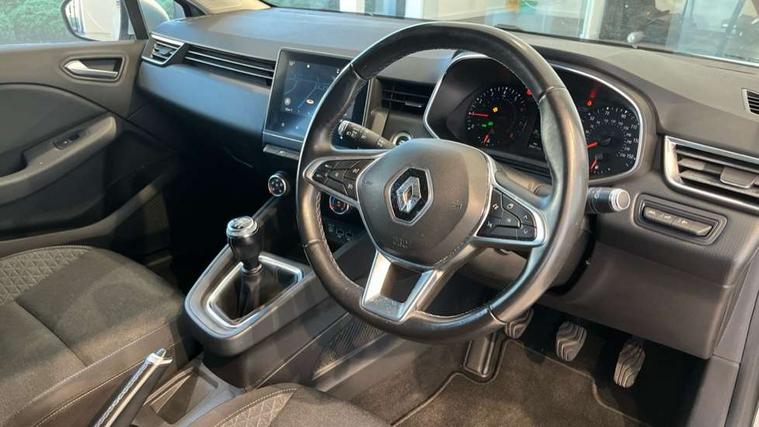 4.2" colour instrument display, Apple car play/Android Auto, Bluetooth Handsfree Phone Connection, Cruise control + speed limiter, E-call, Eco mode, Gear change indicator, Lane departure warning system, Lane keep assist, Over speed prevention, Push button starter, Rear parking sensors, Smartphone cradle, Traffic sign recognition, Trip computer, Variable assistance electric PAS, 4x20W Arkamys radio with bluetooth handsfree and USB, Aux-in socket, DAB Digital radio, Sound auditorium, Black headlamp surrounds, Body colour door handles, Body colour door mirrors, Body coloured bumpers, Body coloured rear spoiler, Chrome boot lid finisher, Chrome insert on lower side doors with Clio embossing, Drivers one touch window with anti-pinch feature, Electric adjustable/heated/folding door mirrors, Electric front windows, Exterior rear hidden door handles, Extra tinted glass on rear windows + tailgate, Full LED front and rear headlamps integrating daytime running lights at the front and rear, LED front fog lights, Rear fog lights, Rear wiper, Third brake light, Variable front intermittent wipers, 12V Accessory socket, 3 rear height adjustable headrests, 60/40 split rear seats, Air recirculation control, Cloth upholstery, Driver's seat height adjustment, Front cupholders, Front door storage bin, Glovebox, Height adjustable front headrests, Height adjustable passenger seat, Height/reach adjust steering wheel, Isofix system on outer rear seats, Leather steering wheel, Multi function steering wheel, Pollen filter, System for Restraint and Protection SRP-front seats, 3 point seatbelts on all rear seats, ABS+EBD+Brake assist, Automatic emergency braking system, Curtain airbags, Distance warning alert, Driver and passenger front and side airbag deactivation, Driver/Front Passenger airbags, ESC - Electronic Stability Control + traction control, Front side airbags(head+thorax), Height adjustable driver's seatbelt, Hill start assist, Manual rear child locks, Seatbelt warning, Tyre pressure warning, Anti-drill door locks, Central door locking, Child lock control of rear doors and windows, Deadlocking system, Hands free Renault card, Locking fuel filler cap, RAID (Renault Anti-Intruder Device) with automatic door locking, Remote central locking, Thatcham Cat 2 engine immobiliser,