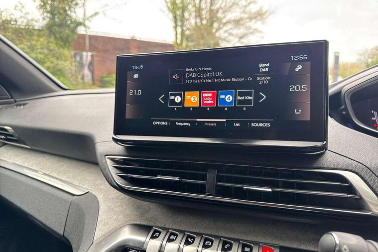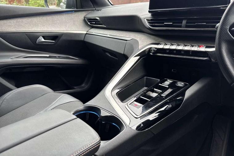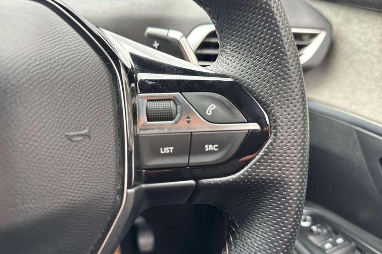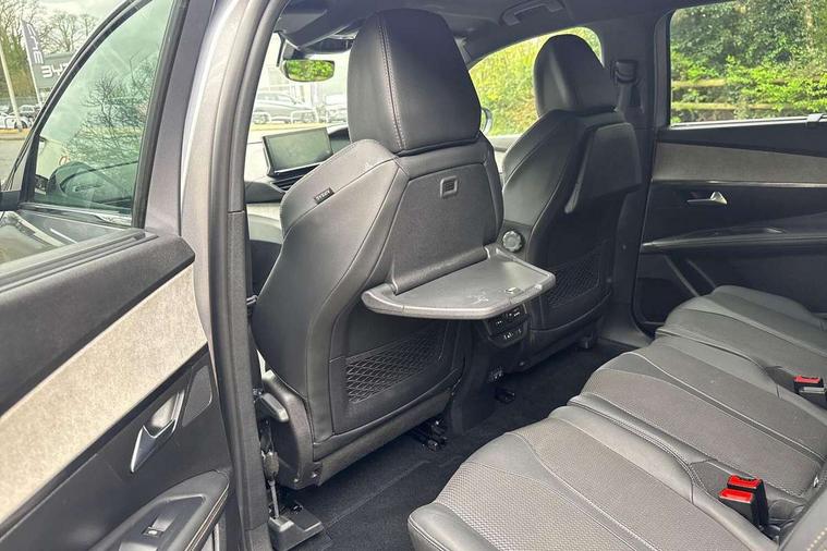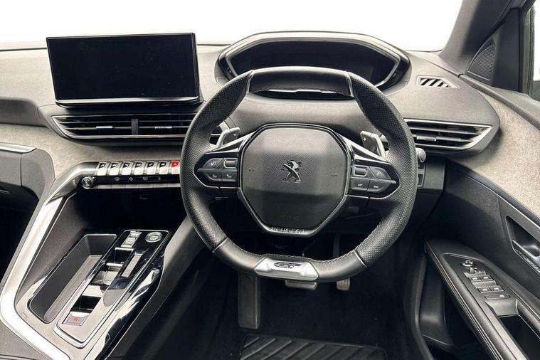 3D connected navigation with 10" HD touchscreen + voice recognition system, Apple car play and Android auto, Bluetooth telephone connection, Drive mode selector (Eco, Normal and Power), Driving timer alert system, Emergency services call system, Extended traffic sign recognition, Exterior temperature indicator with ice warning, Front and rear parking sensors, Lane departure warning system, Multi function trip computer, Peugeot i-cockpit with configurable 12.3" headup digital instrumental panel and compact sports steering wheel, Rear passenger USB charging sockets (x2) (type A), Speed limit recognition and recommendation, Dynamic stability control and electronic anti-skid system, Bi Tuner radio including DAB, USB socket, Aluminium front door sills, Auto self levelling headlights, Automatic activation of hazard warning lights, Black diamond door mirror covers, Black diamond roof, Body colour door handles, Body protectors in black, Dark tinted rear side and tailgate windows, Dynamic frameless design in front radiator grille, Electric adjustable heated door mirrors, Front windscreen wiper with magic wash cleaning system, Full LED headlights with fog mode, Gloss black B and C pillar and aerodynamic deflector trim, Gloss black rear cluster connecting strip, Gloss black windscreen trim, GT emblem (front wings and tailgate), Headlights left on audible warning, Heated rear windscreen with integrated antenna, LED daytime running lights in fang style, LED front indicator, LED rear number plate lighting, LED side indicator lights integrated into door mirrors, LED third brake light, One touch electric front/rear windows with pinch protection, Power folding door mirrors, Rear LED PEUGEOT signature Claw Effect lights (with daylight function) with clear lens and scrolling LED direction indicators, Rear side wing doors, Rear windscreen wiper with auto activation when reversing, Stainless steel door sill scuff plates, Twin exhaust effect trim, 2 cupholders in front centre console, 2 rear reading spotlights, 2 separate seats in 3rd row, 2nd row window blinds, 3 bench rear seats in 2nd row, 3 x 12V power sockets, 4 Grab handles retractable and damped, Aikinite stitching in armrest, gear lever and dashboard facia, Aluminium pedals, Automatic dual zone climate control, Aviation tables on seat back of first row, Blue ambient lighting for connecting zone, Blue ambient lighting for front cupholders, Blue ambient lighting to front door panels, Blue ambient lighting to head up instrument panel, Brumeo fabric trimmed door armrests, Central front armrest with butterfly wing opening and illuminated storage compartment, Electric power steering with reach and rake adjustable steering column, Flocked front door pocket interior with blue ambient lighting, Flocked glovebox interior, Fold flat front passenger seat with picnic table, Footwell lighting, Front interior light with 2 reading spotlights and rear interior light with timer, Front passenger seat manual adjustment (longitudinal and back rest angle), Height adjustable passenger seat, Illuminated glove box, central storage area and load area, Illuminated vanity mirror, Isofix child seat fittings x 3 in the second row, LED interior lighting, Map pocket on front seat backs, Mistral floor mats with Aikinite contrast stitching, Mistral full grain perforated leather steering wheel with aikinite stitch detail and satin chrome 'GT' emblem, Rear ventilation system, Retractable parcel shelf, Roof lining and windscreen pillars in Mistral black, Satin chrome digital instrument panel and touchscreen trim, Satin chrome front door panel recess trim, Satin chrome interior door handles, Satin chrome scorpion's tail and toggle switch trim, Seatbelt not fastened audible and visual alert for front seats, Seatbelt unfastened on the move audible and visual alert for front and rear seats, Second row underfloor storage, Single front passenger seat, Third row seats (can be stored under bootfloor or removed completely), Twin rear coat hooks, Drive assist plus package - 5008, Visibility pack - 5008 GT, ABS + EBD + EBA, Adaptive driver and front passenger airbags including passenger airbag deactivation function, Electric child locking functionality on rear windows and doors, Electronic parking brake + Hill assist, ESP and ASR traction control with deactivation switch, Five 3 point rear safety belts, Front and rear curtain airbags, Front optimised safety headrests and rear retractable headrests (x3), height adjustable, Front side airbags, Front three point retractable seatbelts height adjustable with pre tensioners and force limiters, Front ventilated disc brakes, Rear disc brakes, Rear three-point retractable seatbelts (x3) with pre-tensioners and force limiters in the outer rear seats, Single tone horn, Automatic door locking when moving off, Electronic code immobiliser, Perimetric and volumetric alarm with lift and tilt sensor, Peugeot Open and Go System, Remote control central locking with two plip keys,